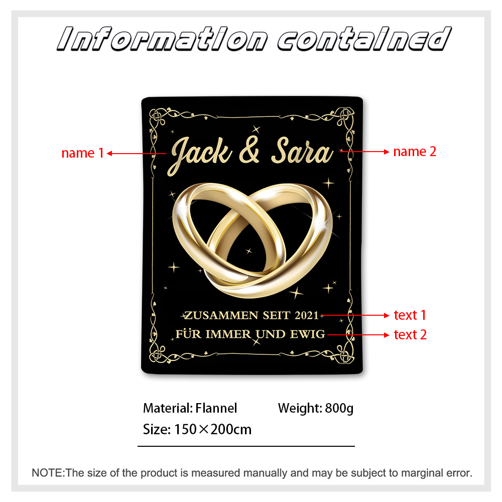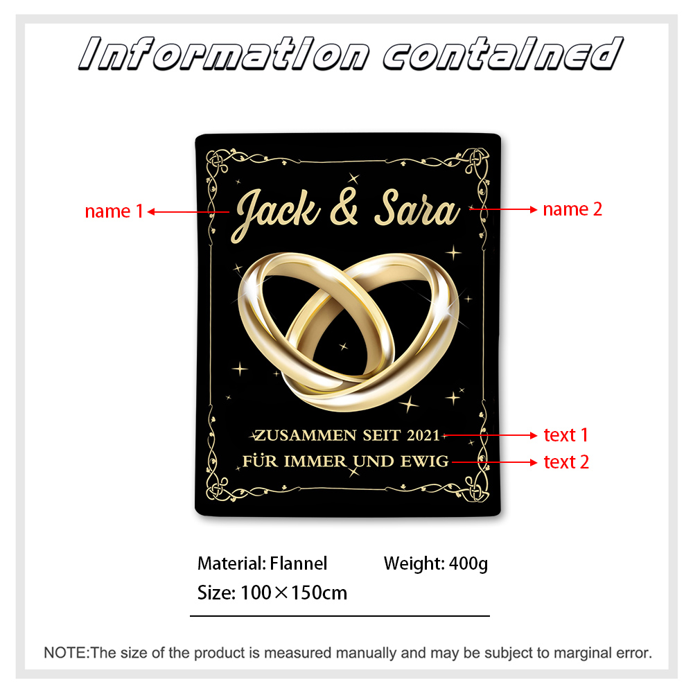 Personalisierte 2 Namen & Texte Paar Ring Decke Für Paare