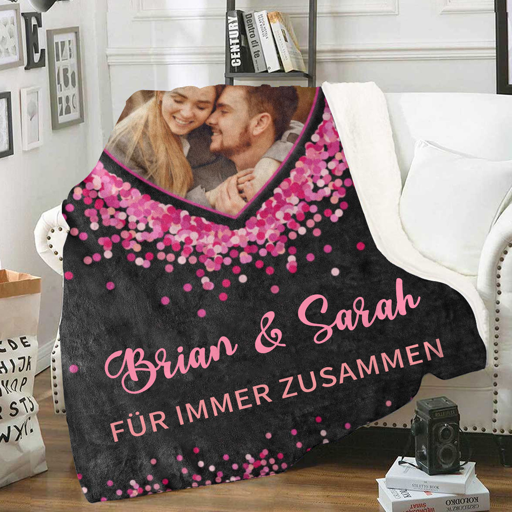 Personalisierte 2 Namen & Text & Foto Paar Herz Decke Für Paare