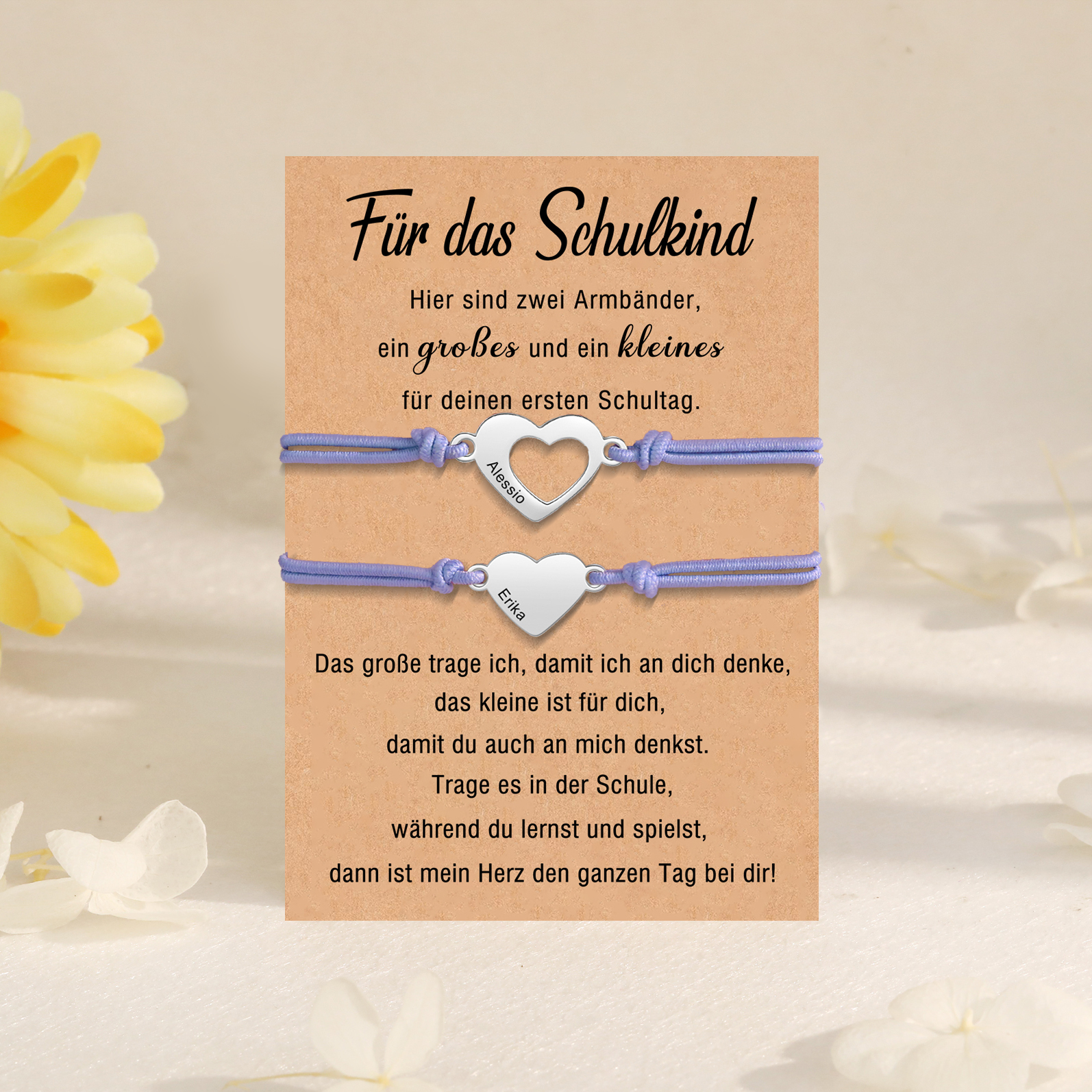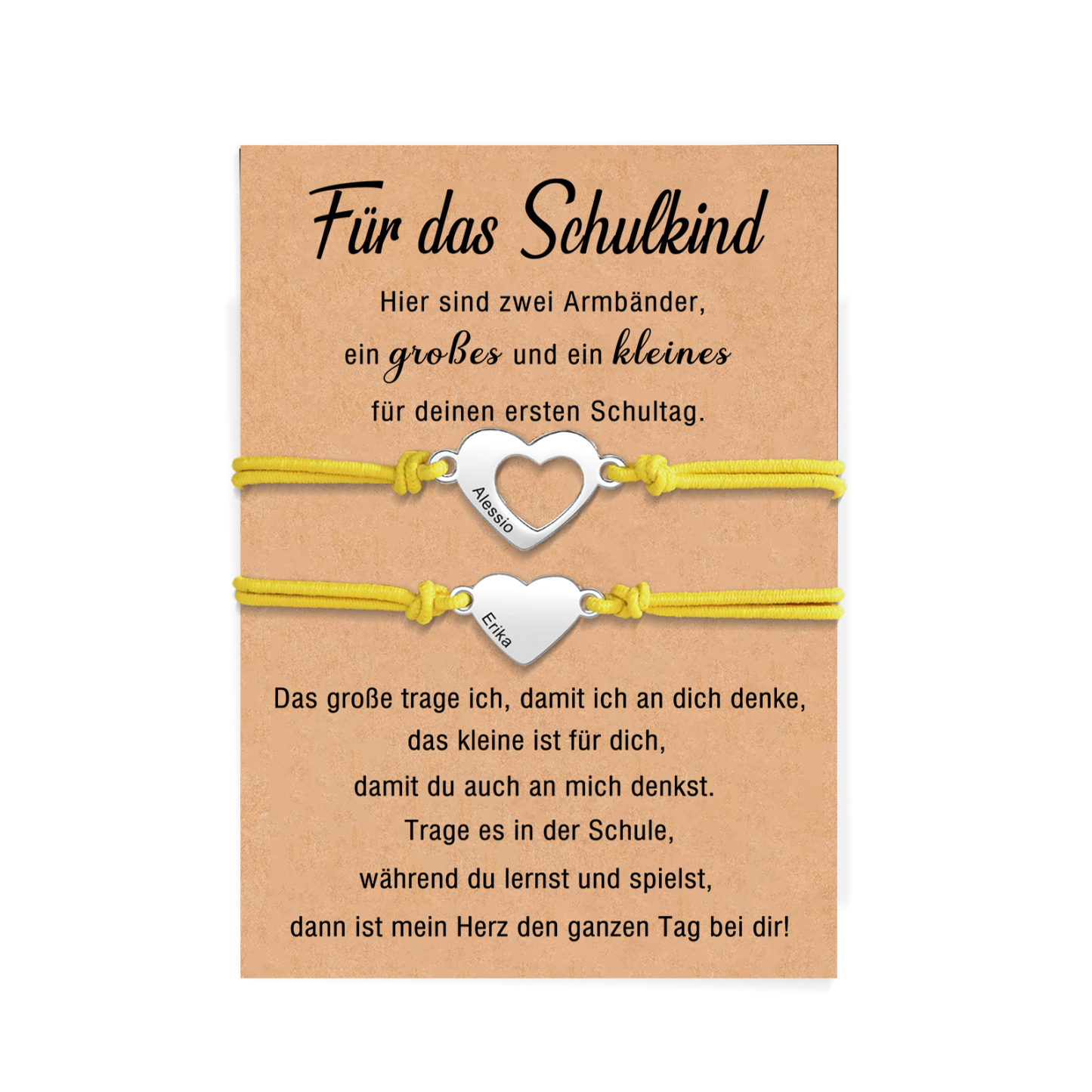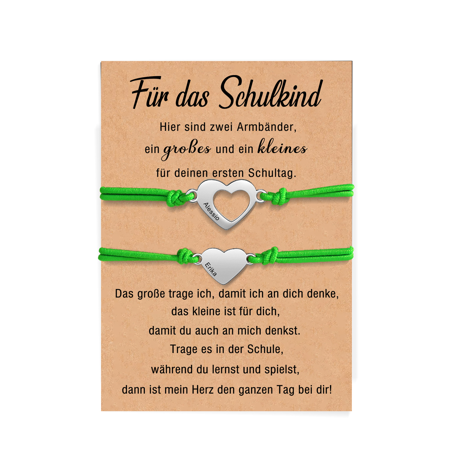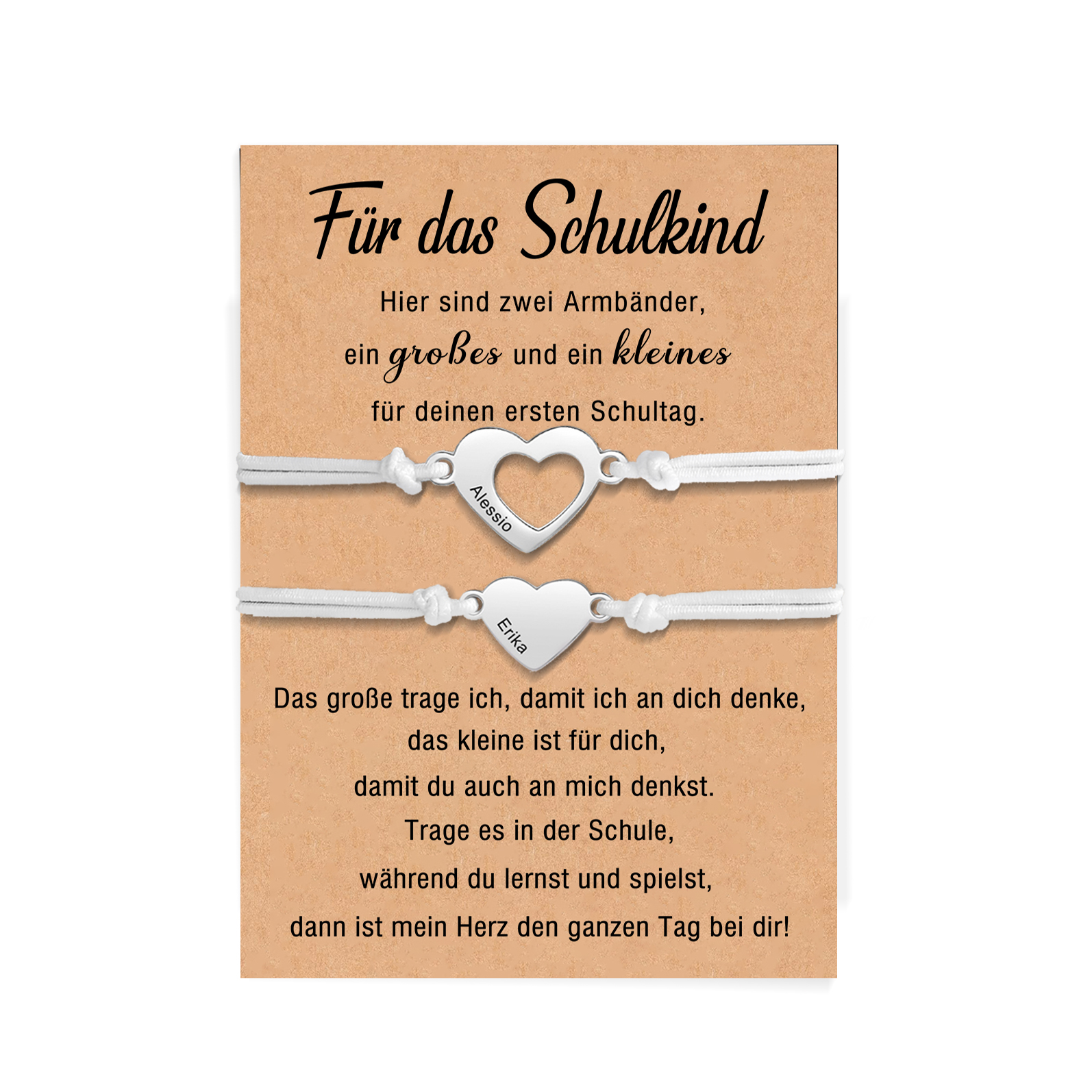 Personalisierte 2 Namen Herz Armbänder Set mit 2 Ketten Gummiband -Für das Schulkind- Schulanfang Geschenk