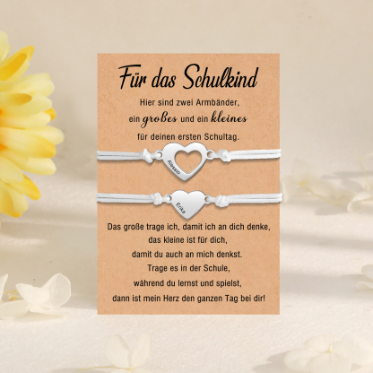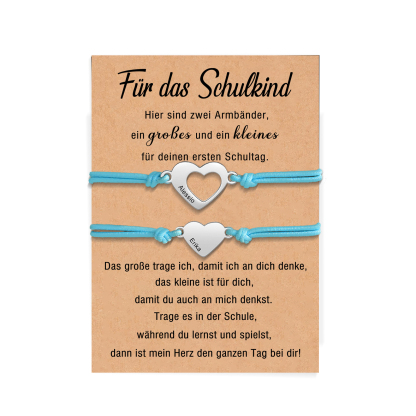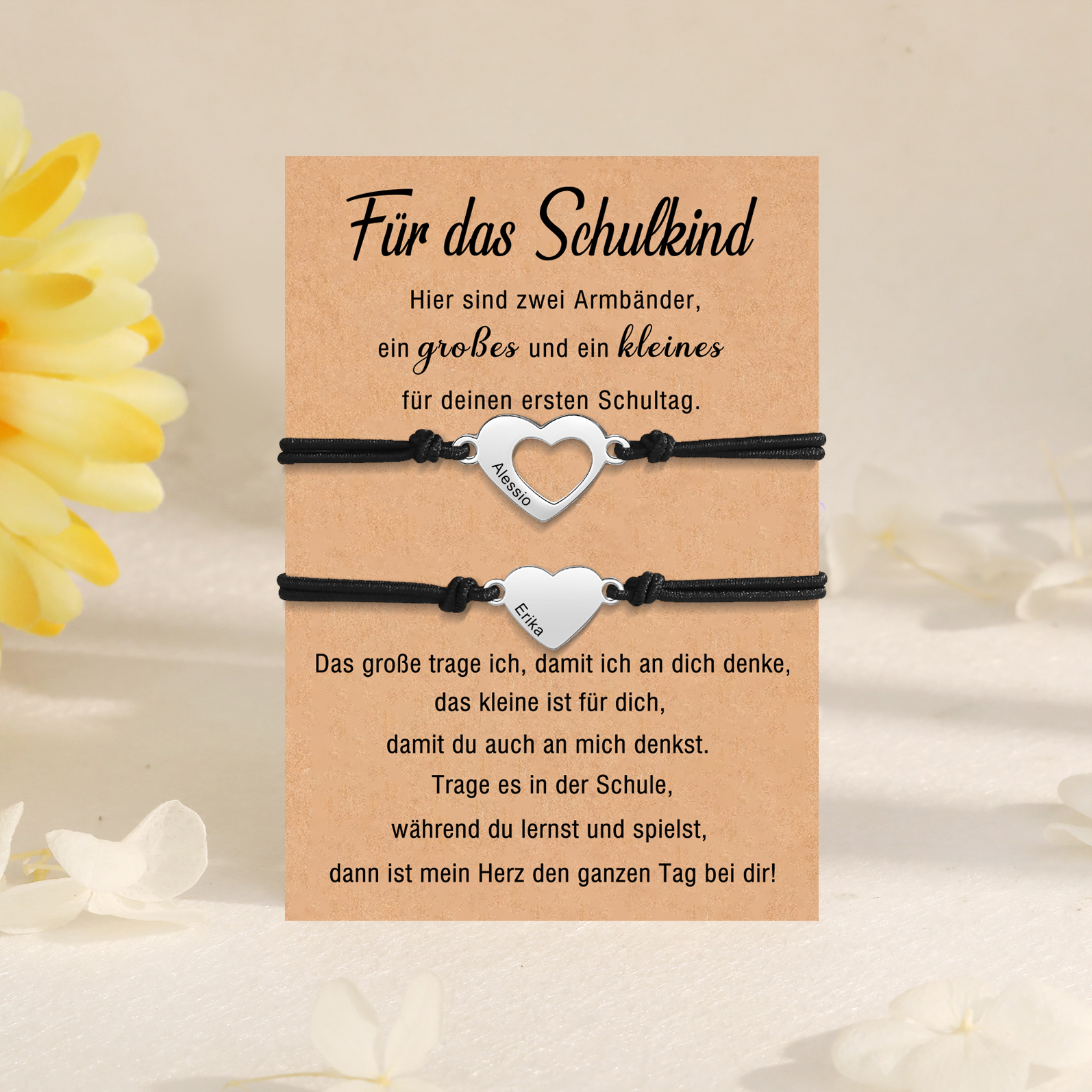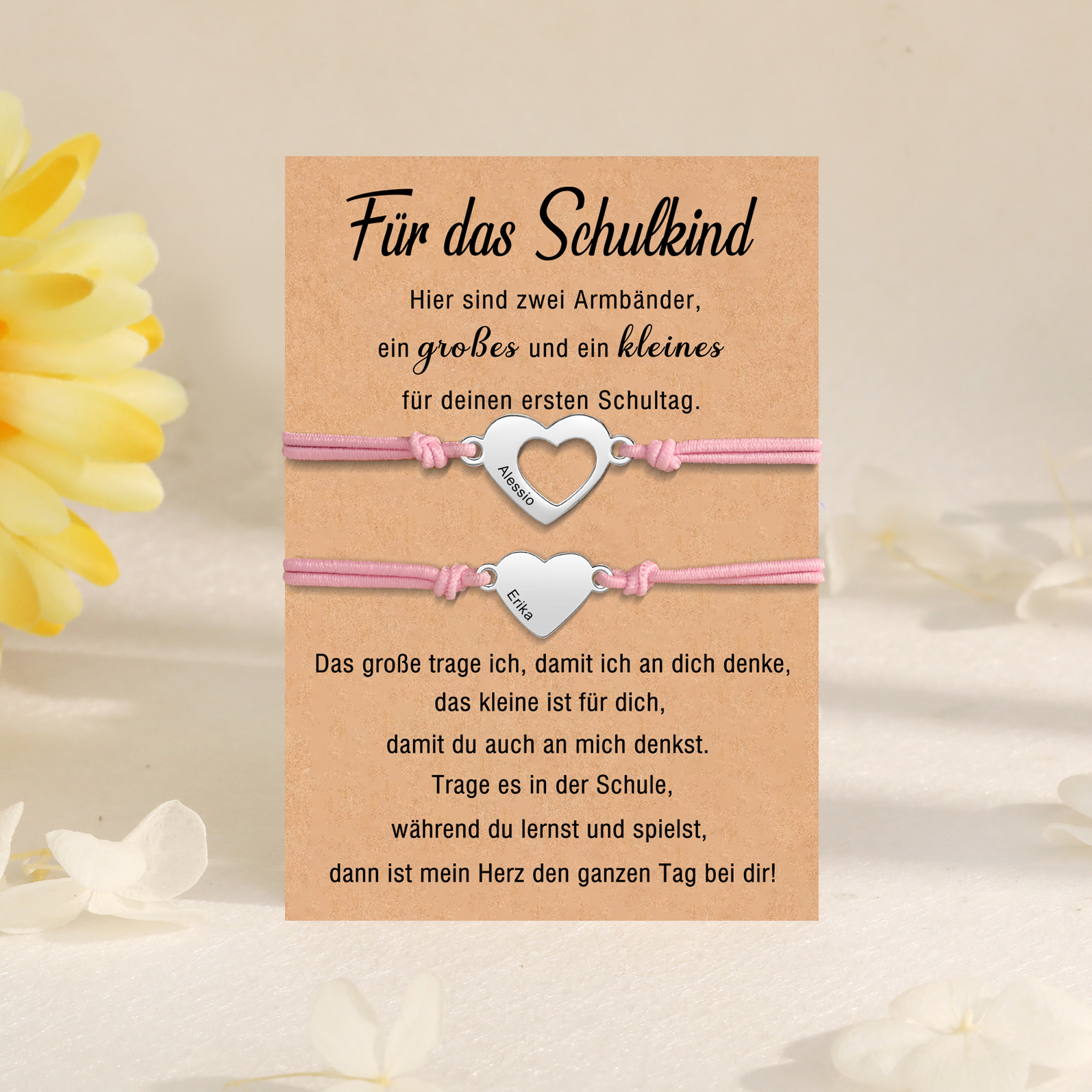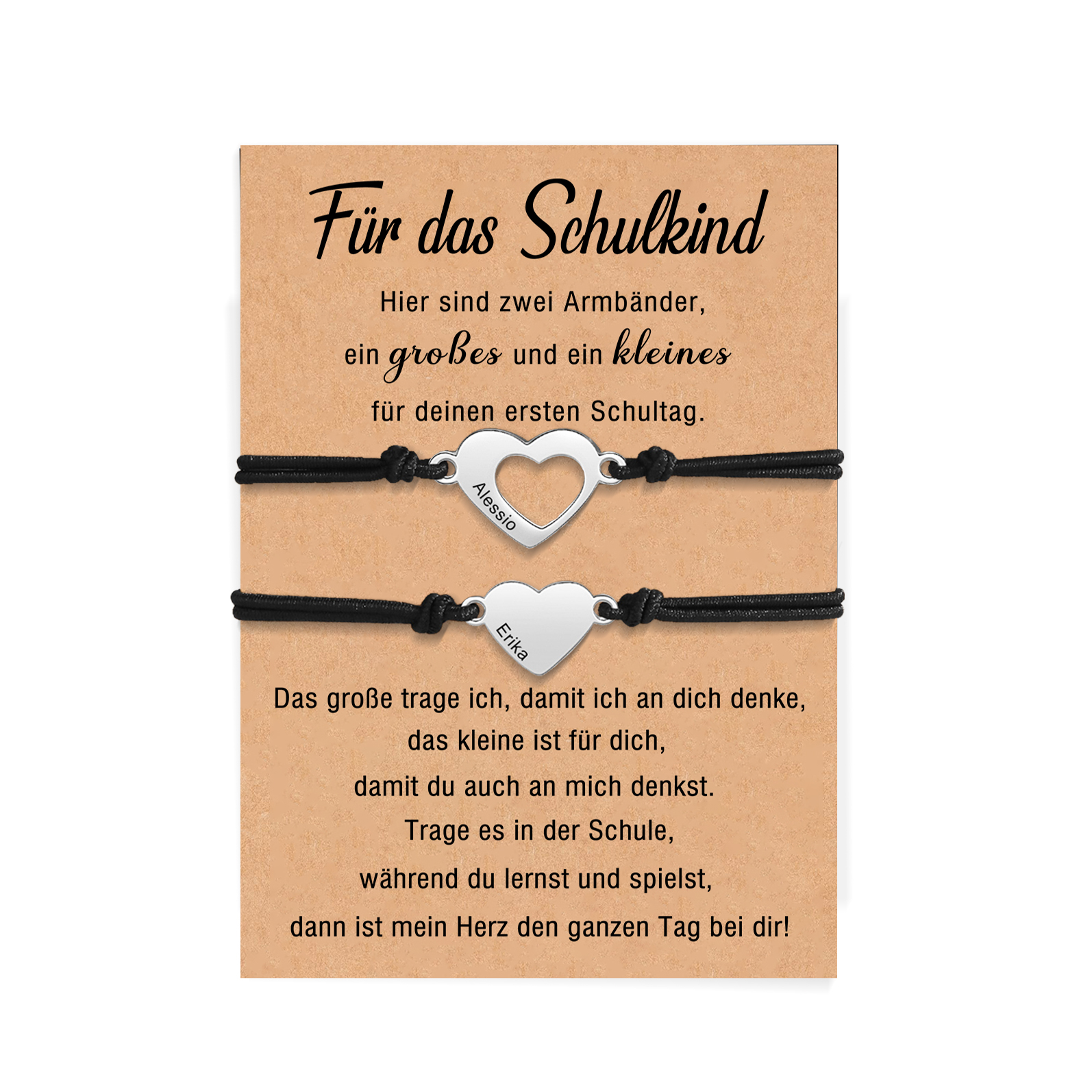 Personalisierte 2 Namen Herz Armbänder Set mit 2 Ketten Gummiband -Für das Schulkind- Schulanfang Geschenk