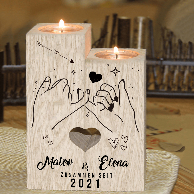 Personalisierte 2 Namen & Jahr Kerzenhalter - Hölzerne Kerzenständer Hochzeitstag Valentinstag Geschenke