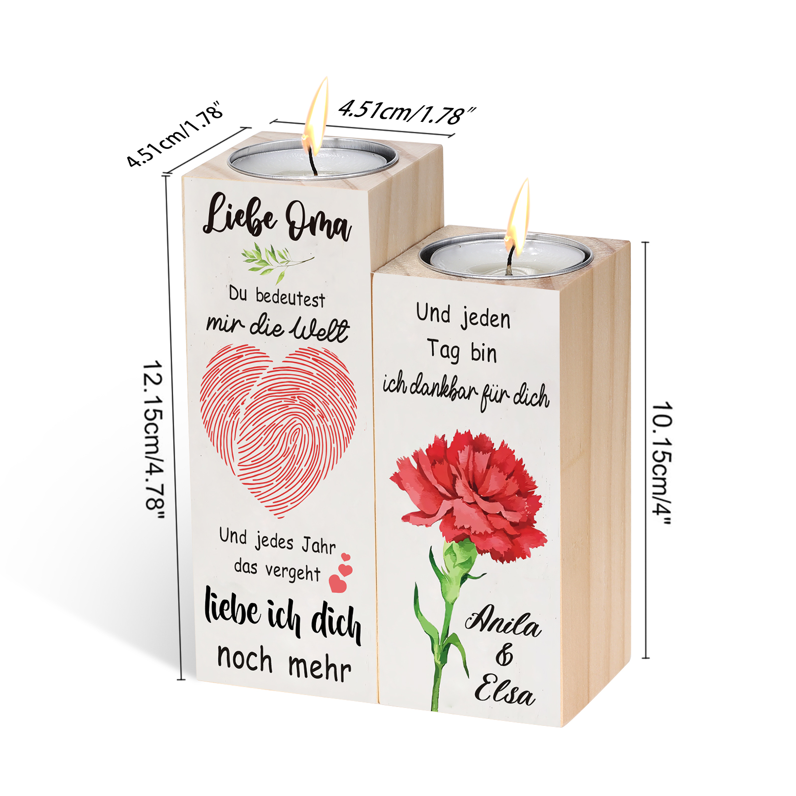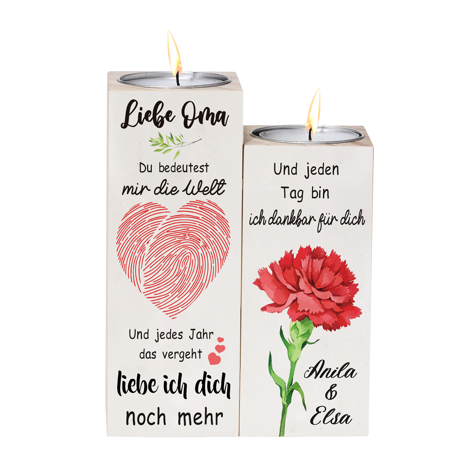 Personalisierte 2 Namen Kerzenhalter-Liebe Oma Du bedeutest mir die Welt-Geschenk für Großmutter