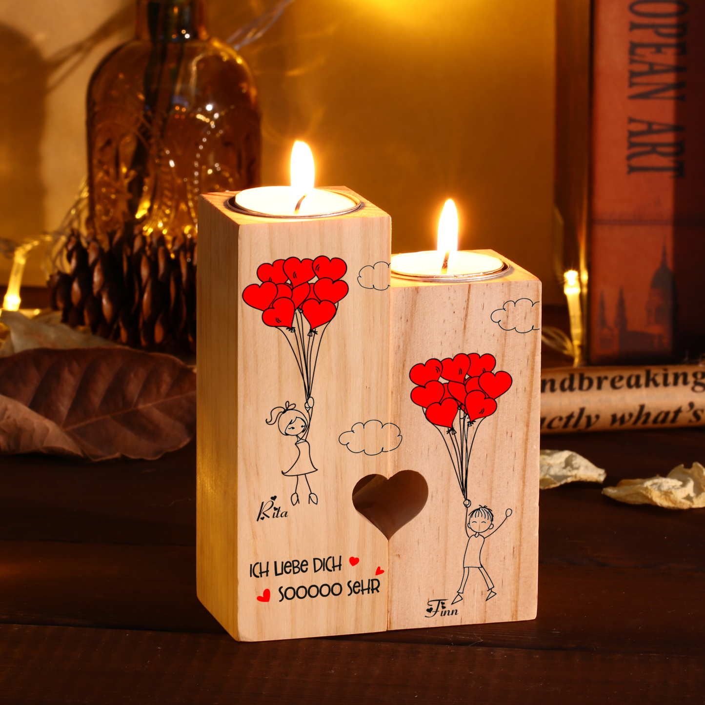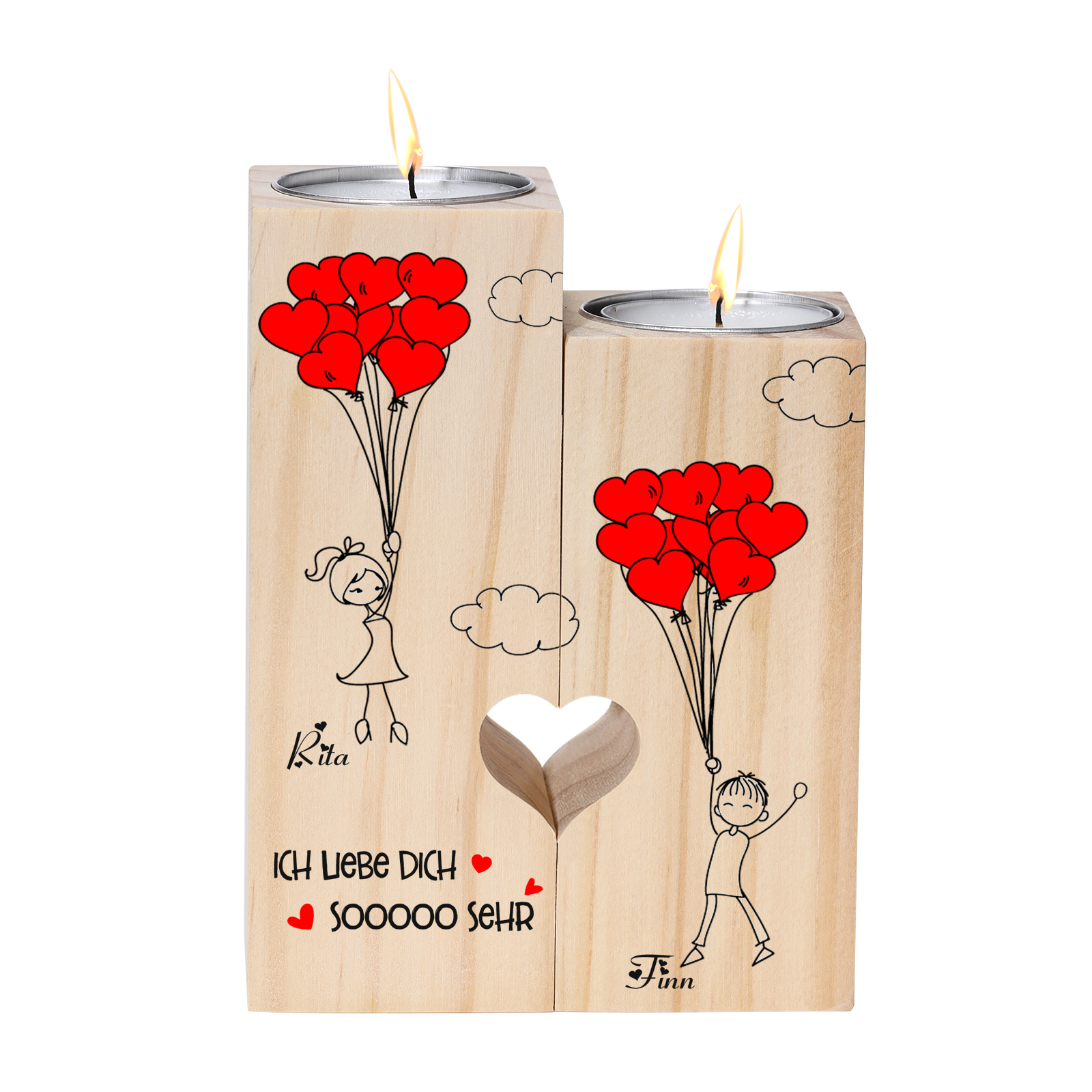 Personalisierte 2 Namen Liebesballon Kerzenhalter-Ich liebe dich sooooo sehr-für Paare