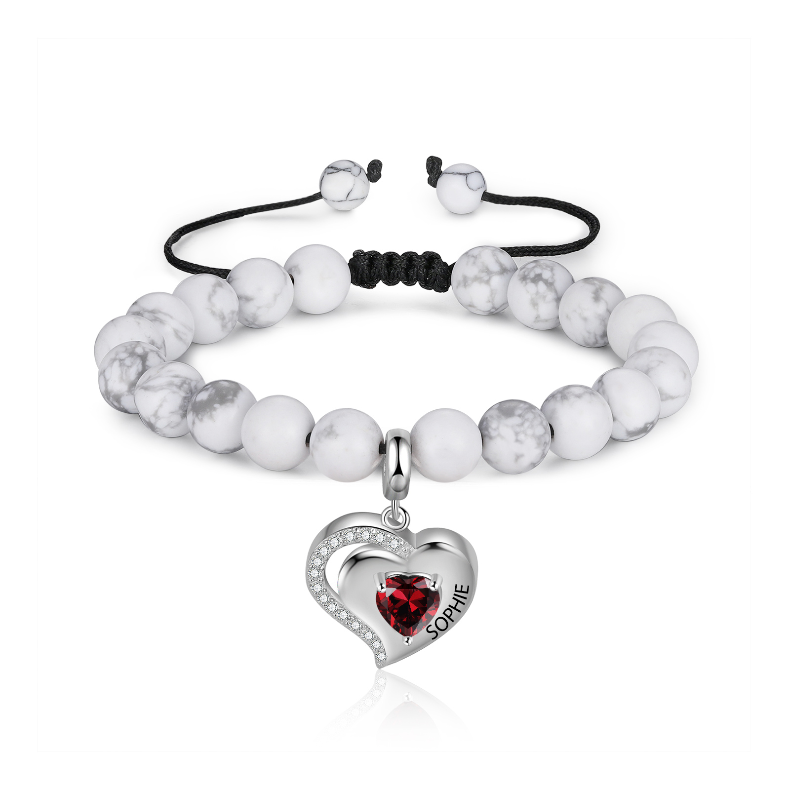 Personalisierte 2 Namen Paar Herz Magnet Armbänder Set mit Geburtssteinen
