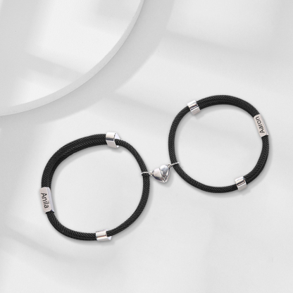 Personalisierte 2 Namen Paar Herz Marnet Armbänder Set für Liebespaar
