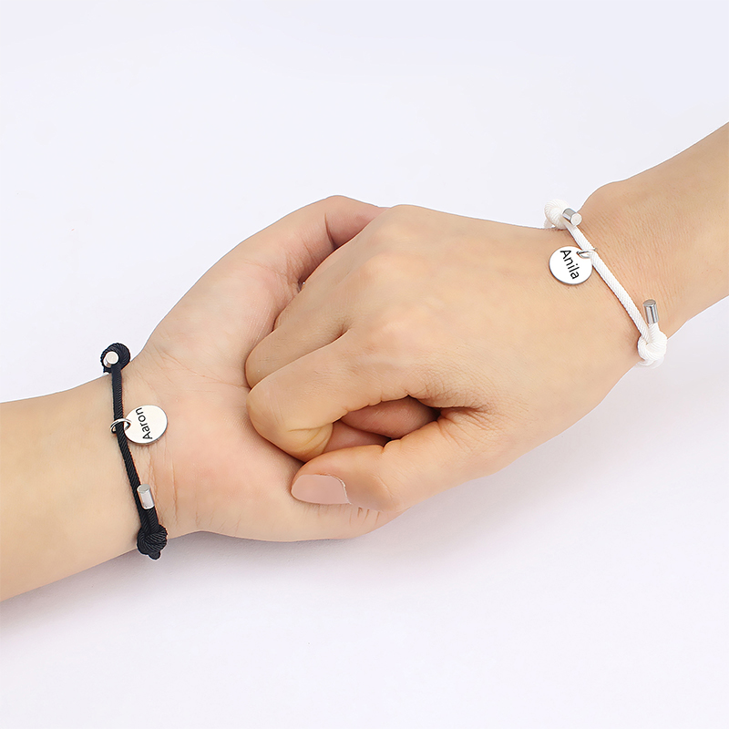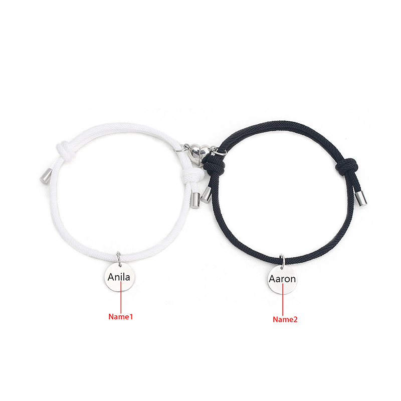 Personalisierte 2 Namen Paar Herz Marnet Armbänder Set für Liebespaar
