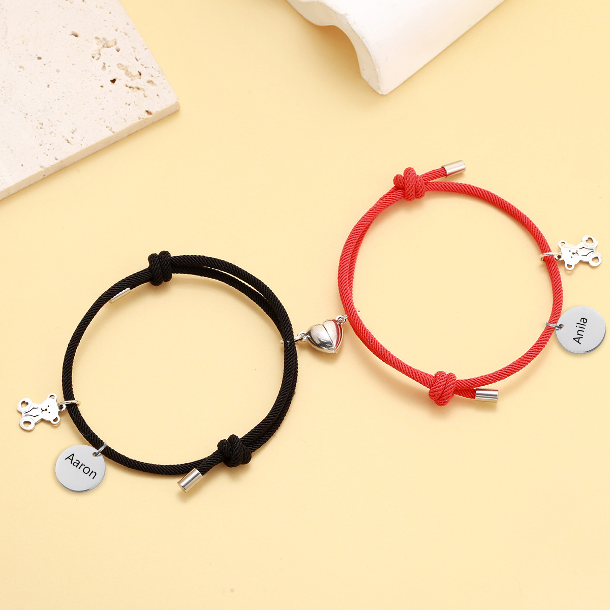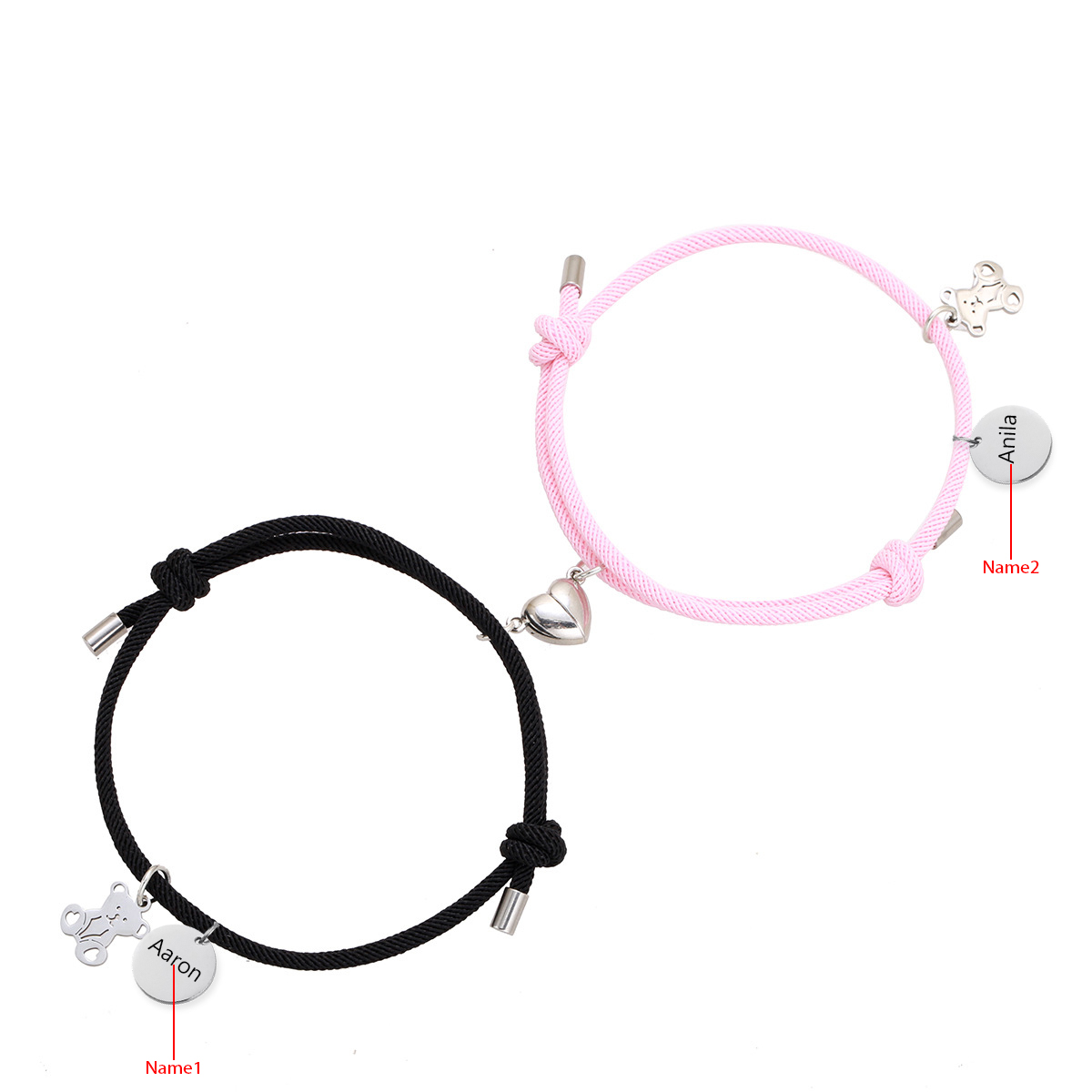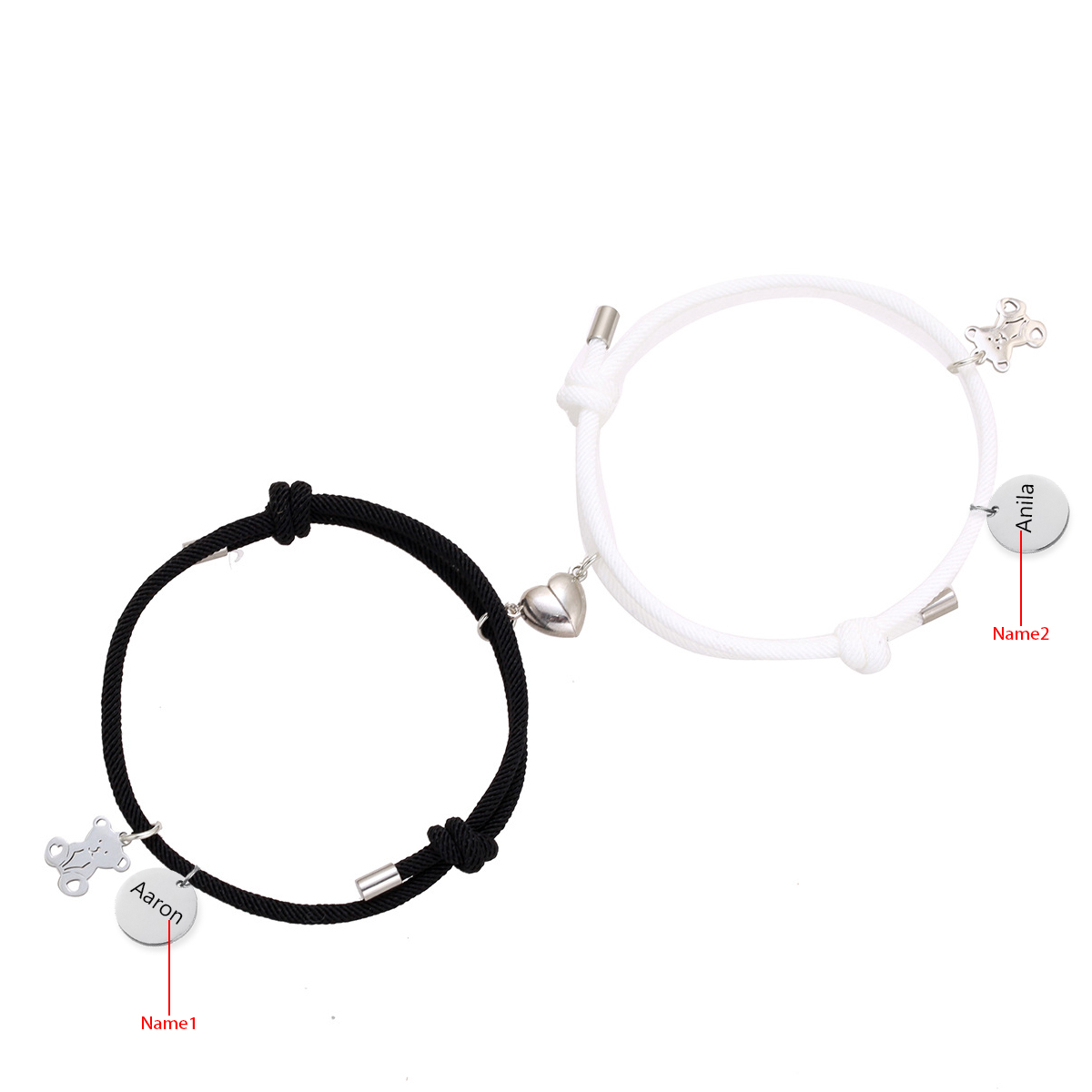 Personalisierte 2 Namen Paar Herz Marnet Bär Armbänder Set für Liebespaar