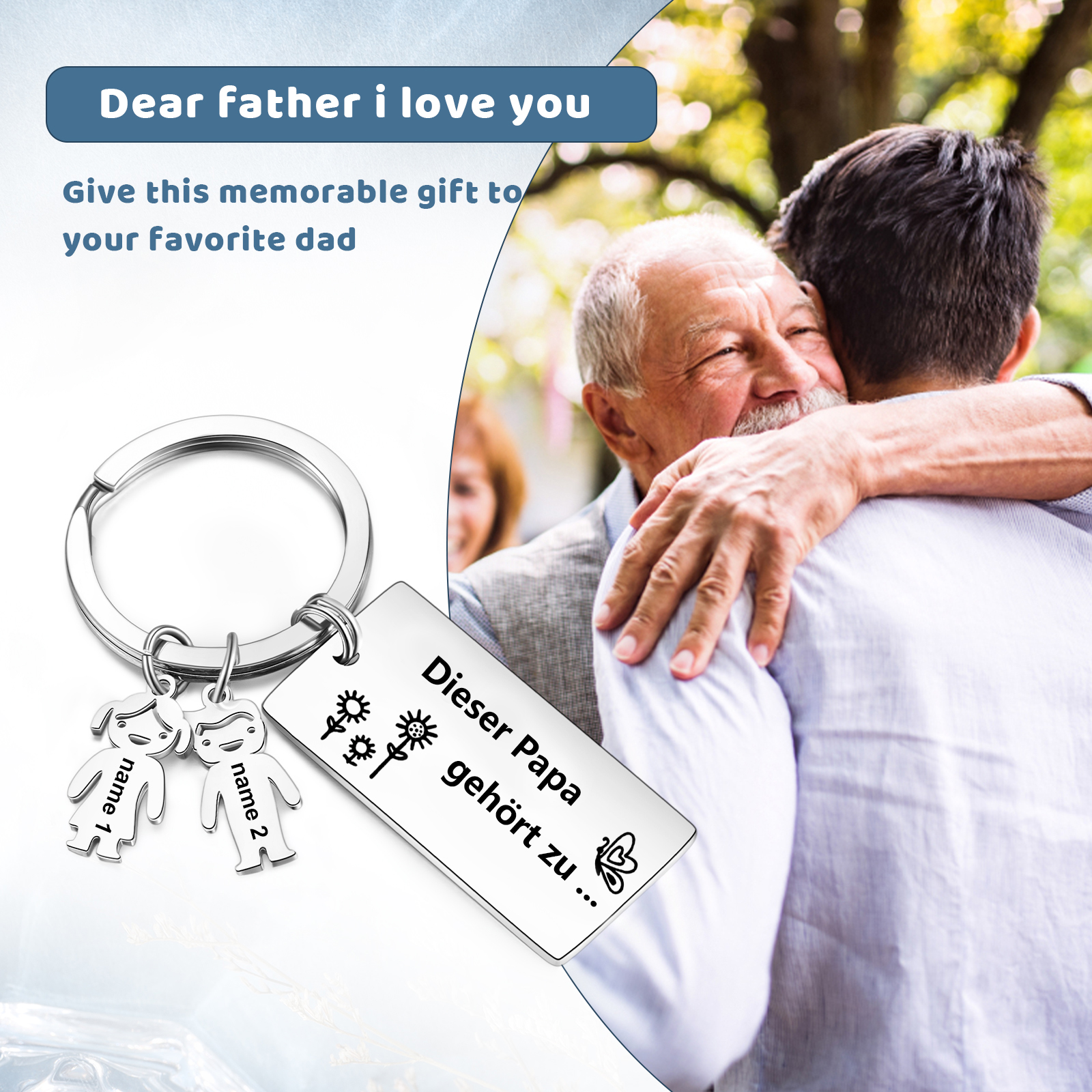 Personalisierte 2 Namen Schlüsselanhänger-Dieser Papa gehört zu ...