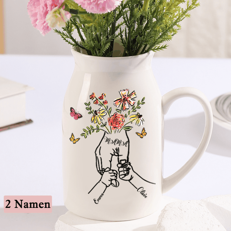 Personalisierte 2 Namen & Text Blume Hand in Hand Familie Vase