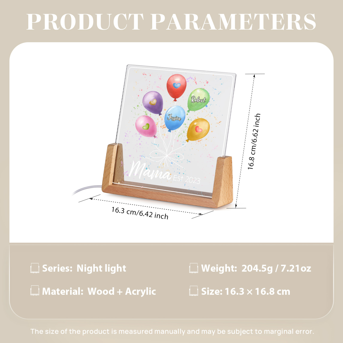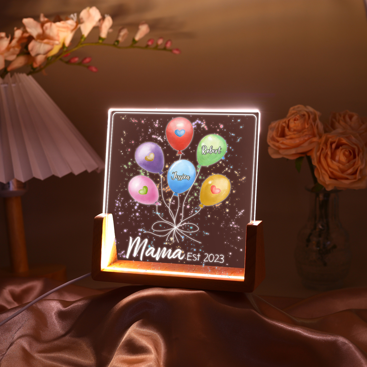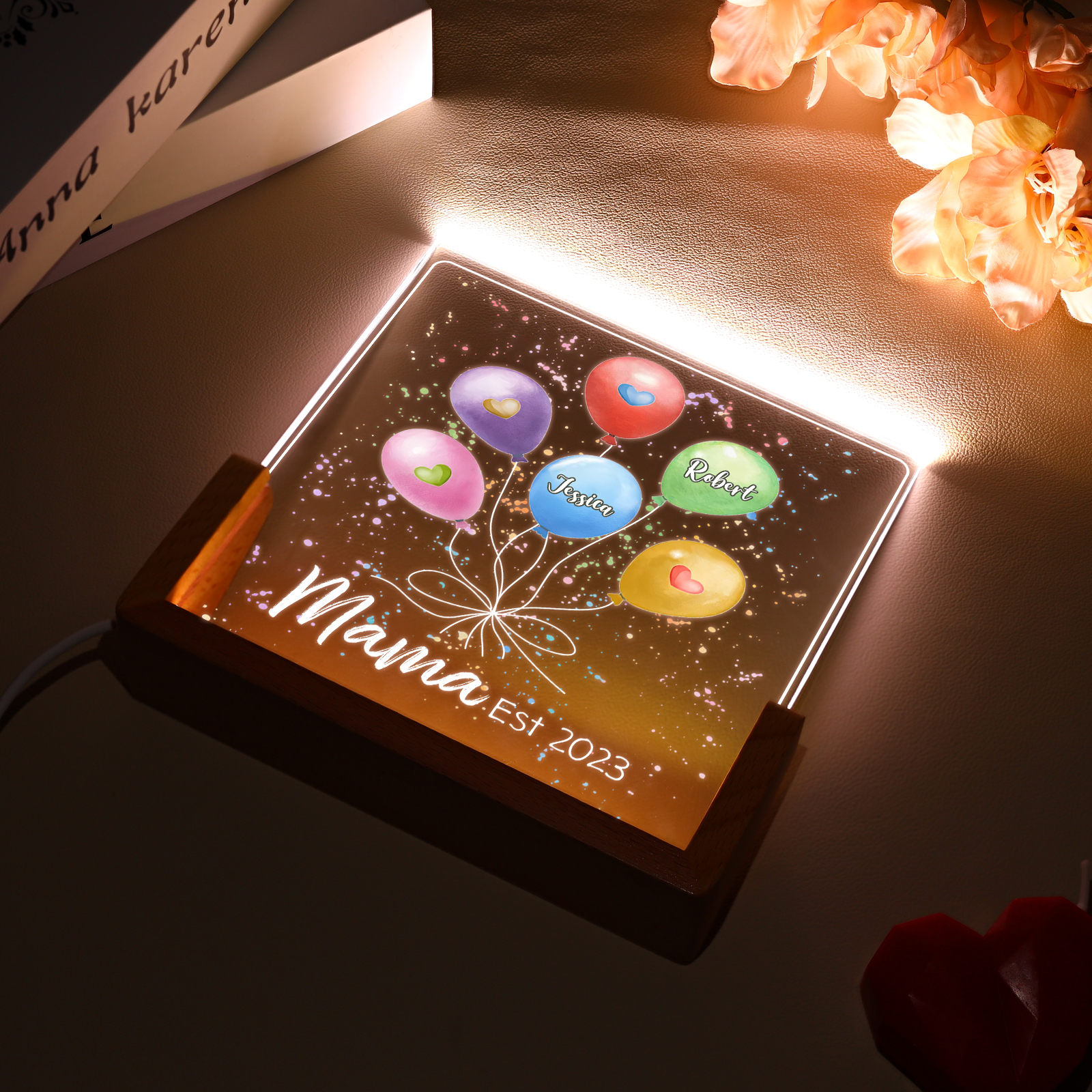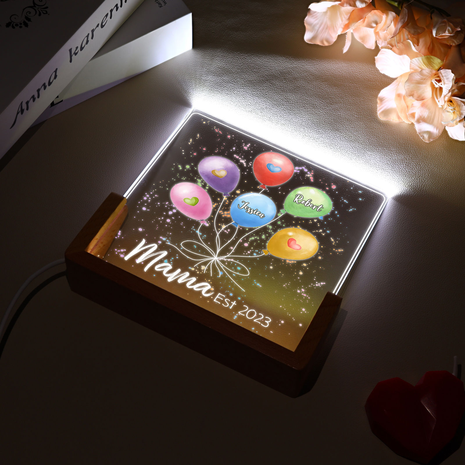 Personalisierte 2 Namen & Text & Datum Ballon Nachtlicht Geschenk für Großmutter/Mutter zum Muttertag