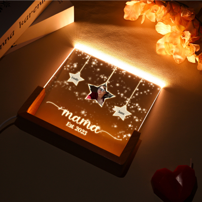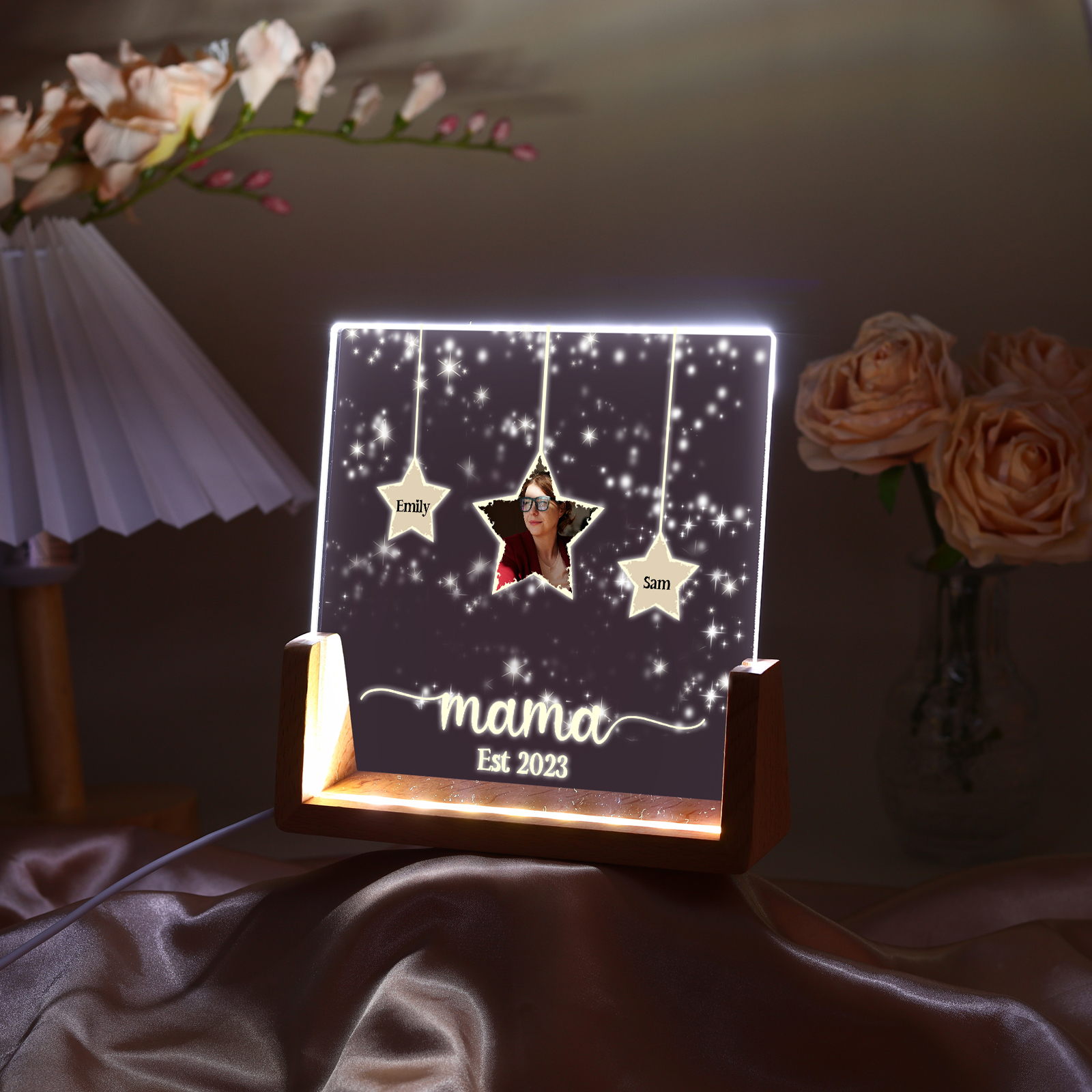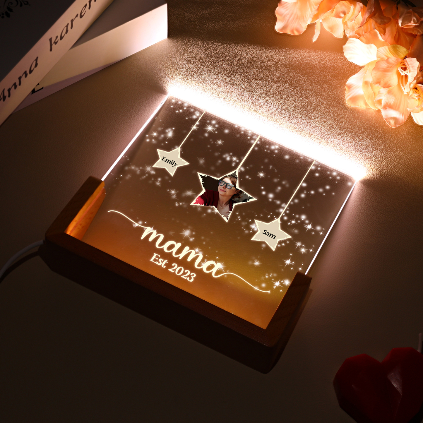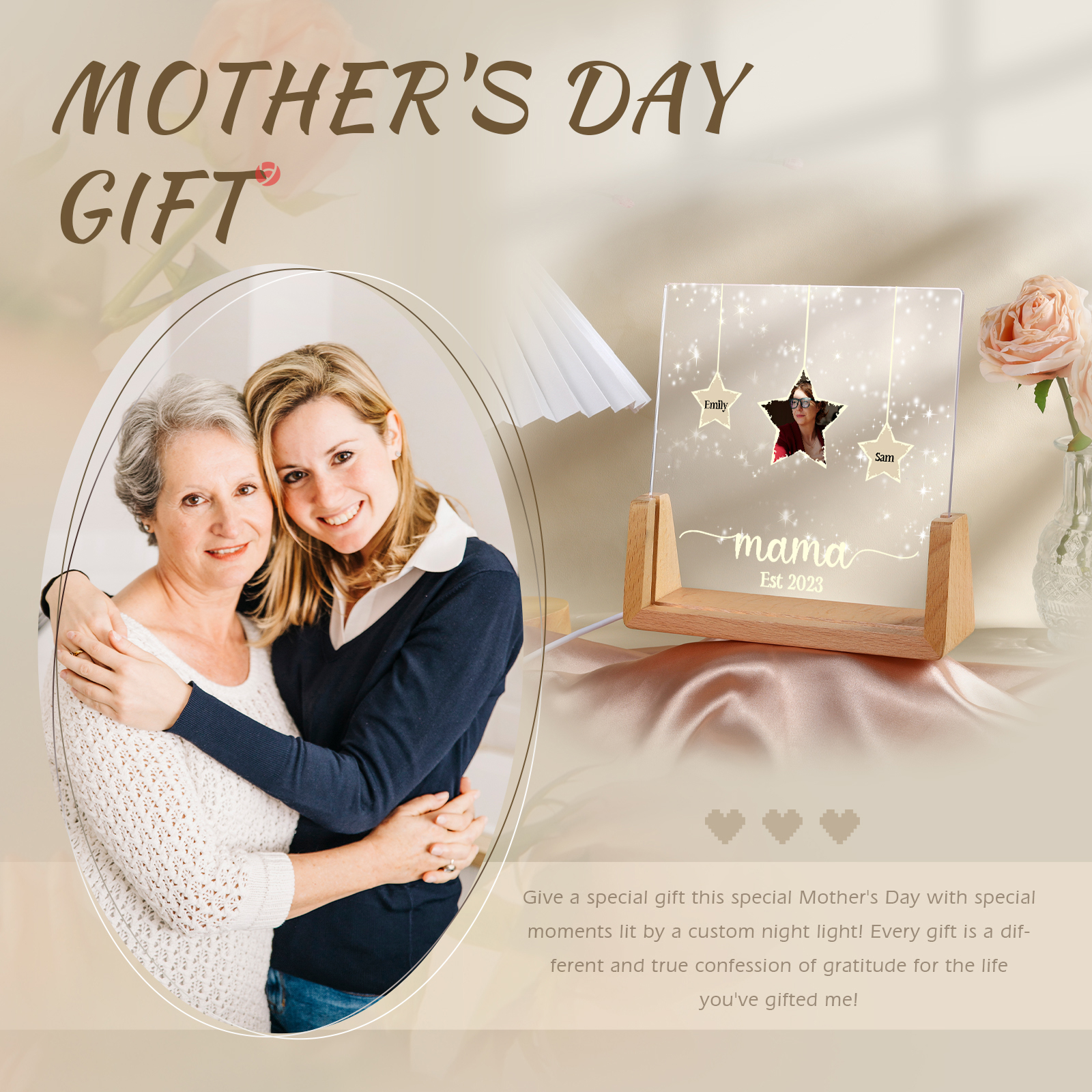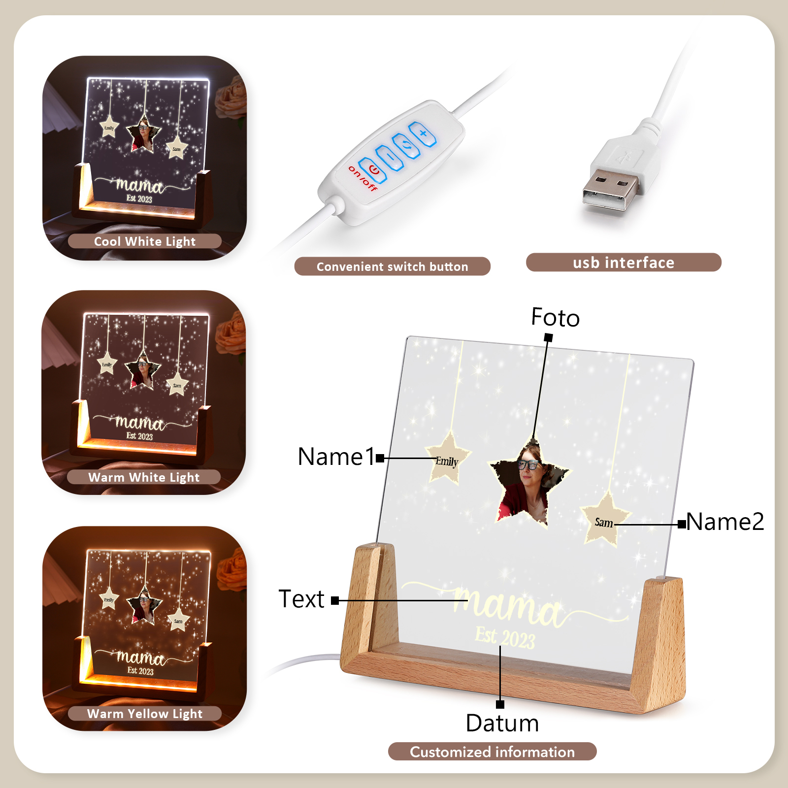 Personalisierte 2 Namen & Text & Datum & Foto Stern Nachtlicht Geschenk für Großmutter/Mutter zum Muttertag