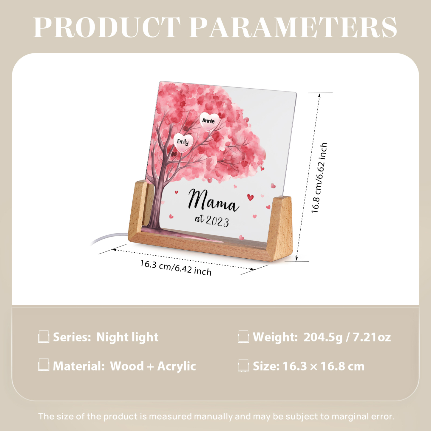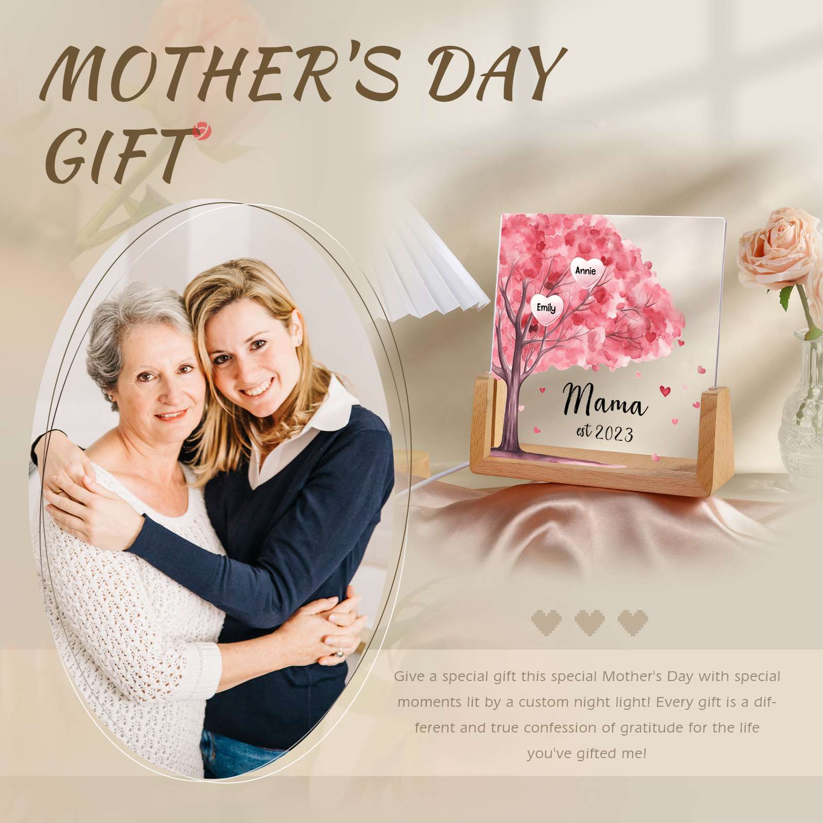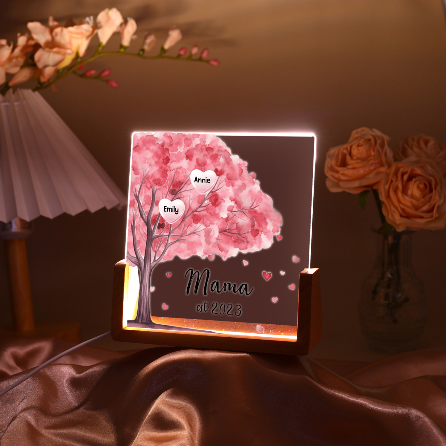 Personalisierte 2 Namen & Text & Datum Rosa Familienbaum Nachtlicht Geschenk für Großmutter/Mutter zum Muttertag
