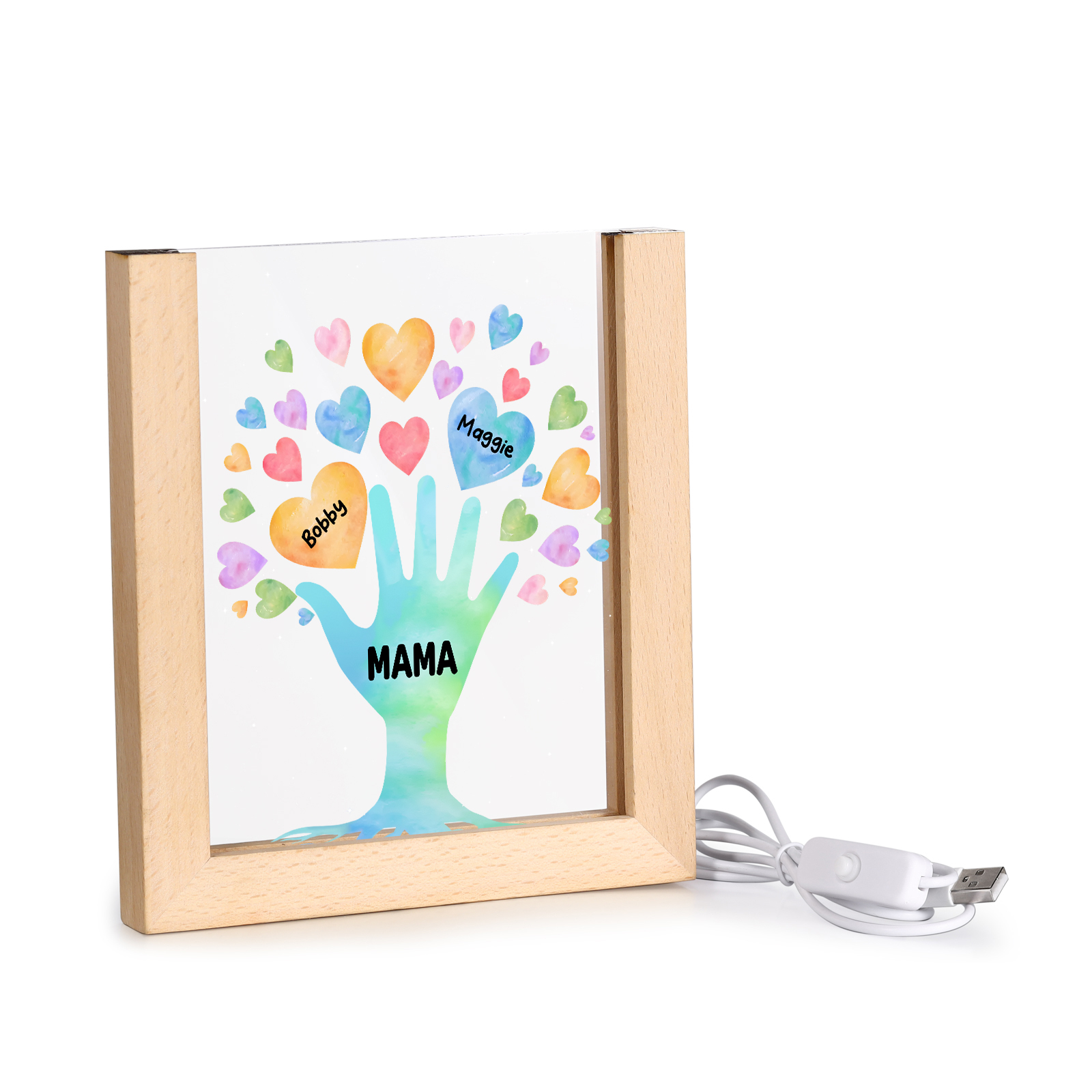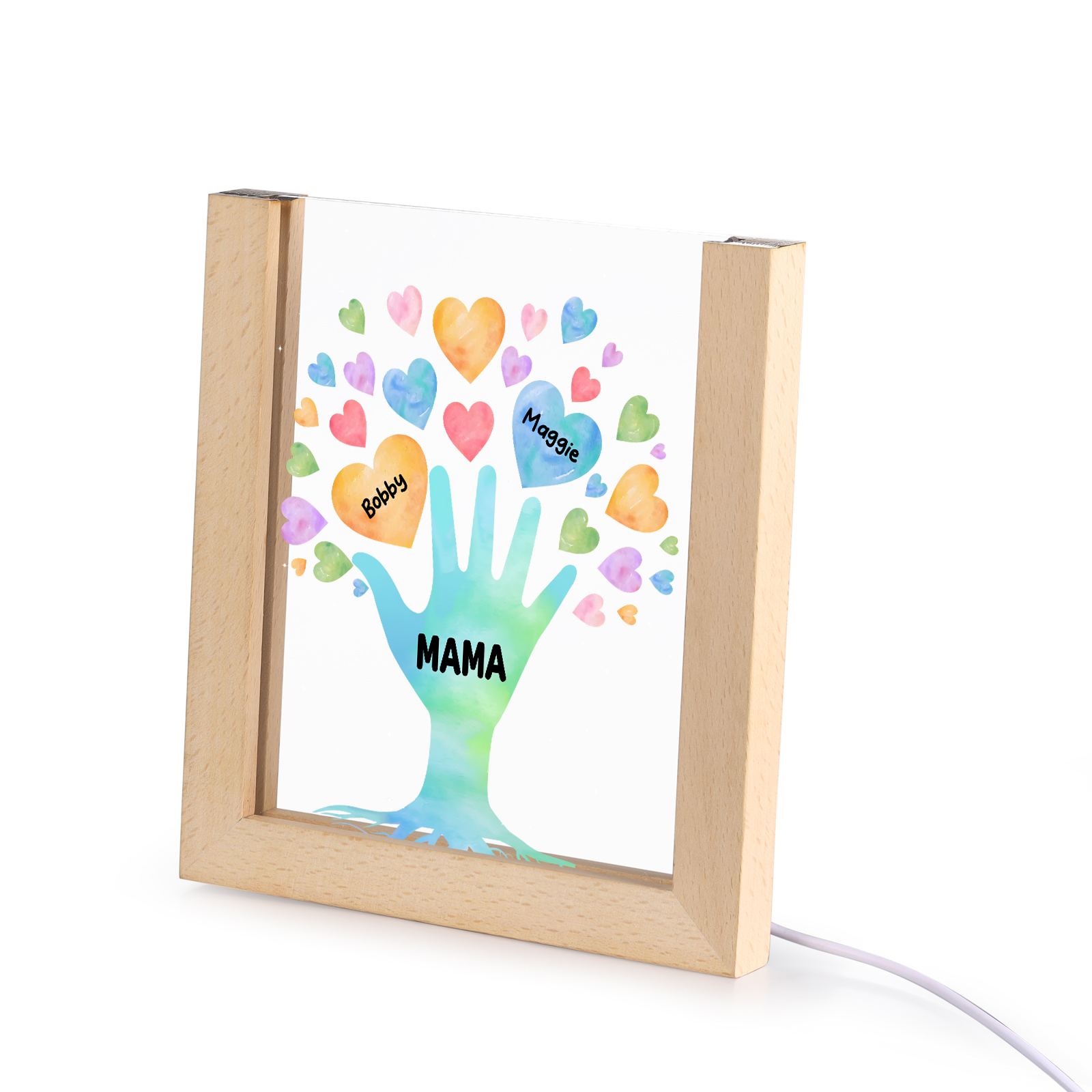 Personalisierte 2 Namen & Text Familie Hand Acryl Rahmen Nachtlicht Geschenk für Großmutter/Mutter zum Muttertag