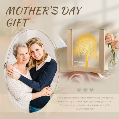 Personalisierte 2 Namen & Text Golden Baum Acryl Rahmen Nachtlicht Geschenk für Großmutter/Mutter zum Muttertag