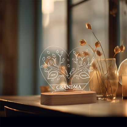 Personalisierte 2 Namen & Text Herz Familienbaum Familie Nachtlicht Geschenk für Großmutter/Mutter zum Muttertag