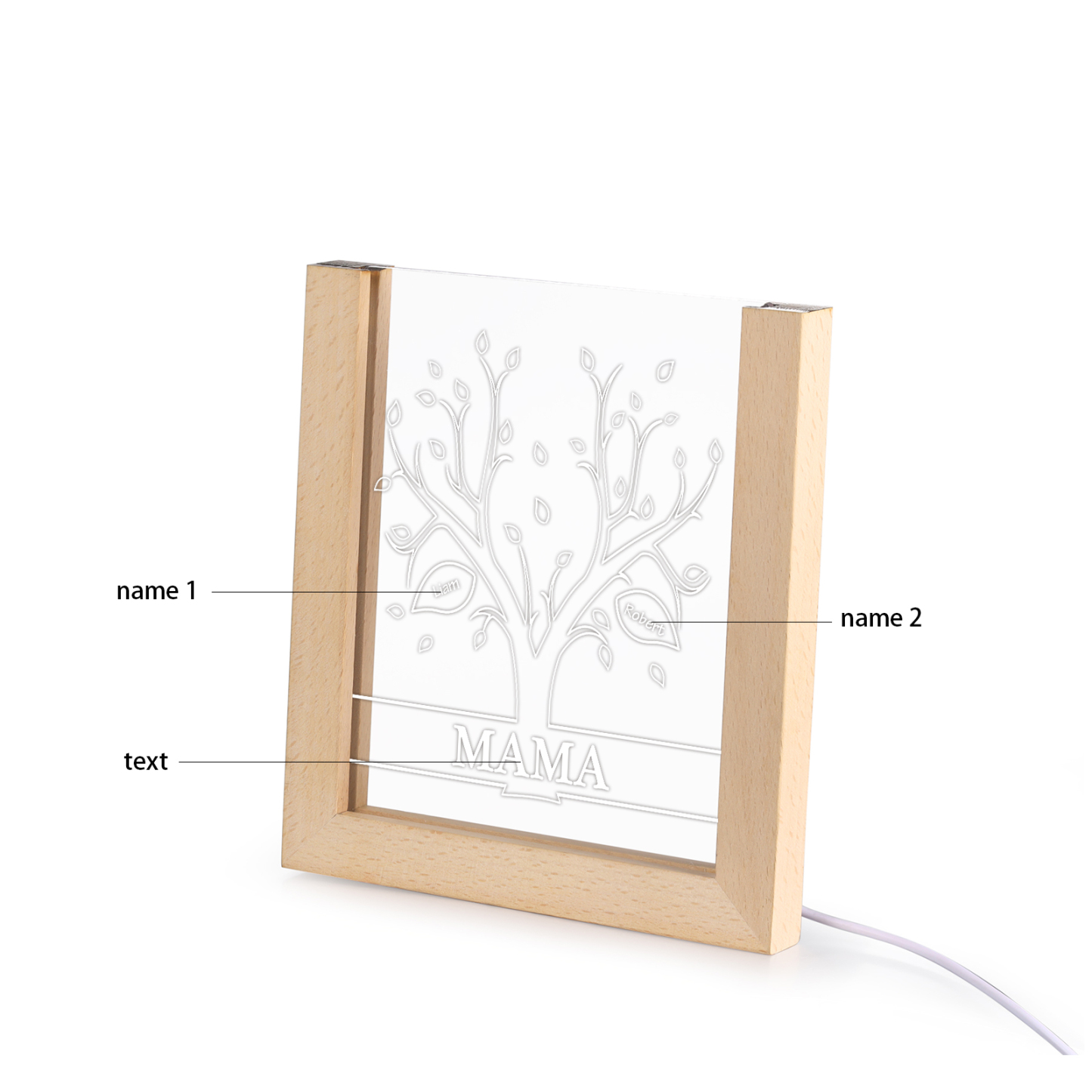 Personalisierte 2 Namen & Text Lebensbaum Acryl Rahmen Nachtlicht Geschenk für Großmutter/Mutter zum Muttertag