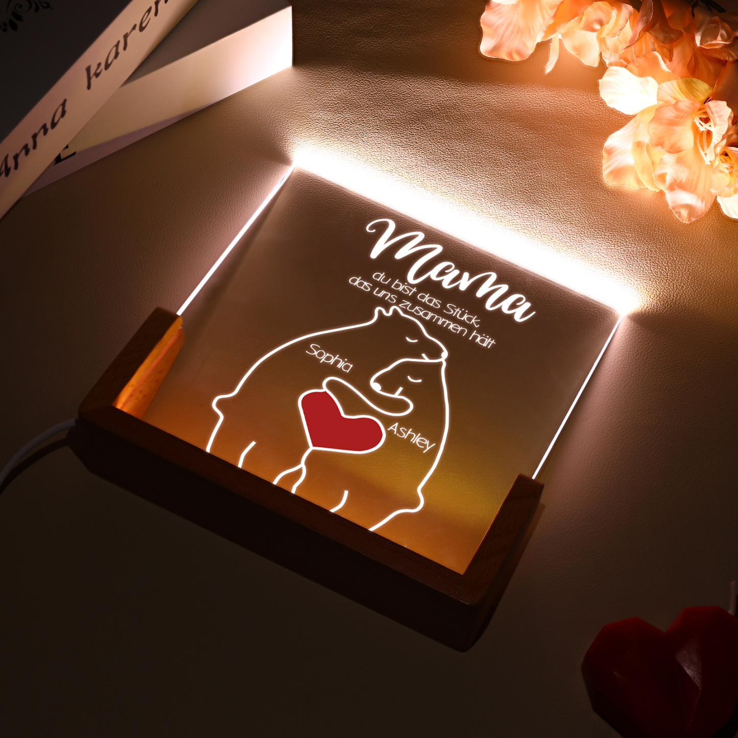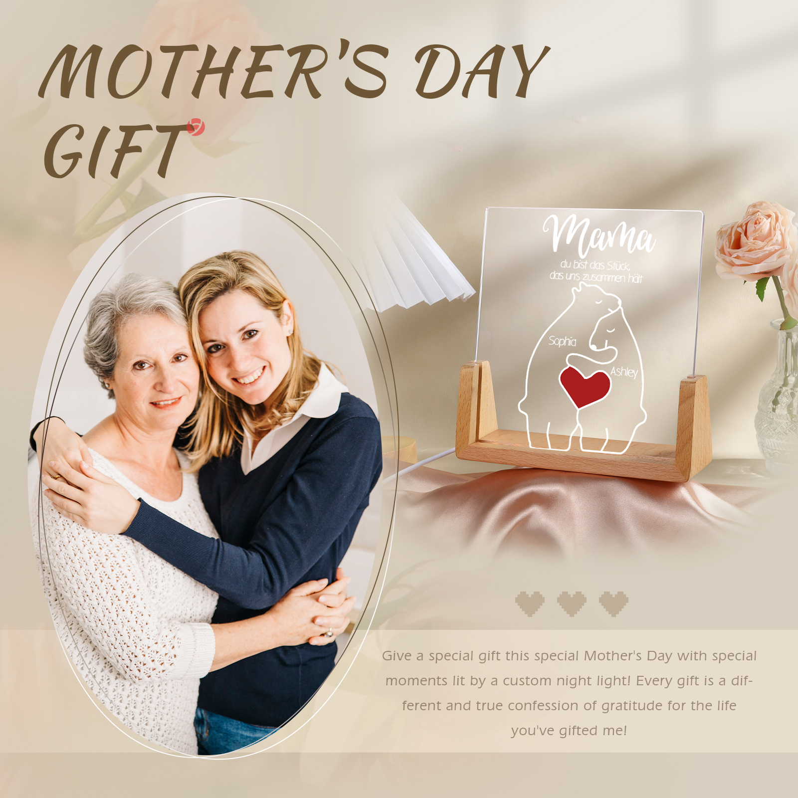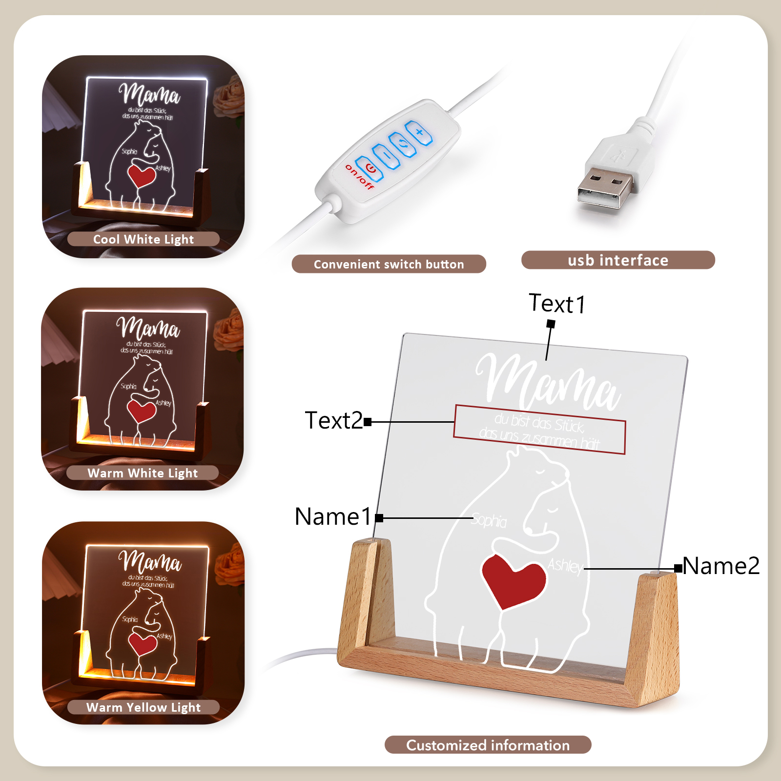 Personalisierte 2 Namen & Texte Bär Familie Nachtlicht Geschenk für Großmutter/Mutter zum Muttertag