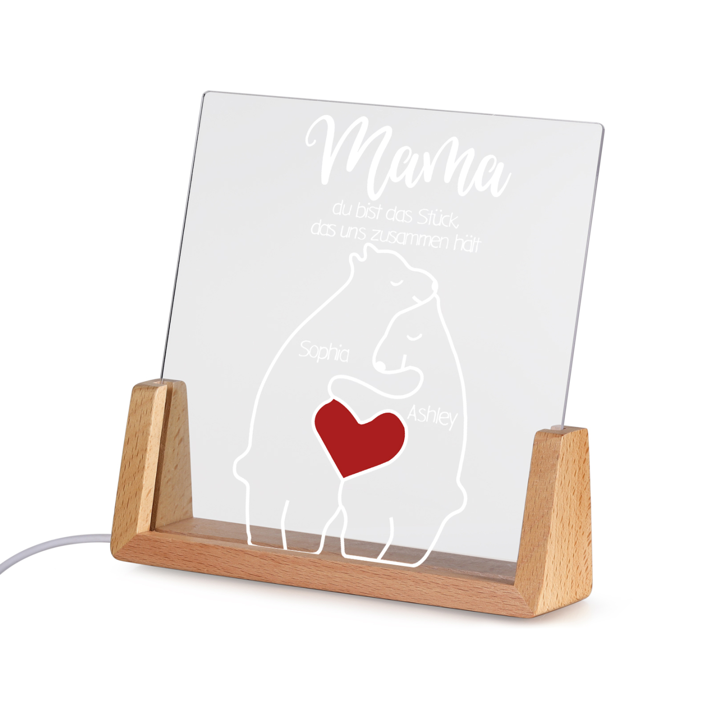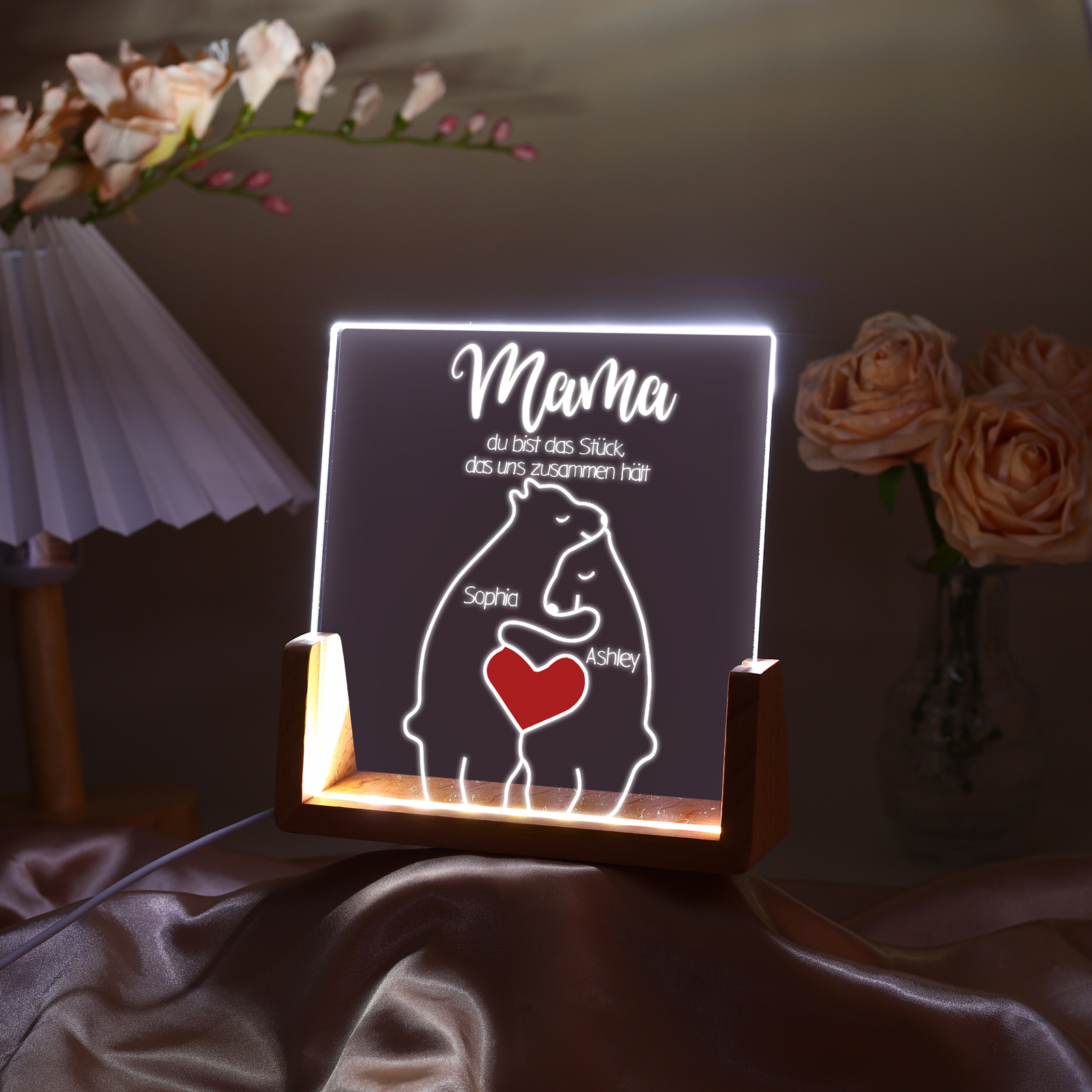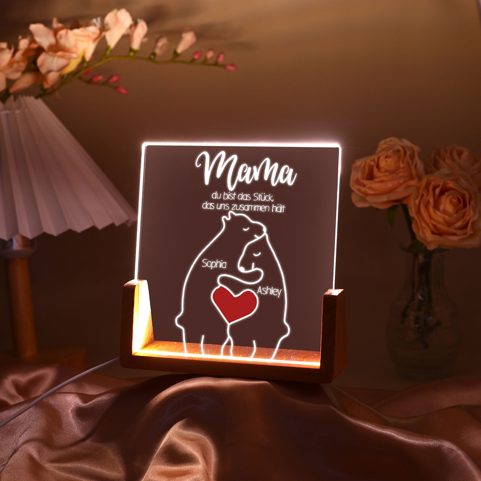 Personalisierte 2 Namen & Texte Bär Familie Nachtlicht Geschenk für Großmutter/Mutter zum Muttertag