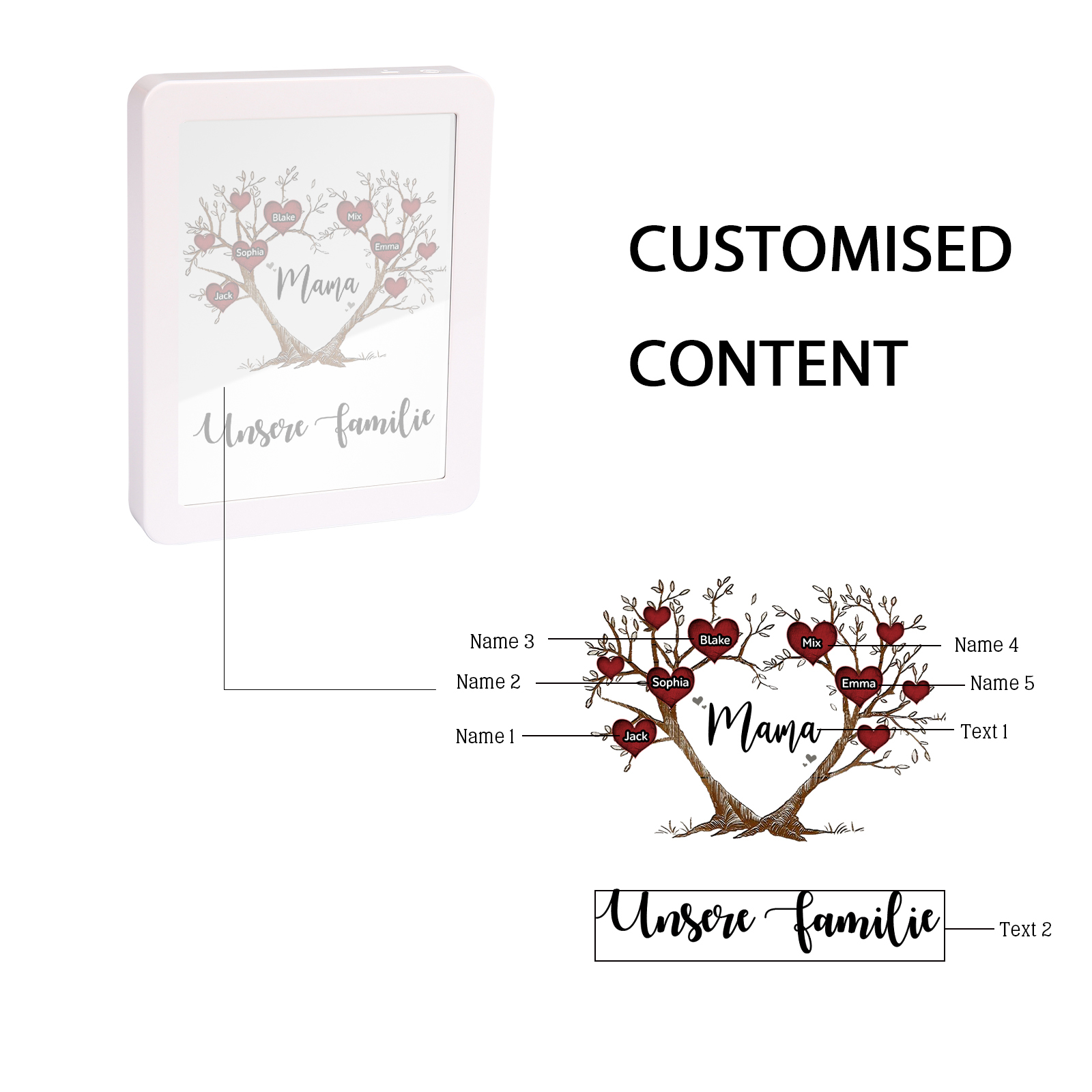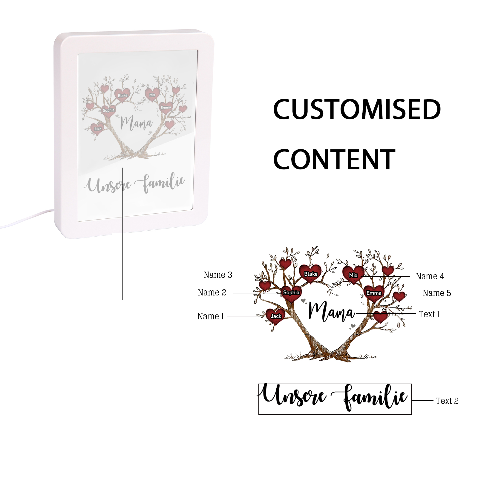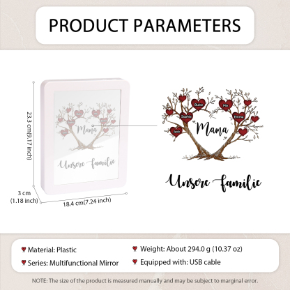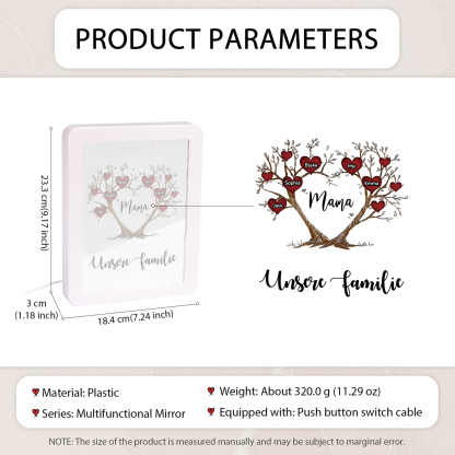 Personalisierte 2 Texte & 5 Namen Familienbaum Familie Spiegelrahmen Nachtlicht LED-Licht