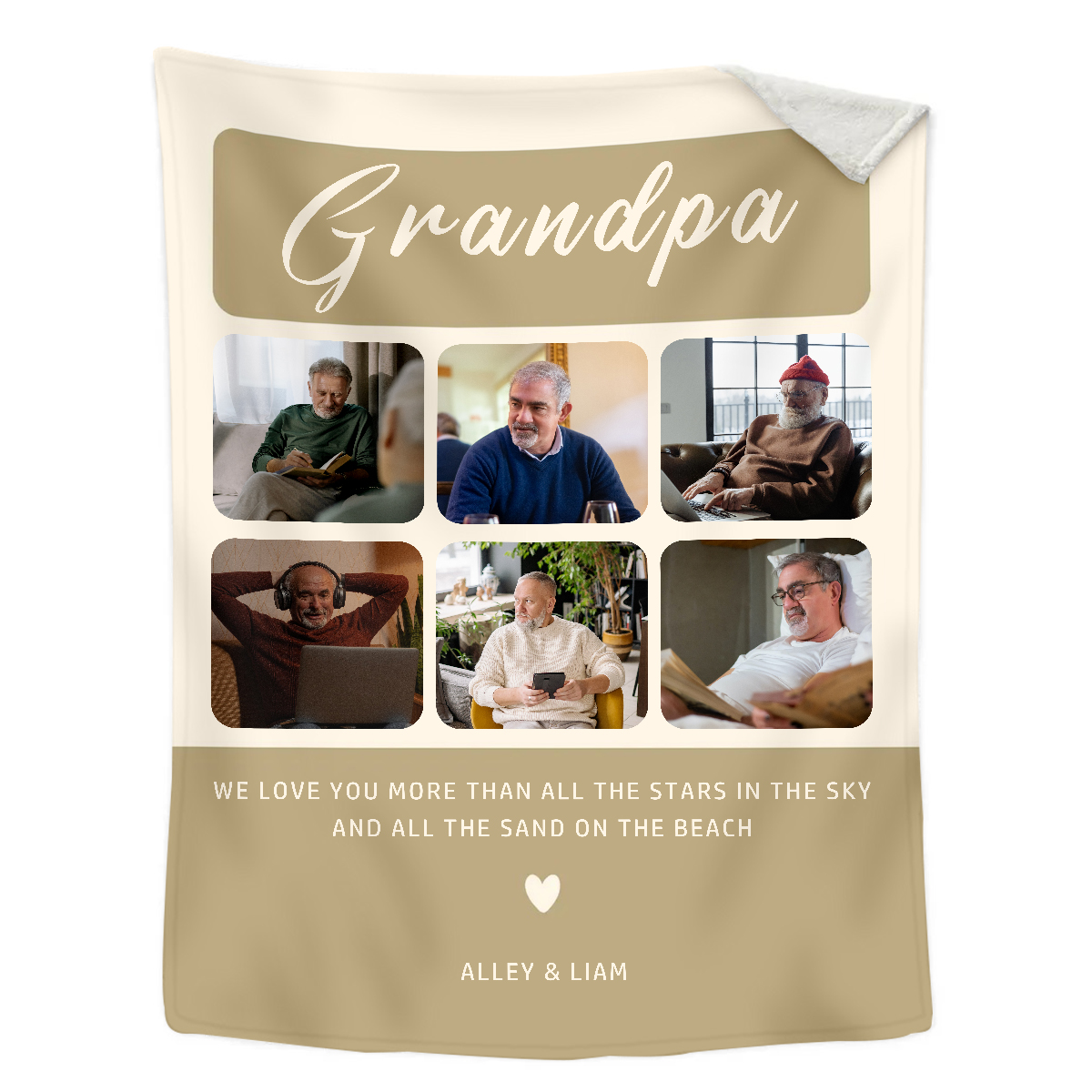 Personalisierte 2 Texte & 6 Fotos & 2 Namen Decke-Großelterntag Geschenk für Opa