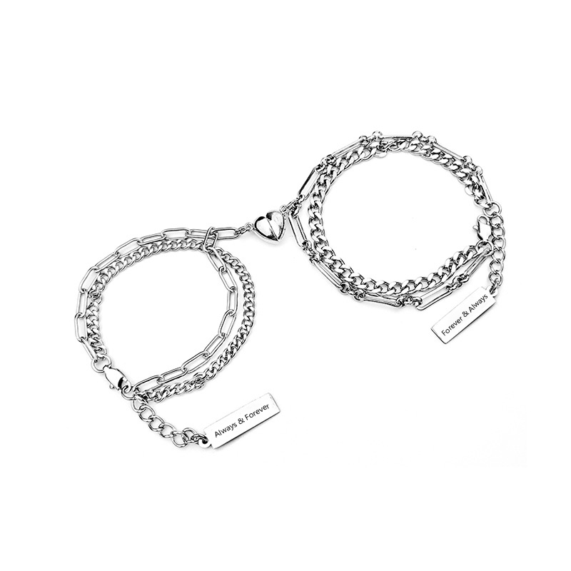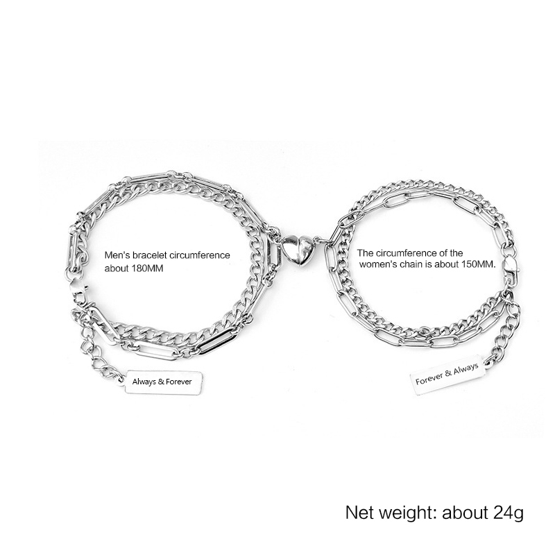 Personalisierte 2 Texte Herz Magnet Doppelkette Edelstahl Armbänder