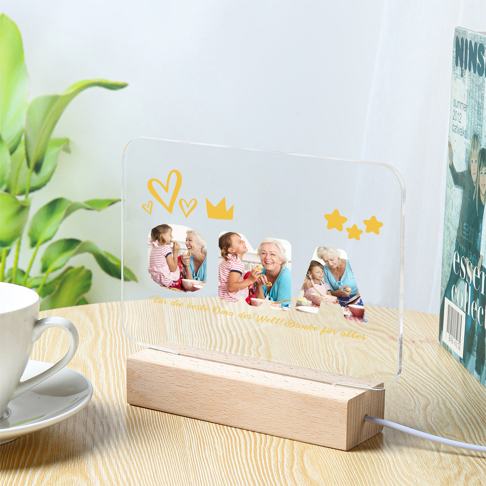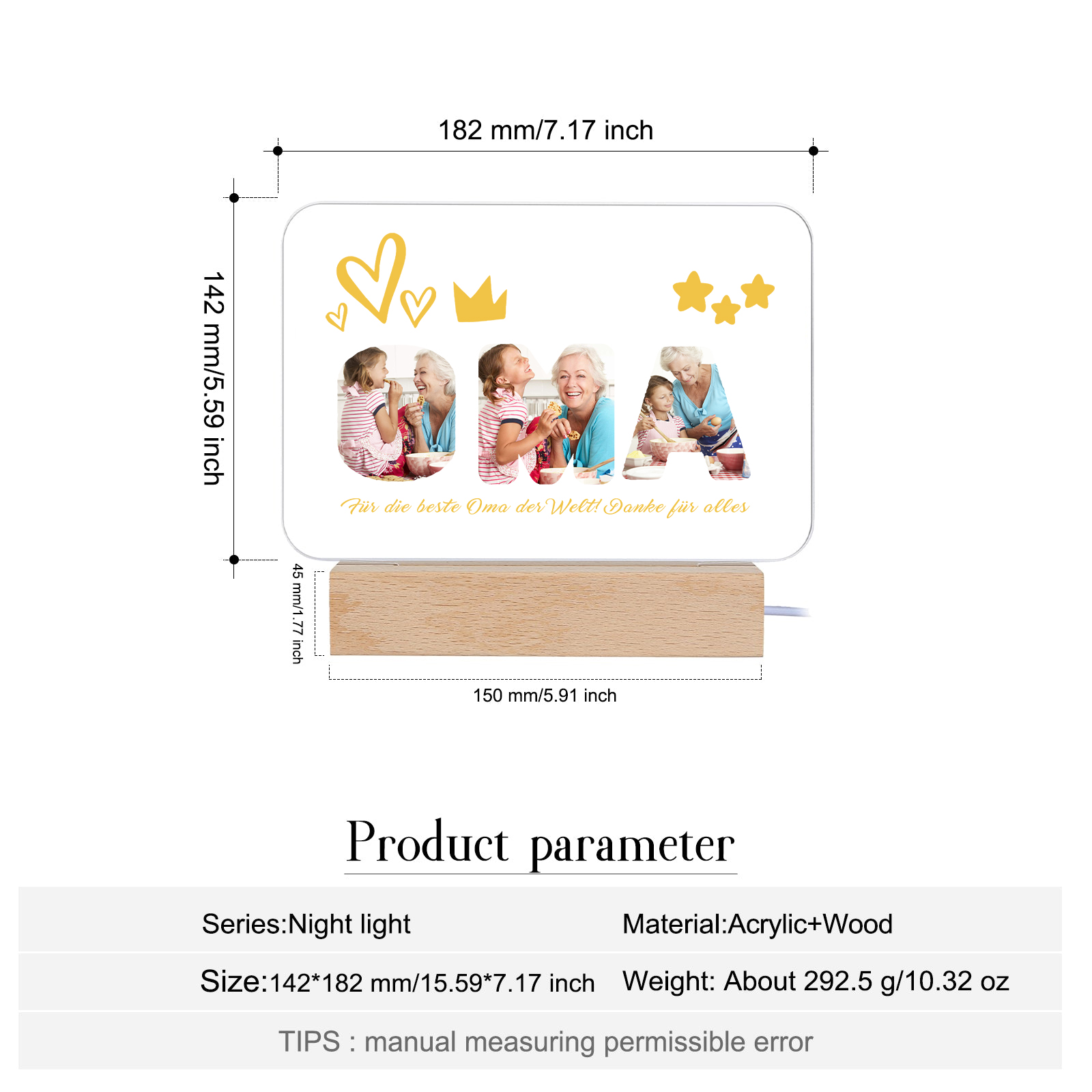Personalisierte 3 Fotos & Text OMA Nachtlicht Geschenk für Großmutter