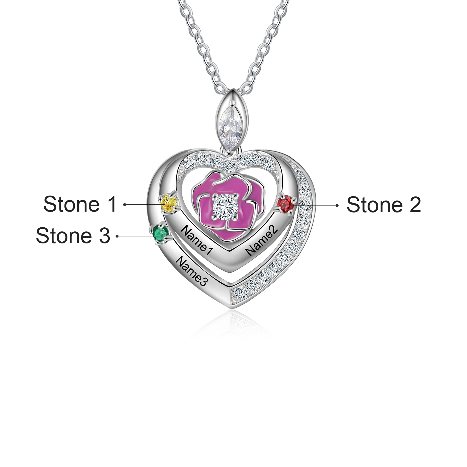 Personalisierte 3 Name Veilchen Halskette mit 3 Geburtssteinen für Mutter