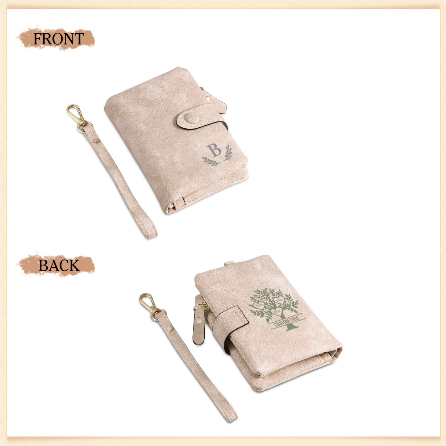 Personalisierte 3 Namen & 1 Text & 1 Buchstabe Lebensbaum Geldbörse aus PU Leder für Frauen