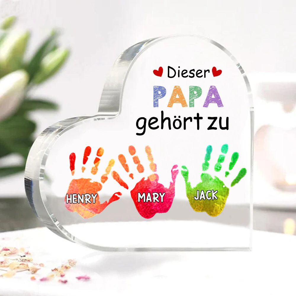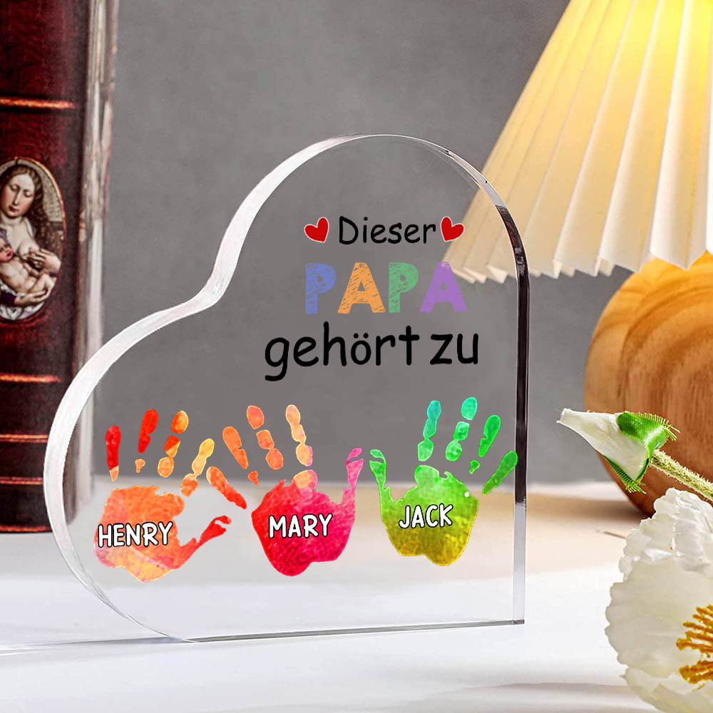 Personalisierte 3 Namen Acryl-Deko Dieser Papa gehört zu Schreibtischdekoration für Vater