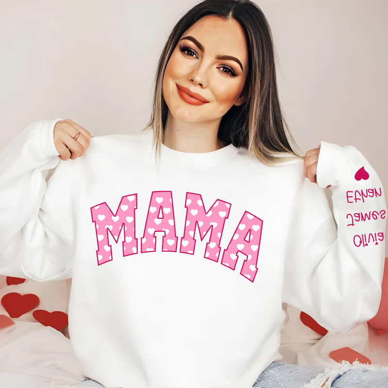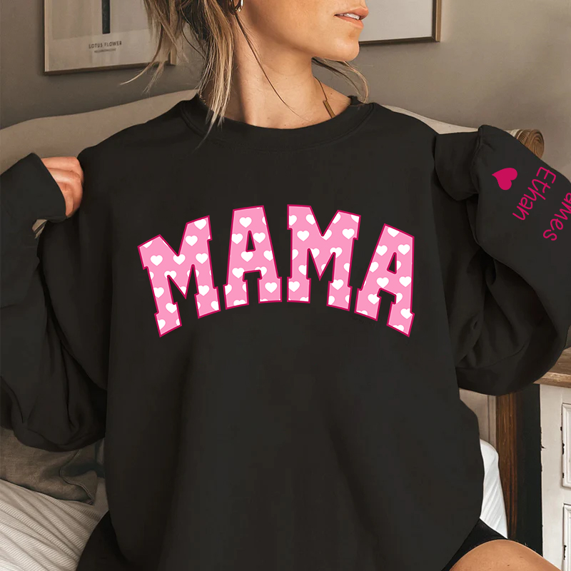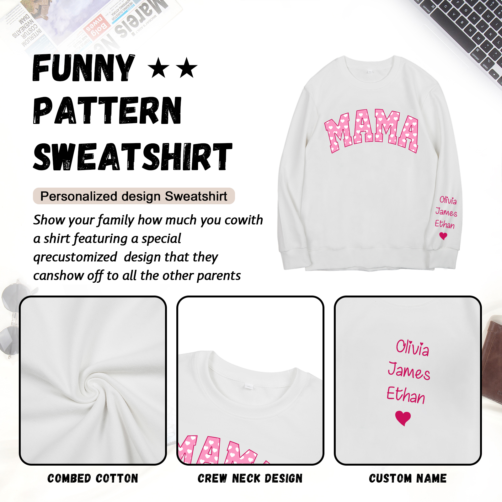 Personalisierte 3 Namen Mama Sweatshirt mit Rundhalsausschnitt für Mutter