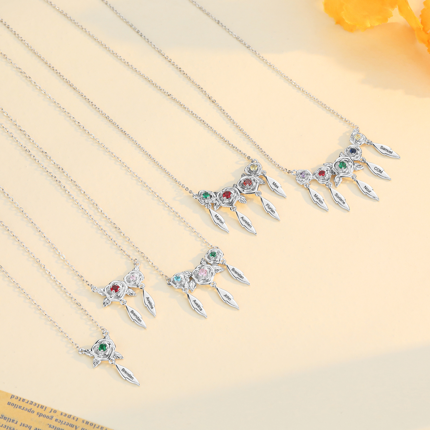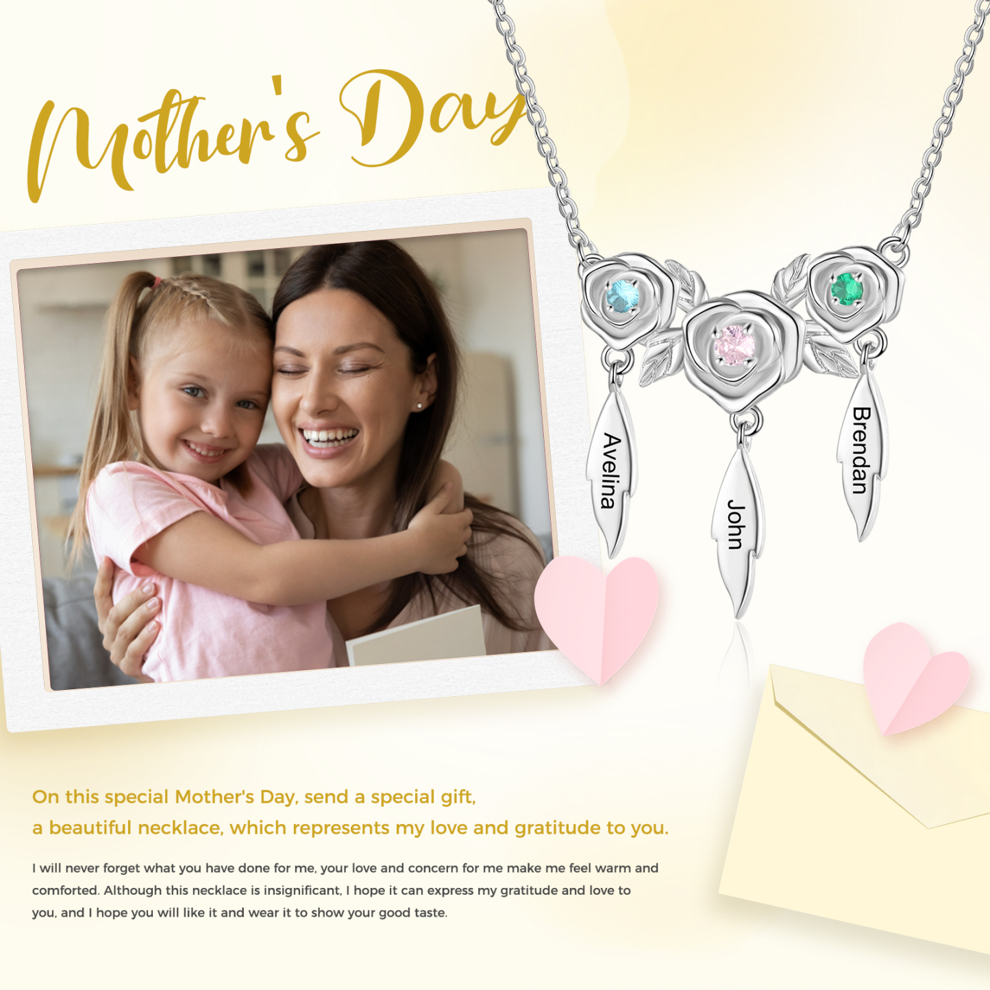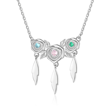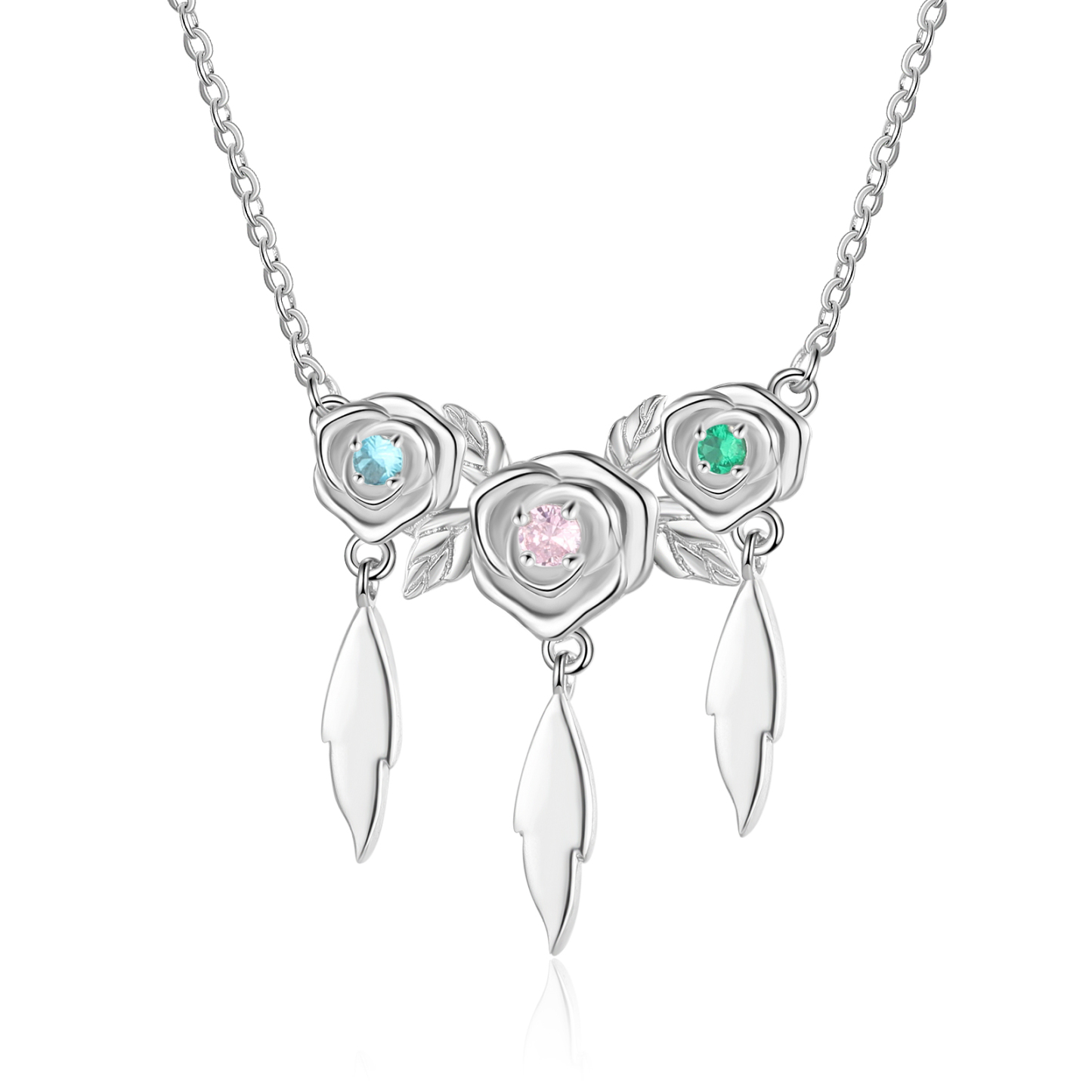 Personalisierte 3 Namen Rose Halskette mit 3 Geburtssteinen