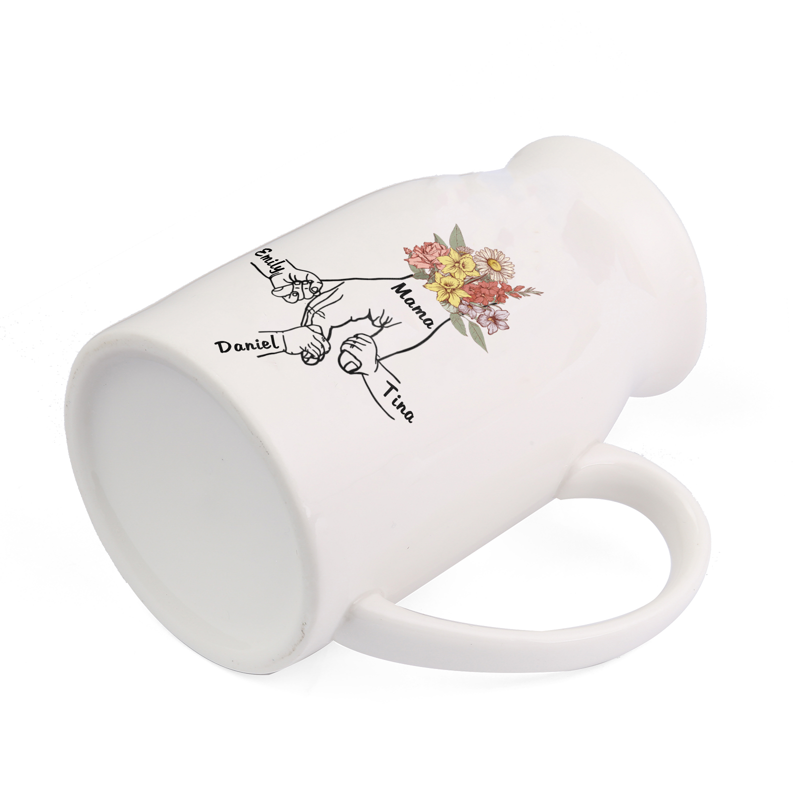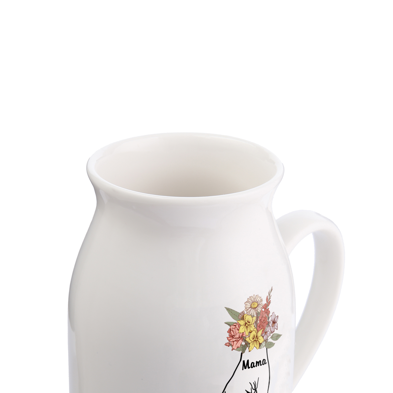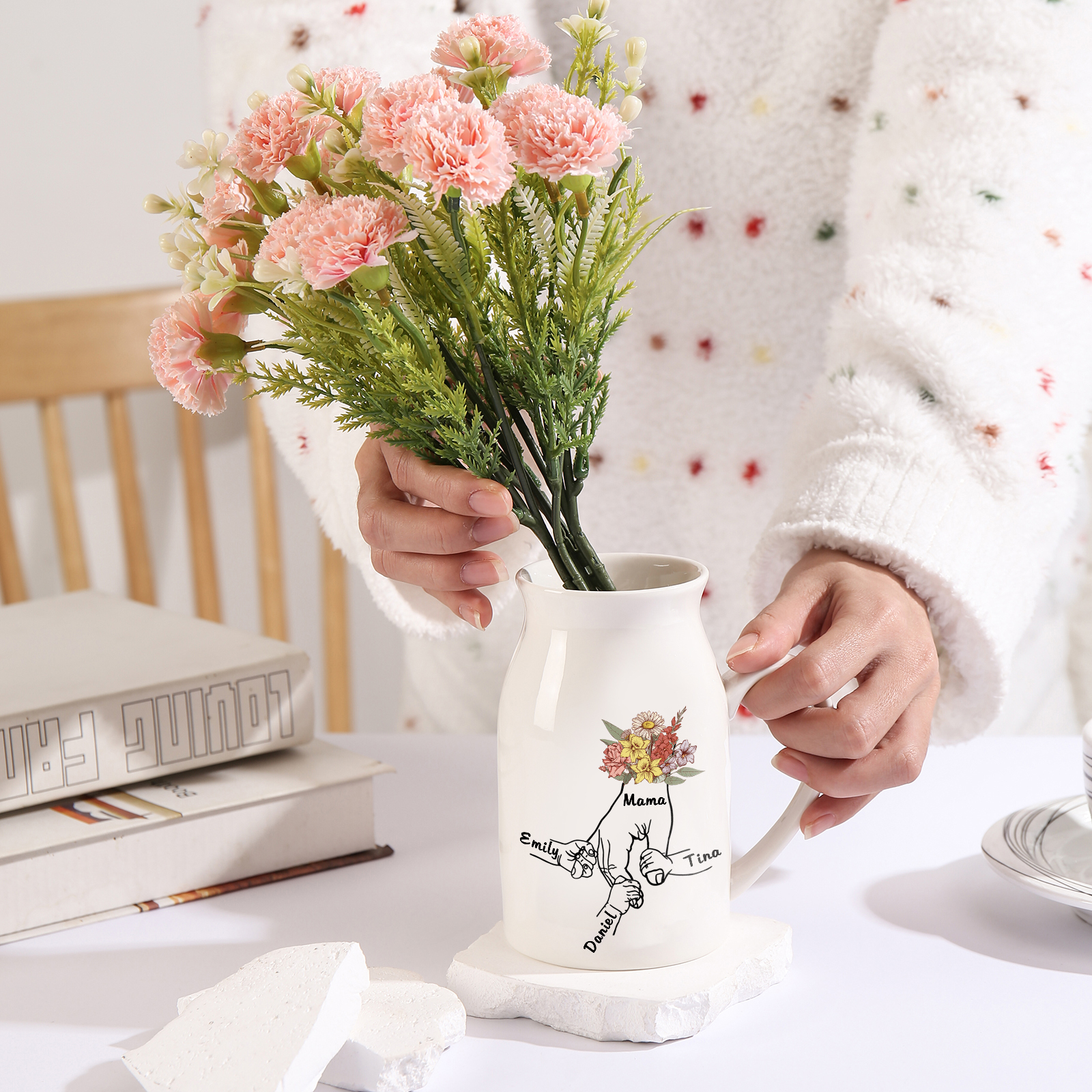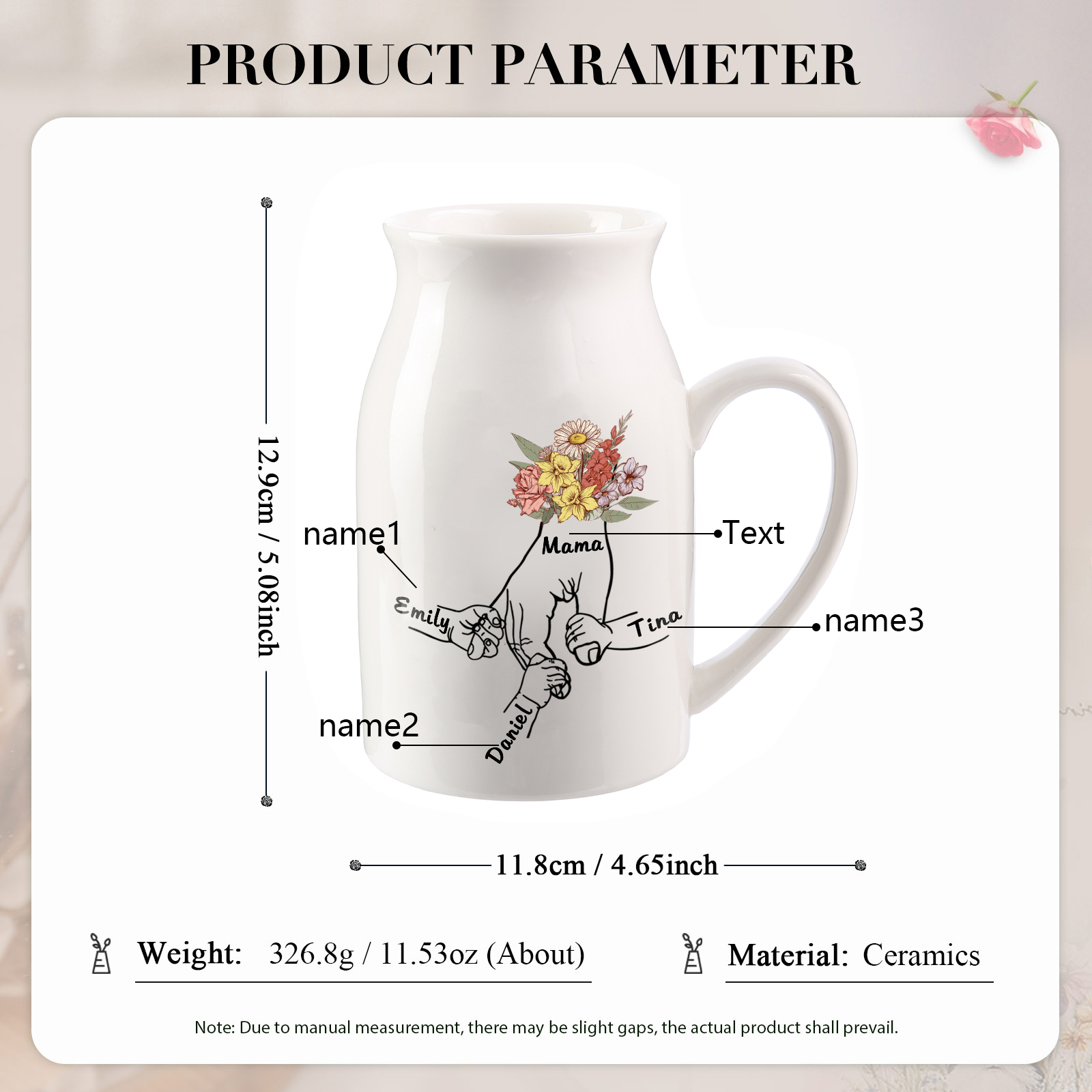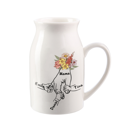 Personalisierte 3 Namen & Text Bunte Blumen Hand in Hand Familie Vase