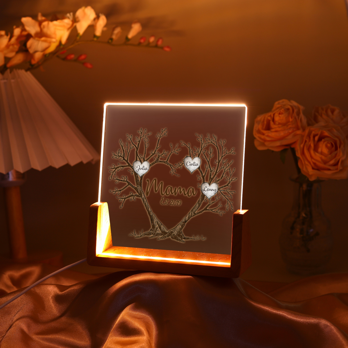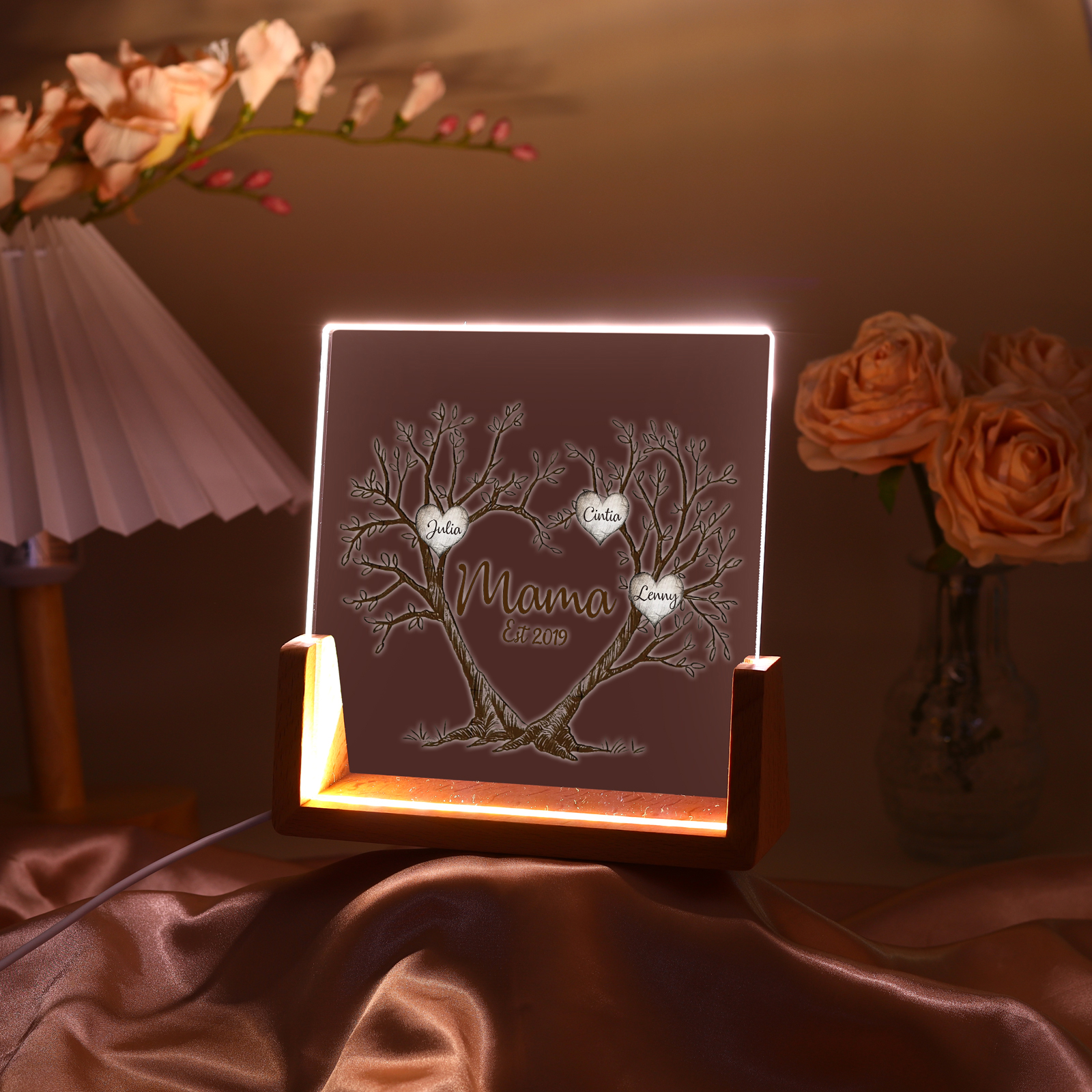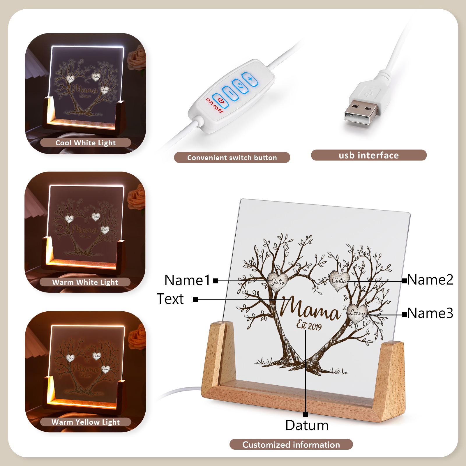Personalisierte 3 Namen & Text & Datum Familenbaum Nachtlicht Geschenk für Großmutter/Mutter zum Muttertag