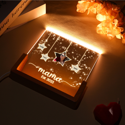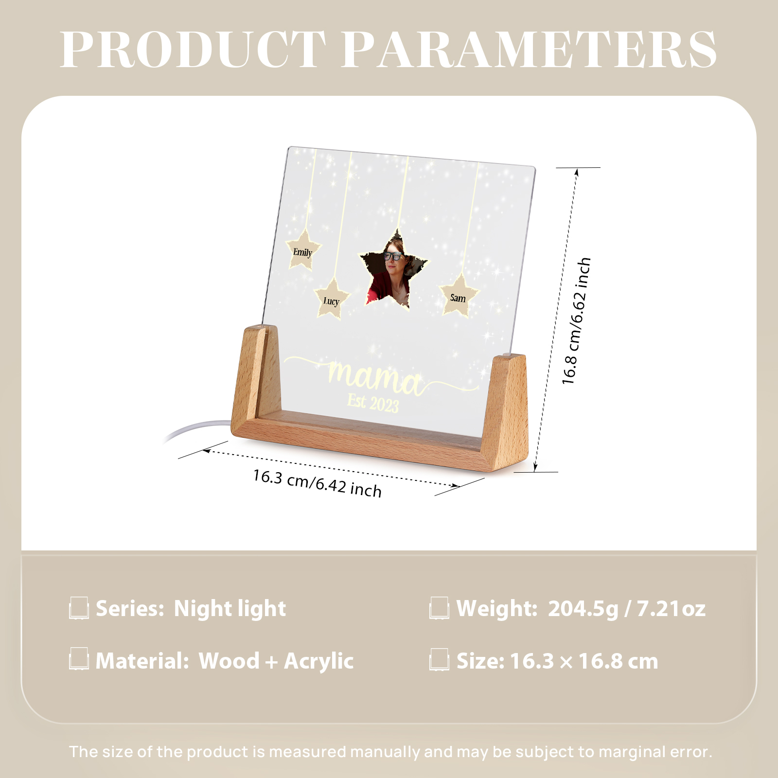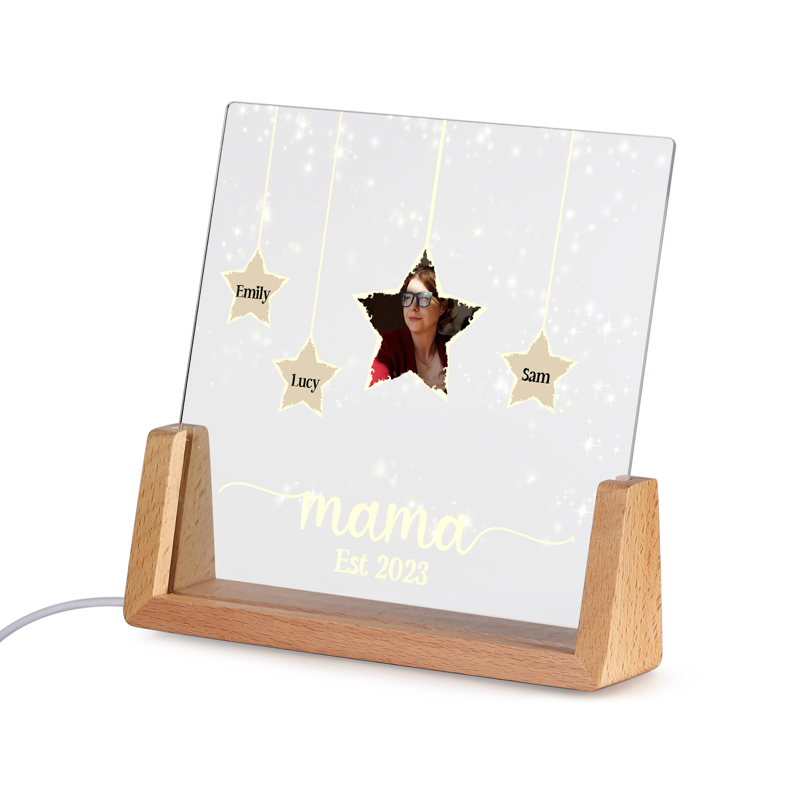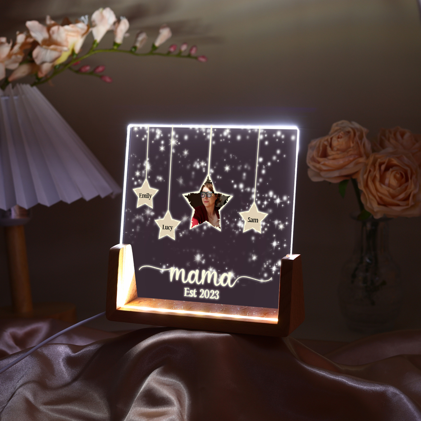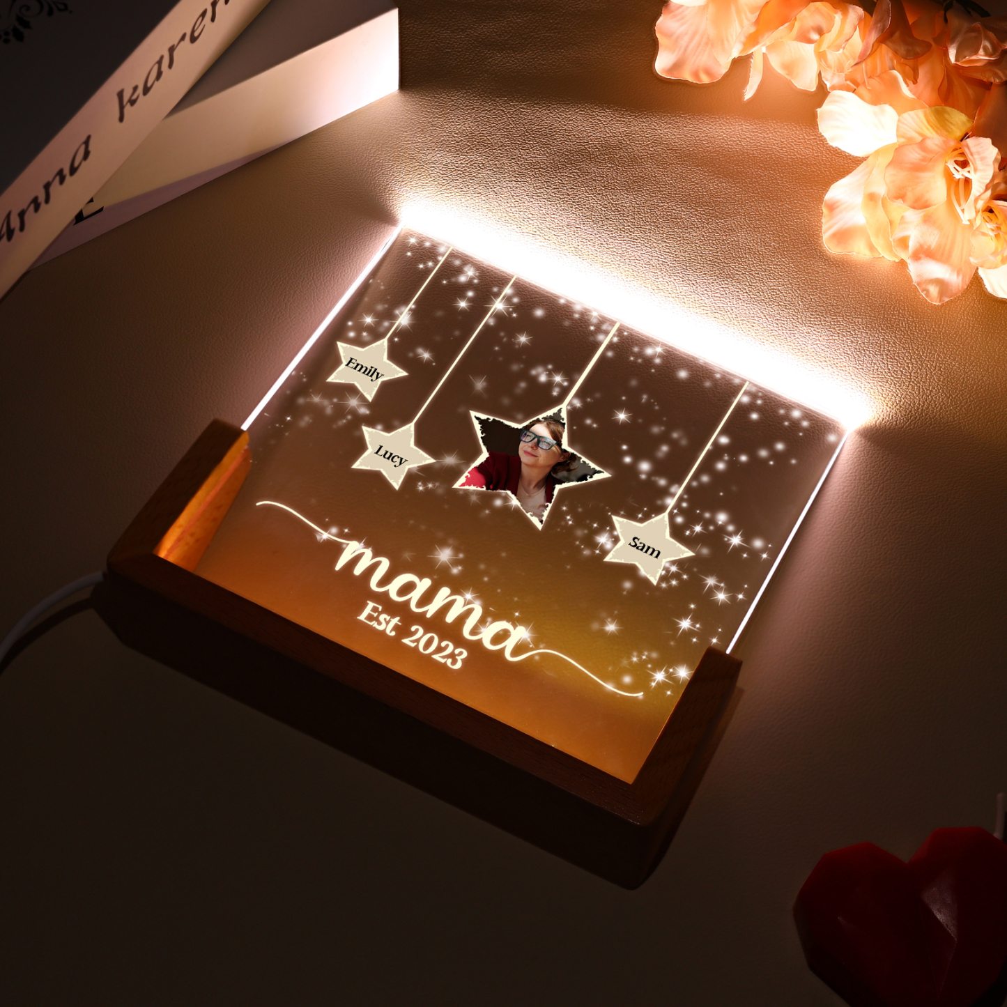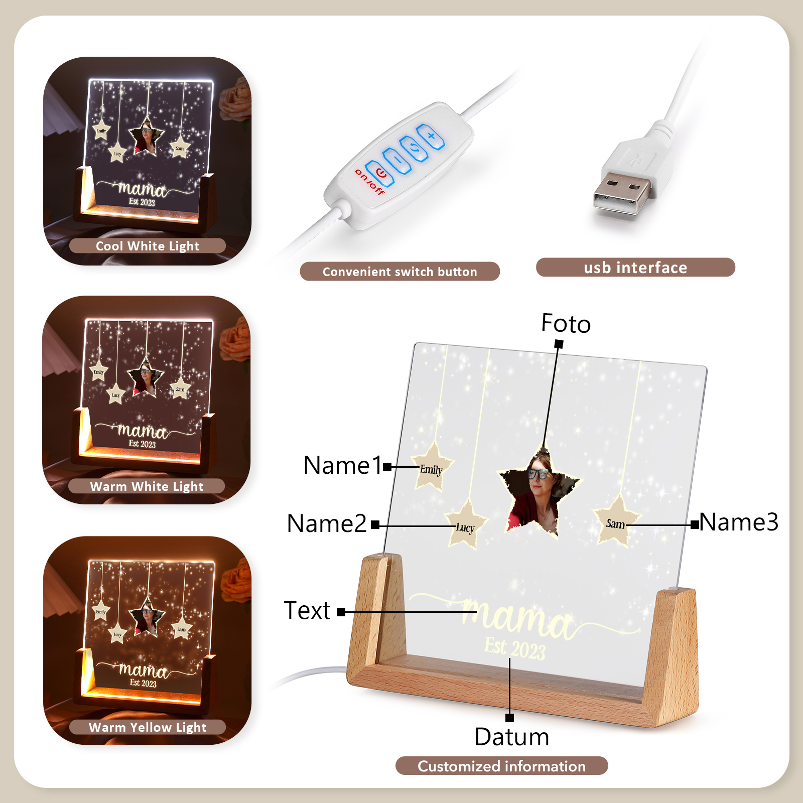 Personalisierte 3 Namen & Text & Datum & Foto Stern Nachtlicht Geschenk für Großmutter/Mutter zum Muttertag