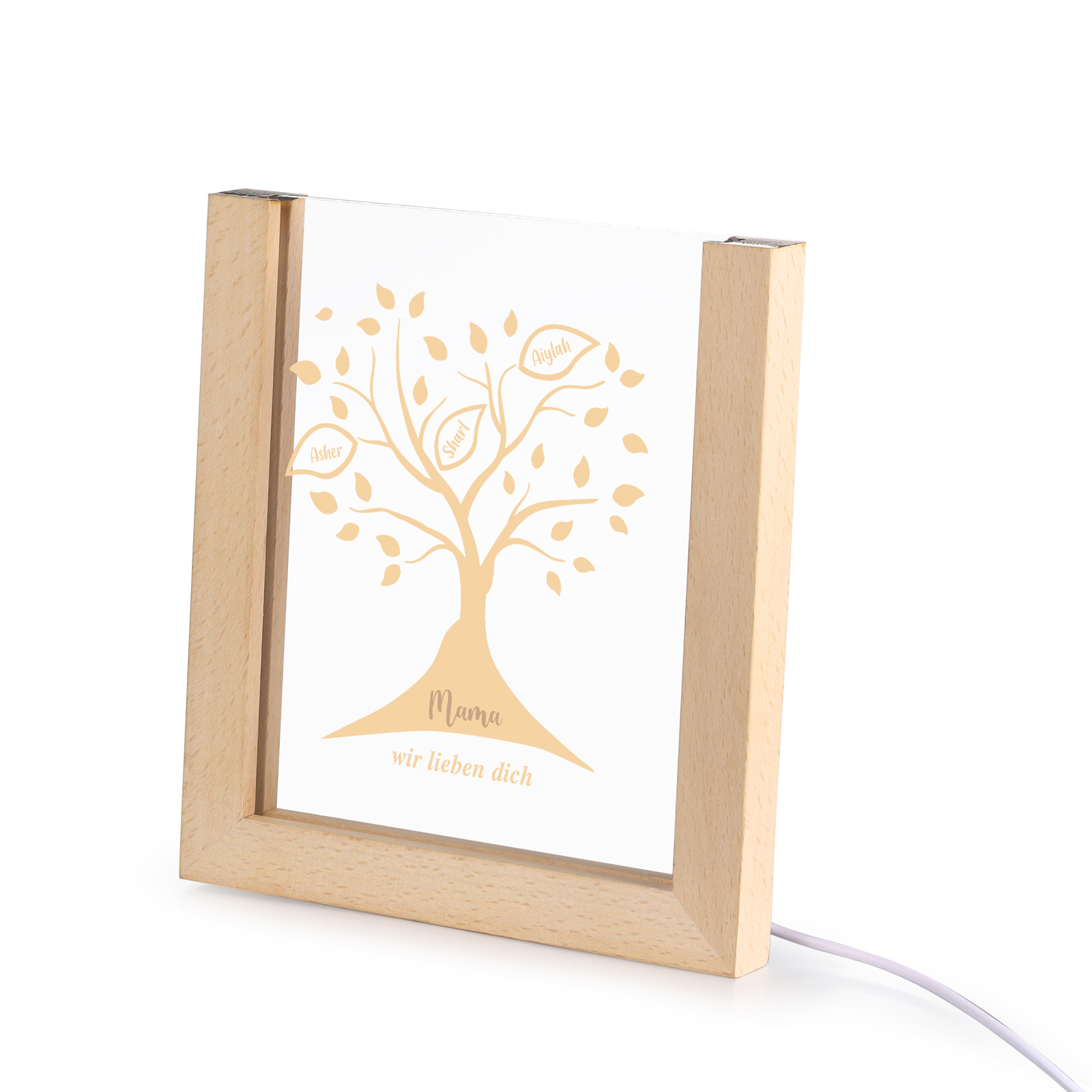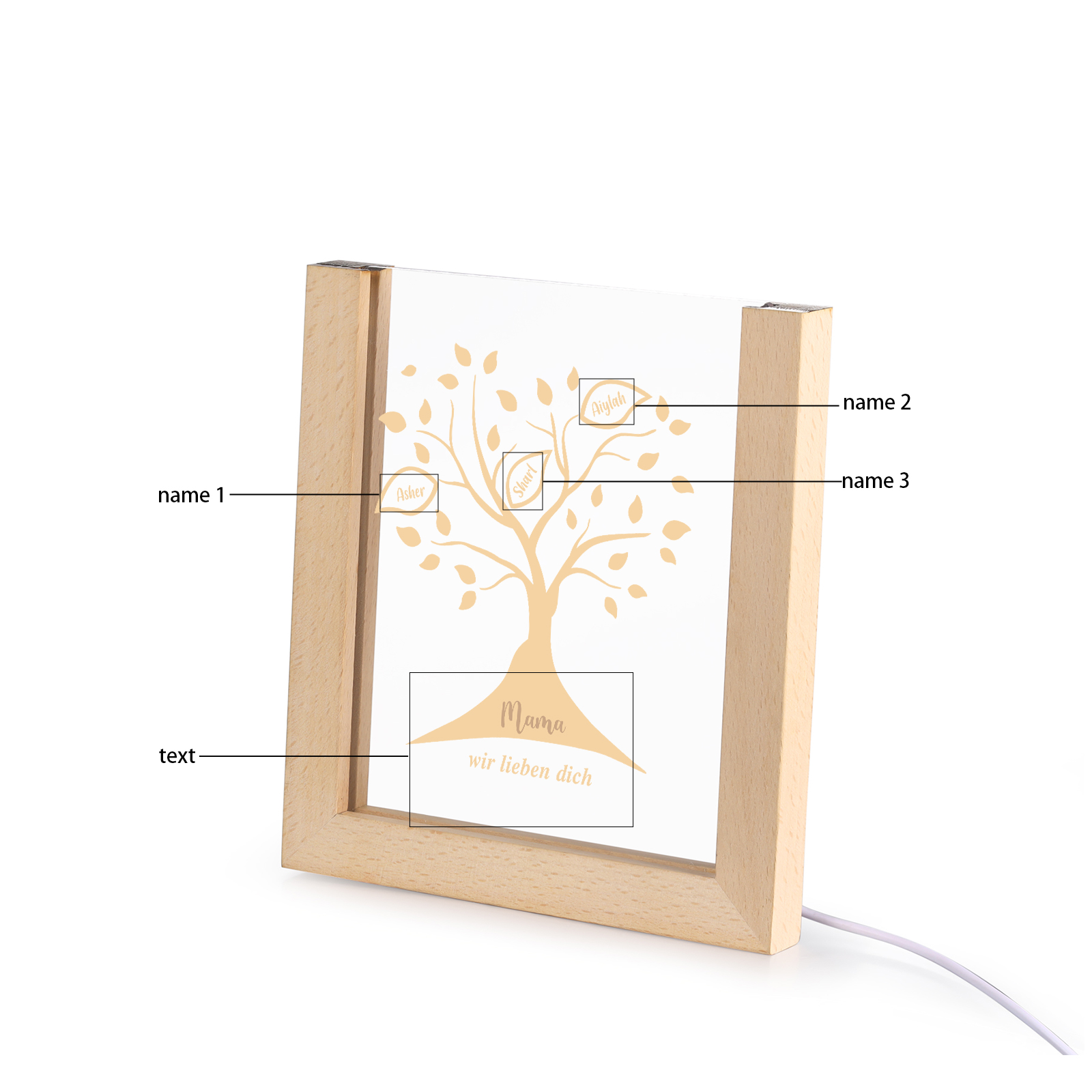 Personalisierte 3 Namen & Text Familienbaum Acryl Rahmen Nachtlicht Geschenk für Großmutter/Mutter zum Muttertag