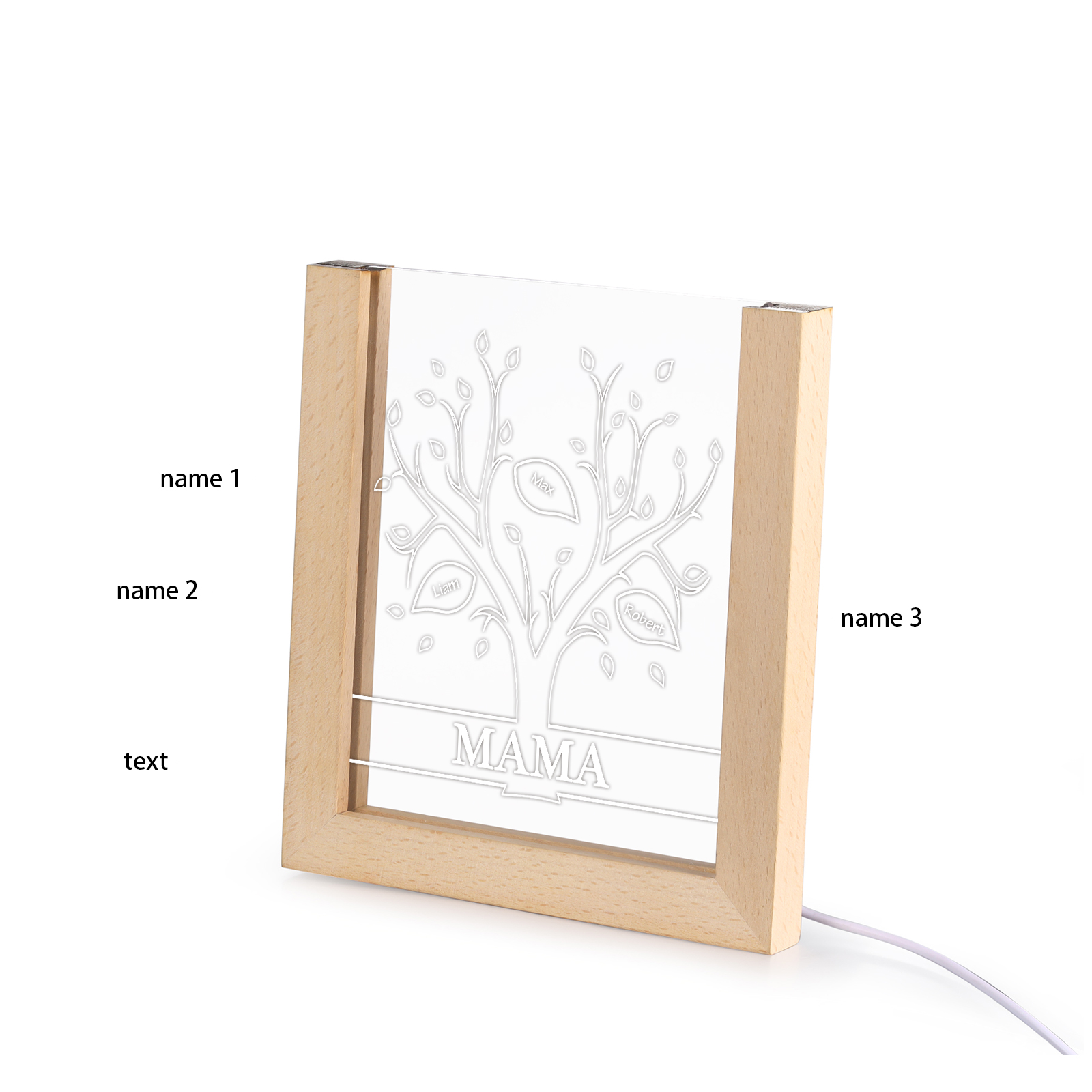 Personalisierte 3 Namen & Text Lebensbaum Acryl Rahmen Nachtlicht Geschenk für Großmutter/Mutter zum Muttertag