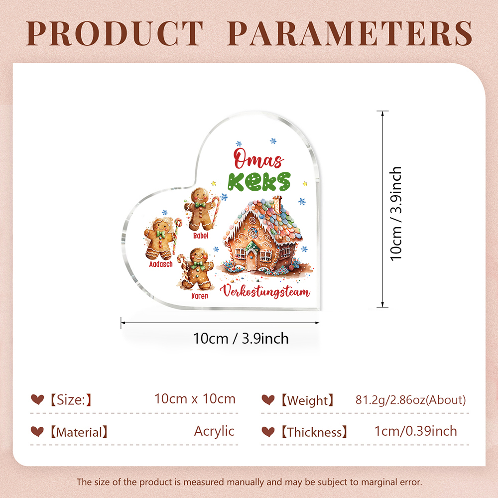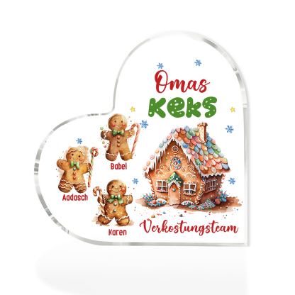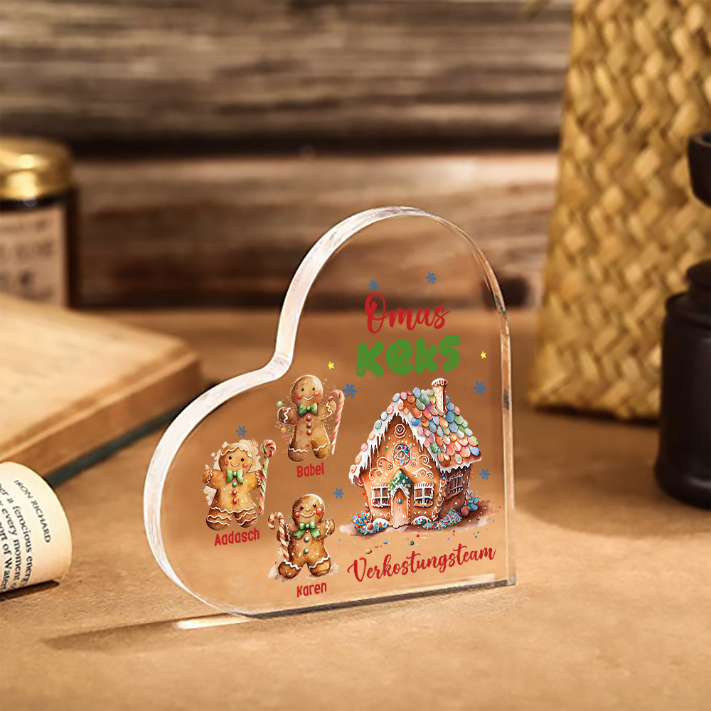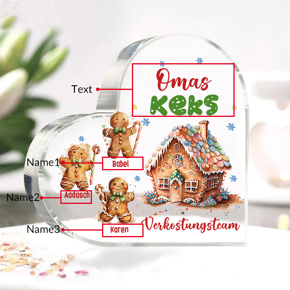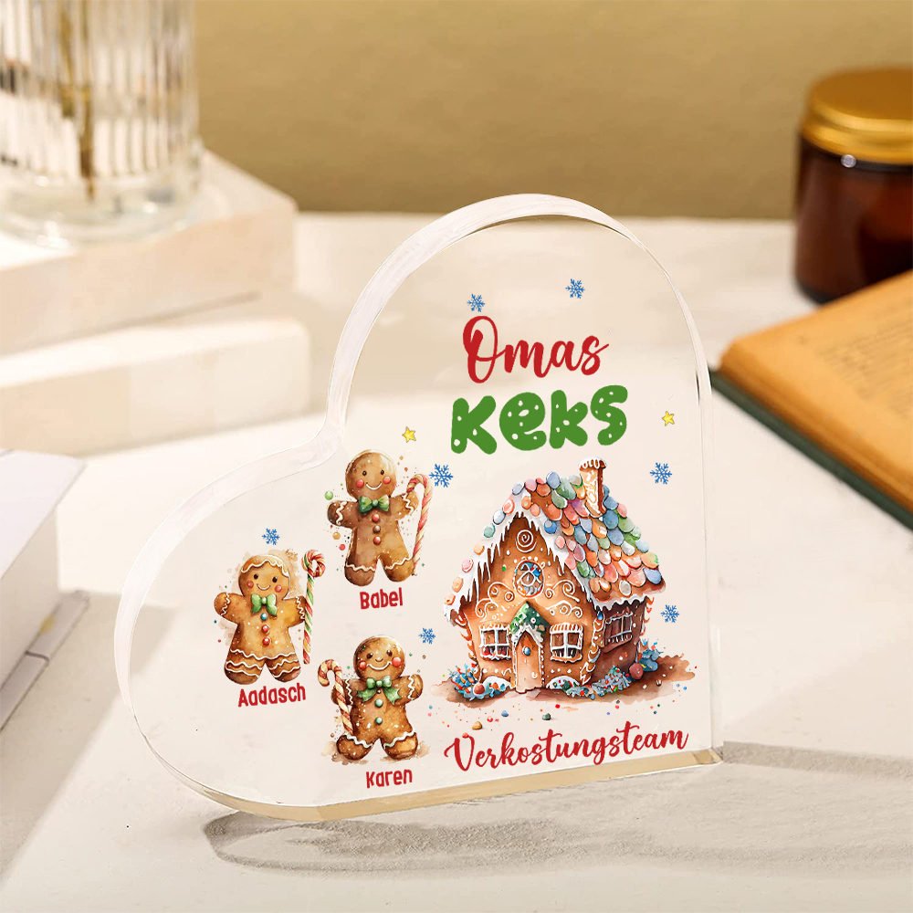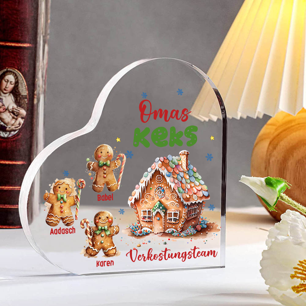 Personalisierte 3 Namen & Text Lebkuchenmann Familie Verkostungsteam Weihnachten Acryl-Deko-Schreibtischdekoration