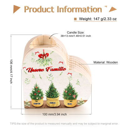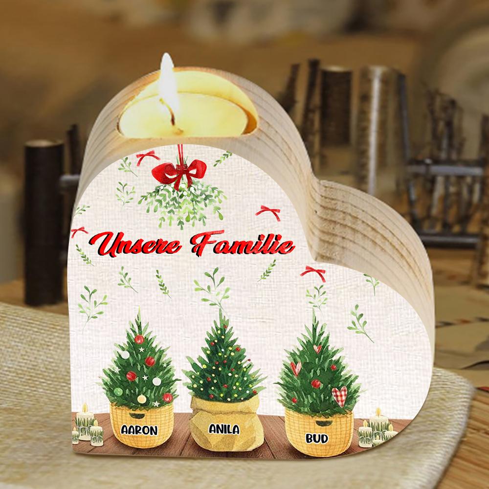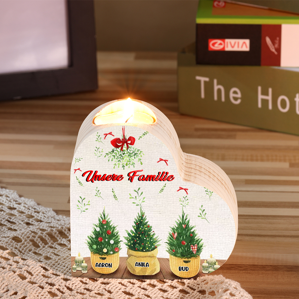 Personalisierte 3 Namen & Text Zimmerpflanze Familie Herzform Kerzenhalter für Großmutter