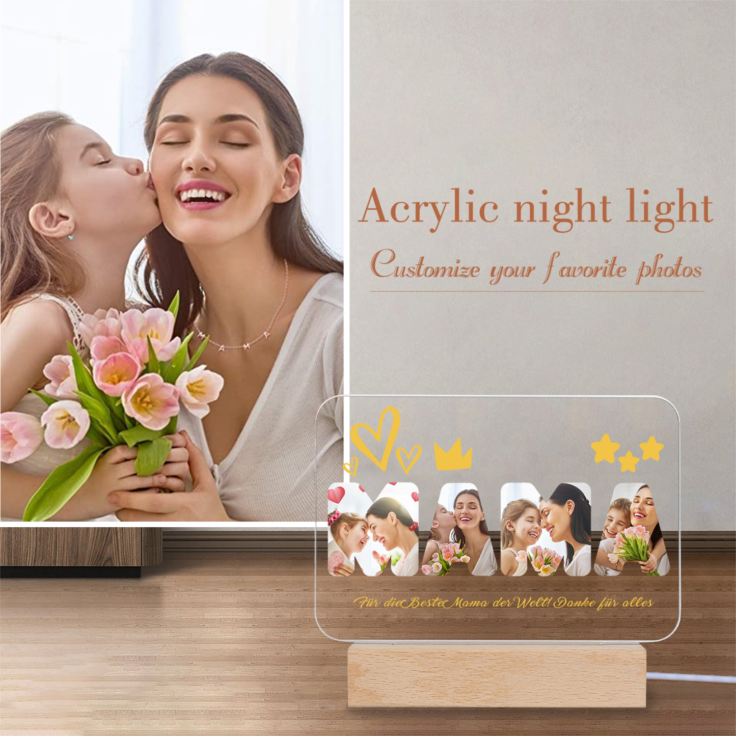 Personalisierte 4 Fotos & Text MAMA Nachtlicht Geschenk für Mutter