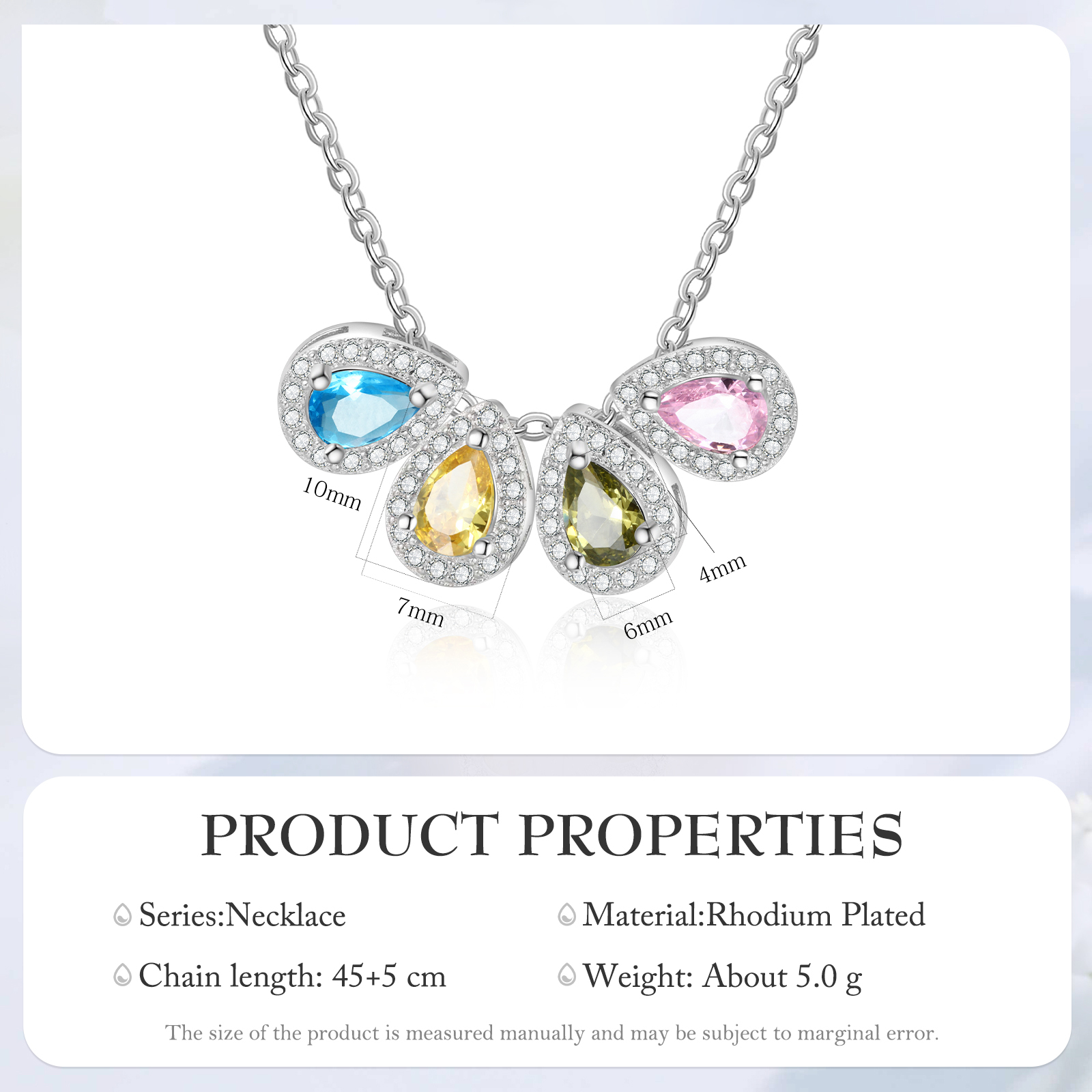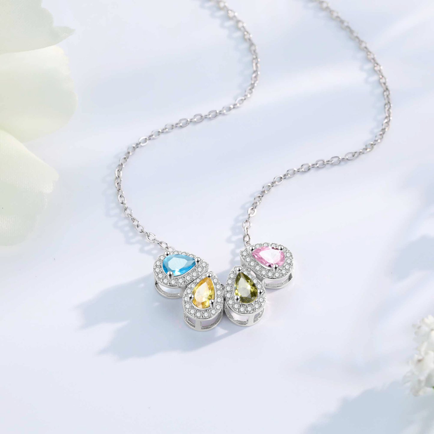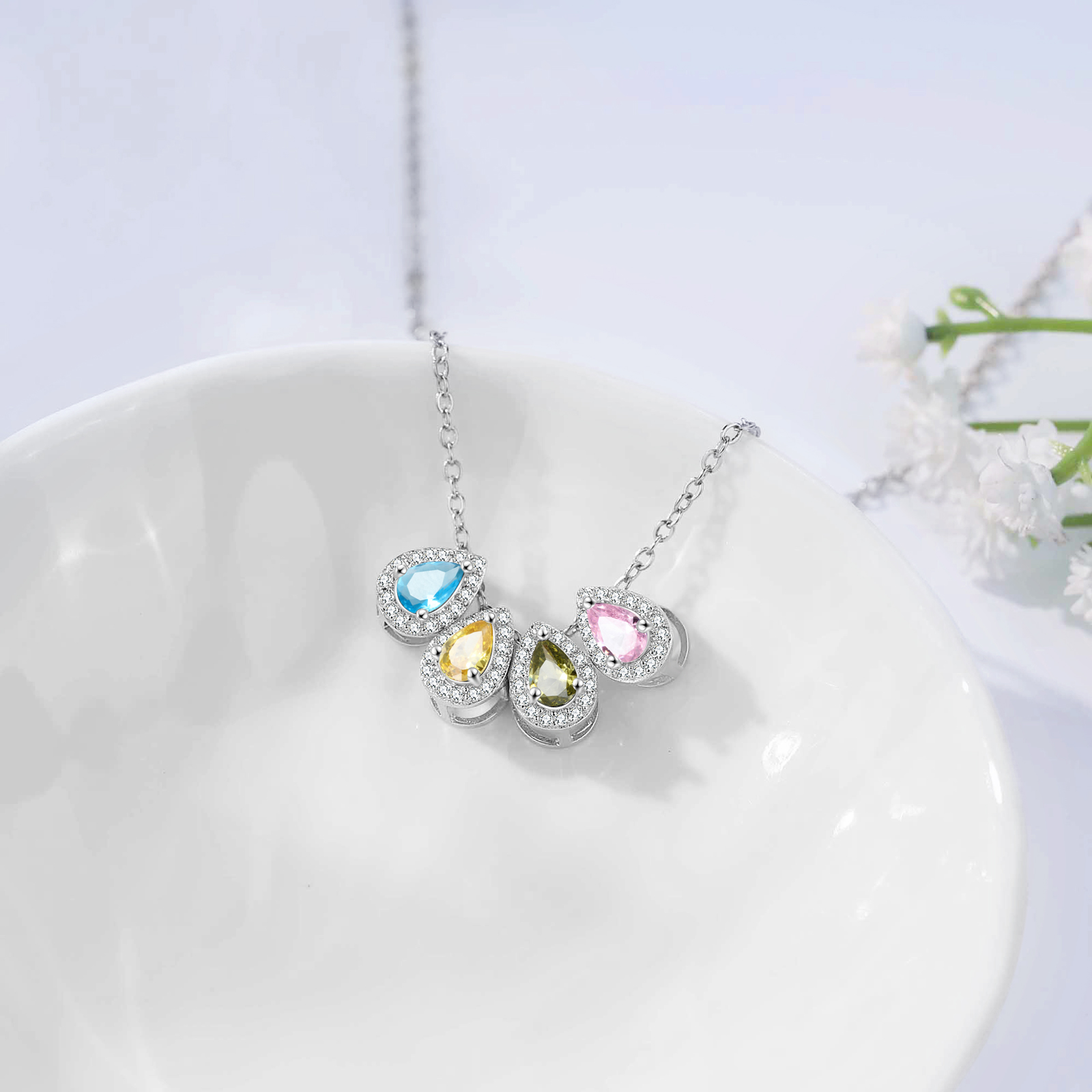Personalisierte 4 Geburtssteine Tropfenform Halskette mit Zirkonia