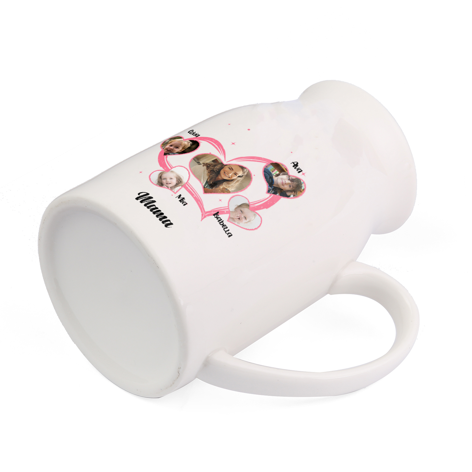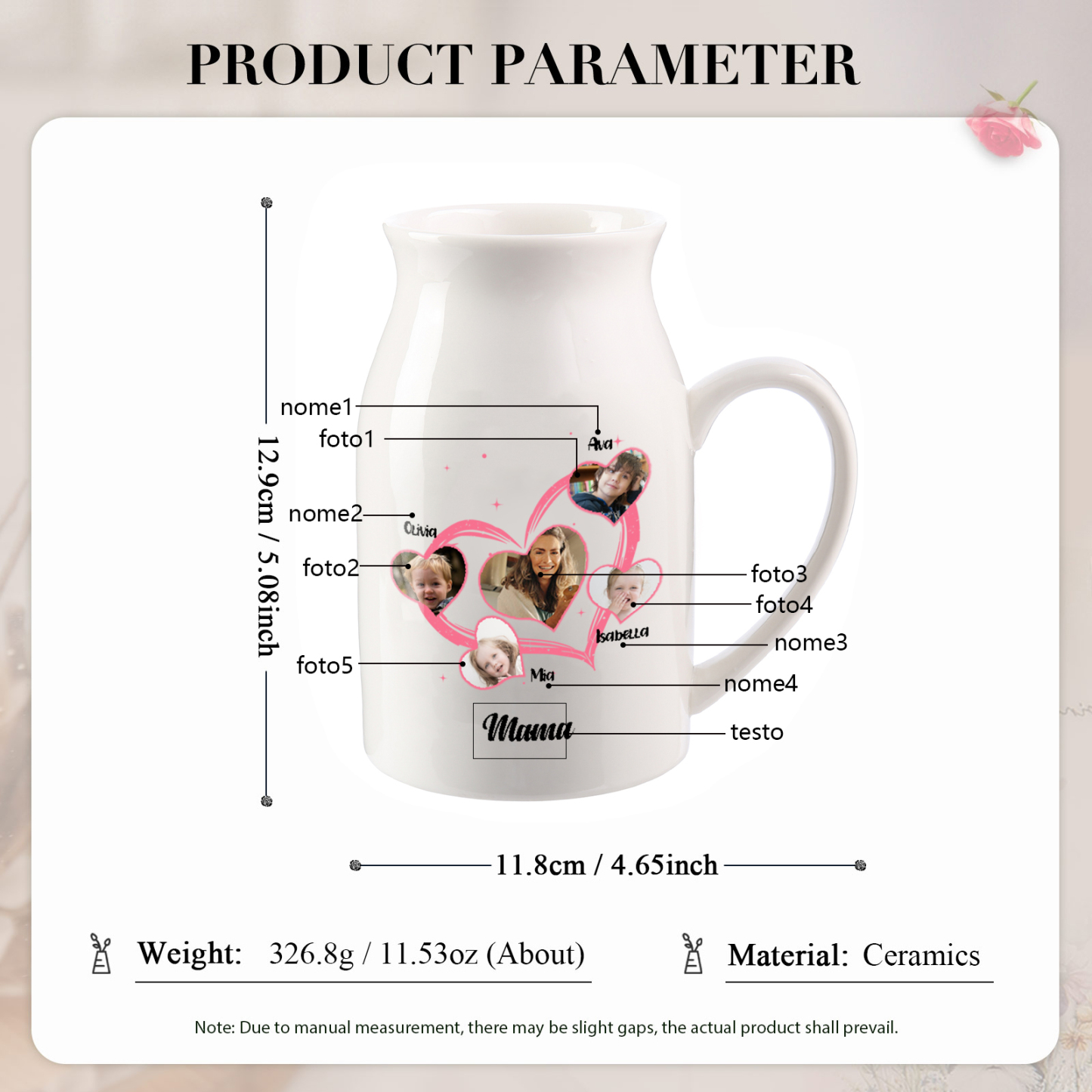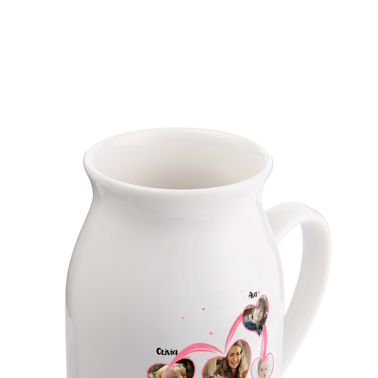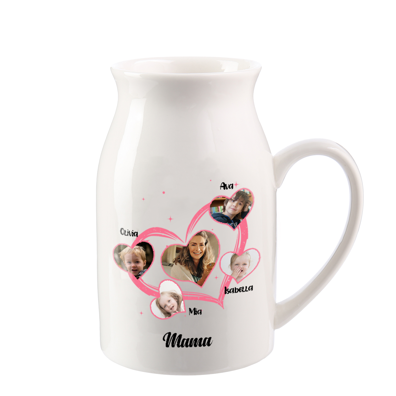 Personalisierte 4 Namen & 5 Fotos & Text Herz Familie Vase