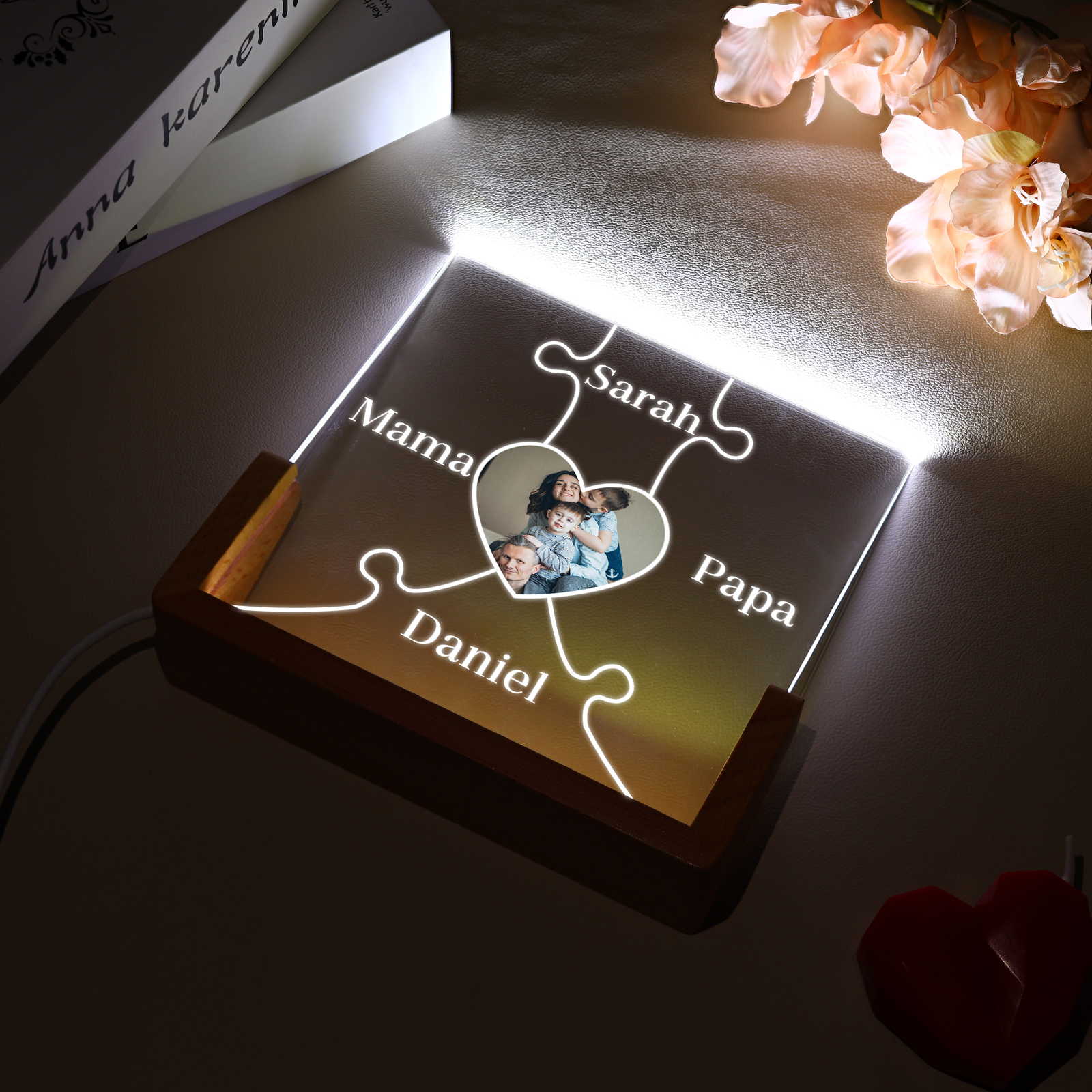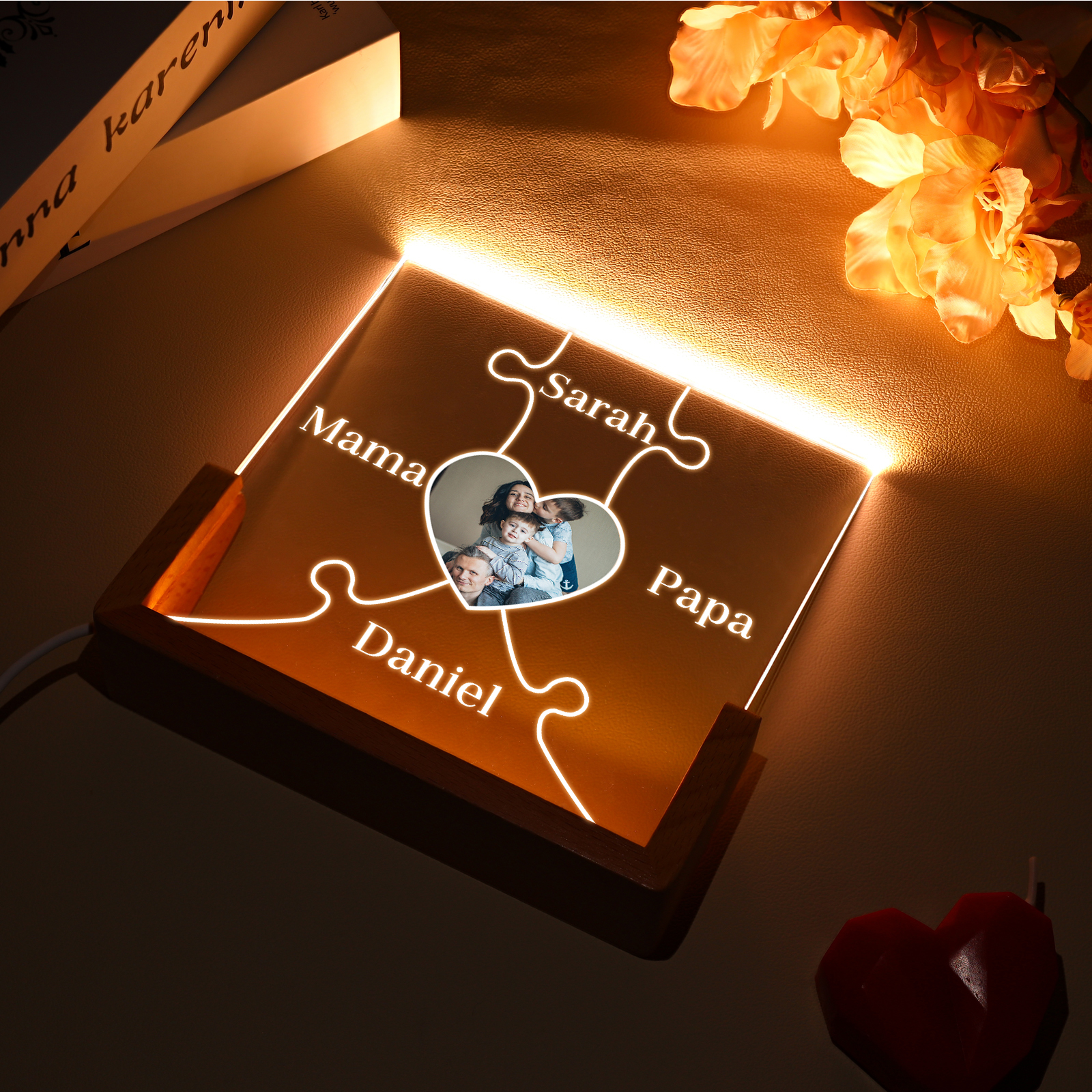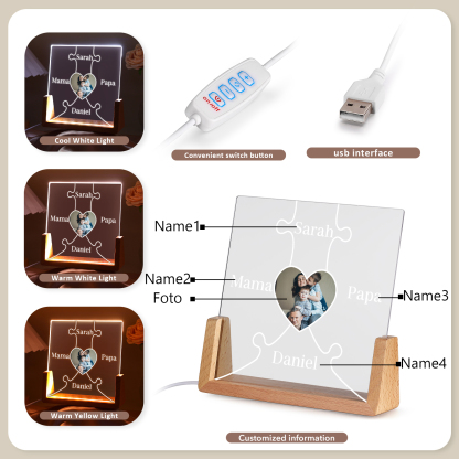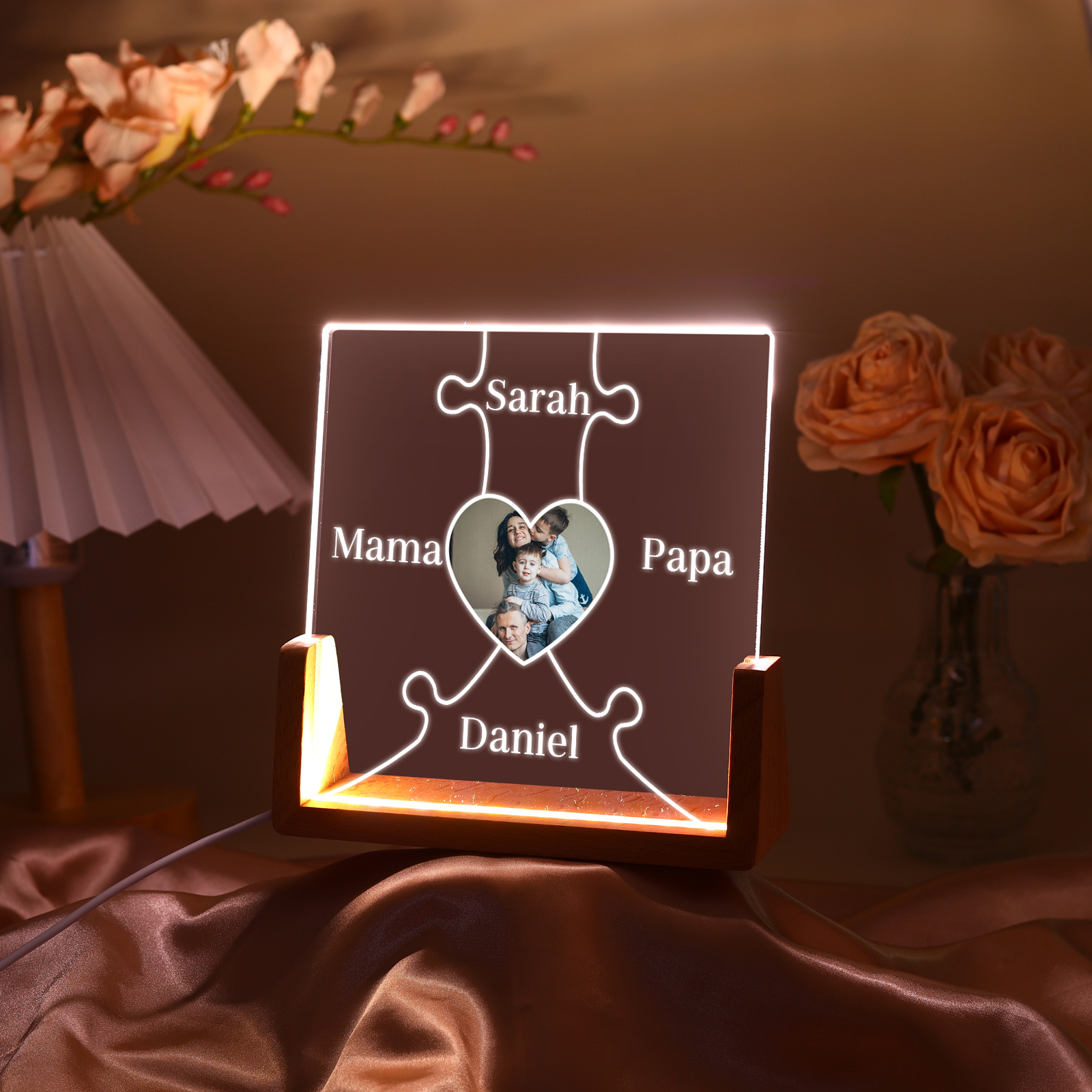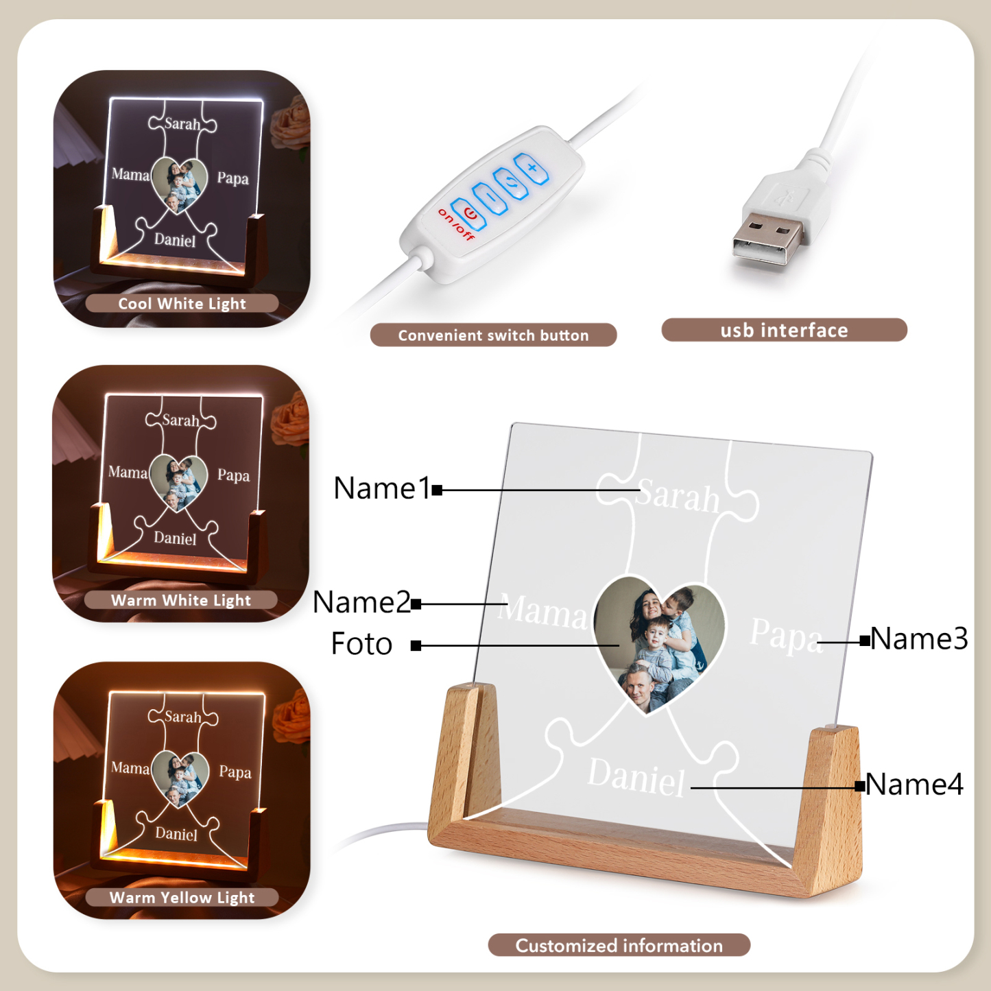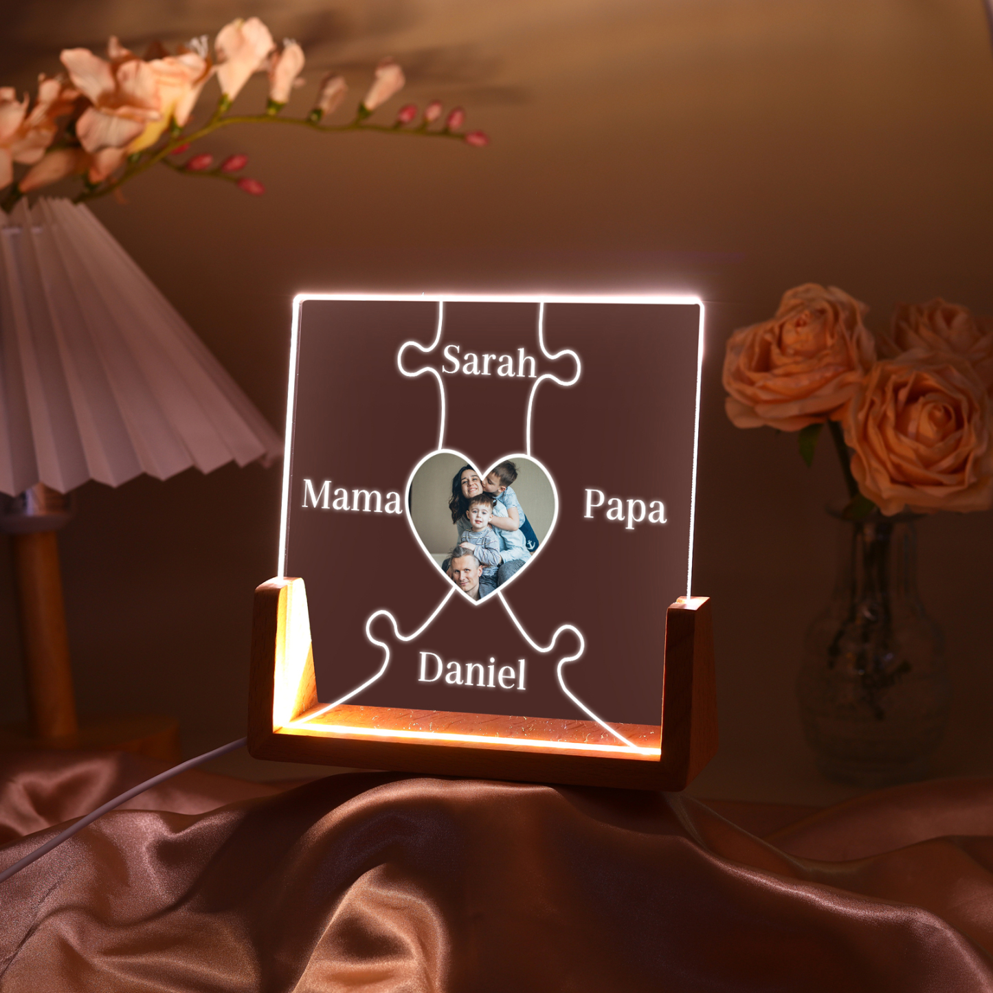 Personalisierte 4 Namen & Foto Herz Nachtlicht Geschenk für Großmutter/Mutter zum Muttertag