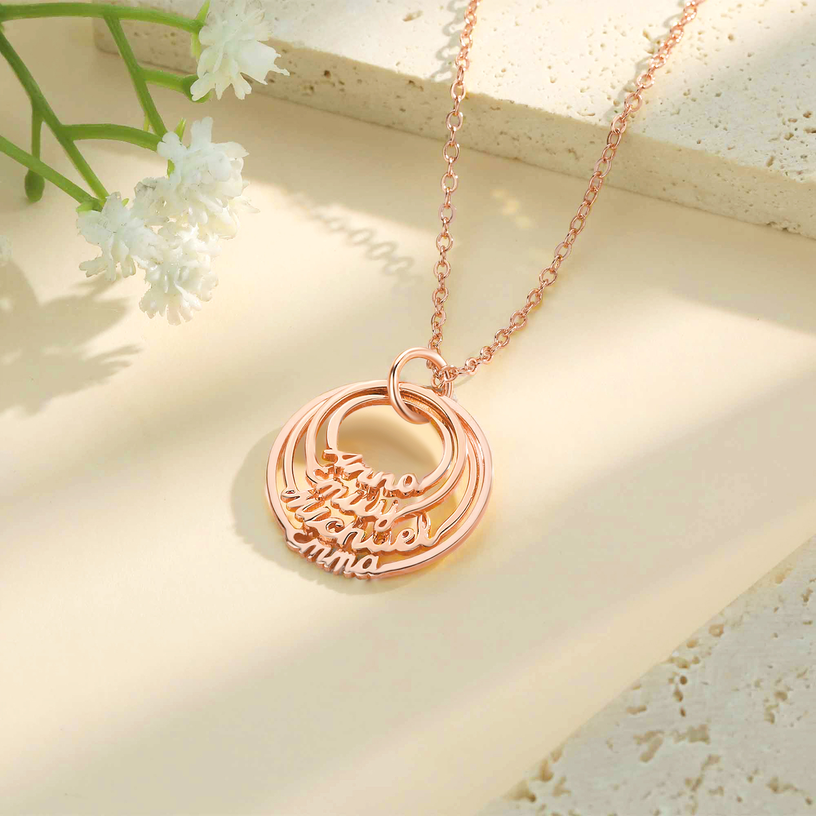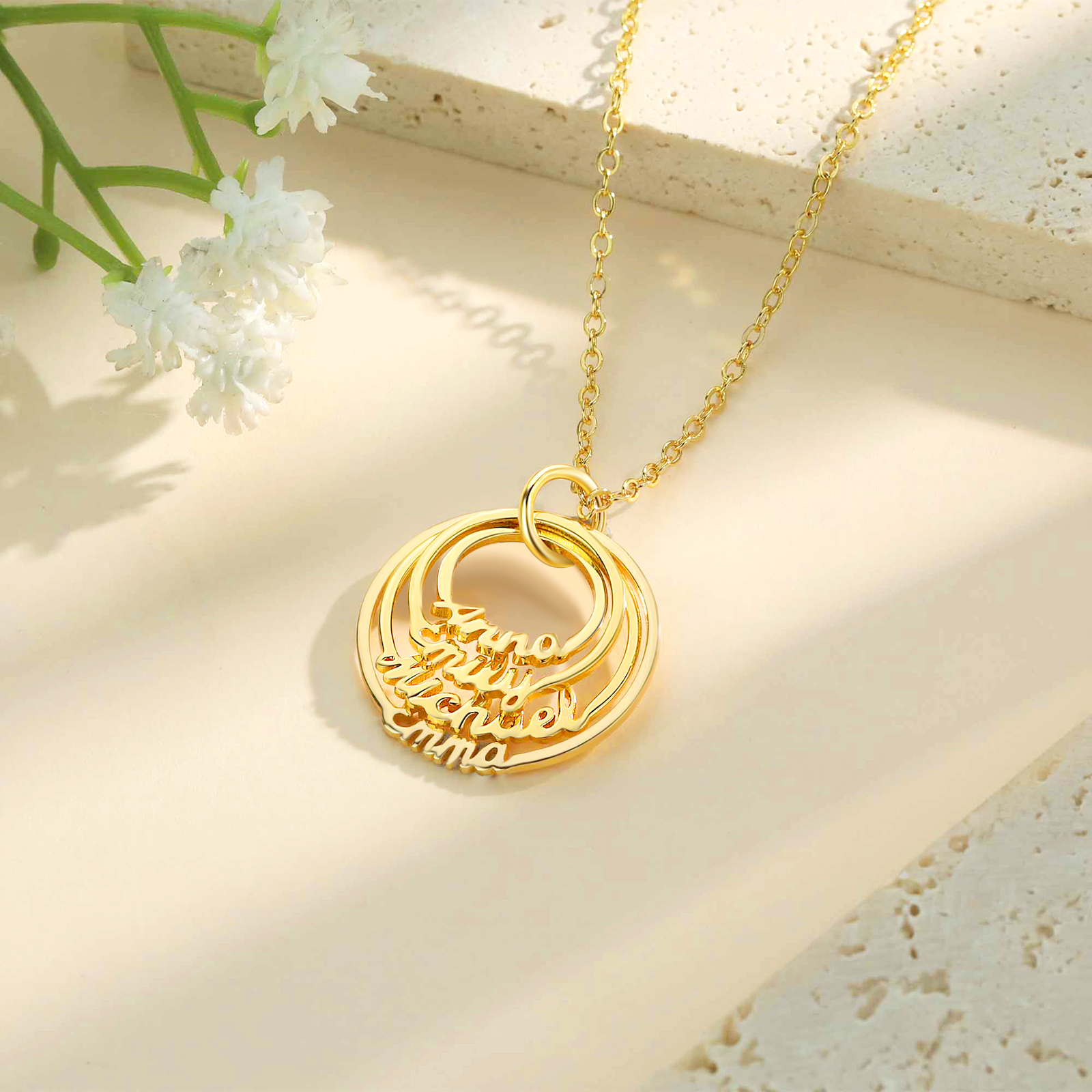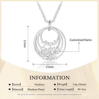 Personalisierte 4 Namen mit Gravuren Rund Halskette