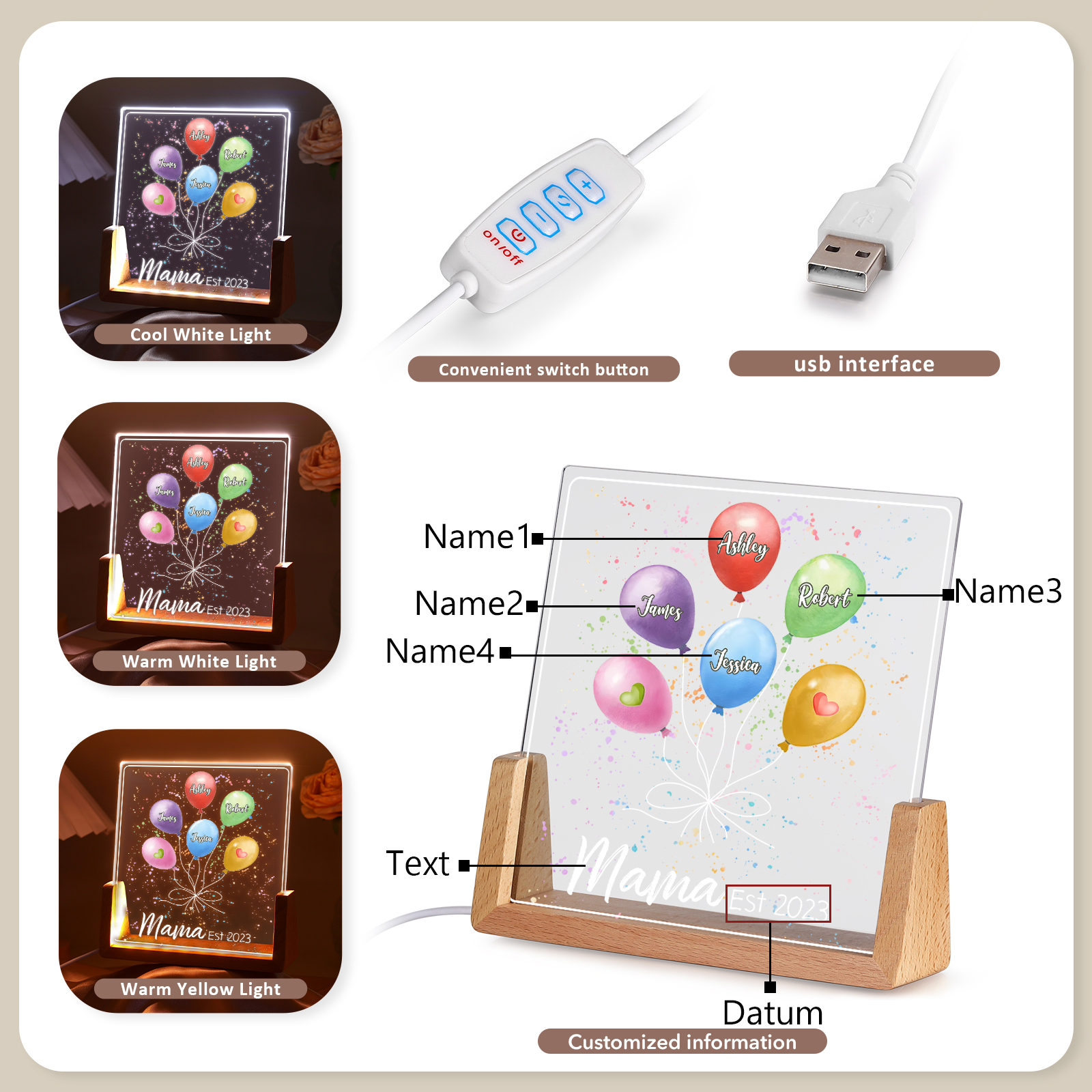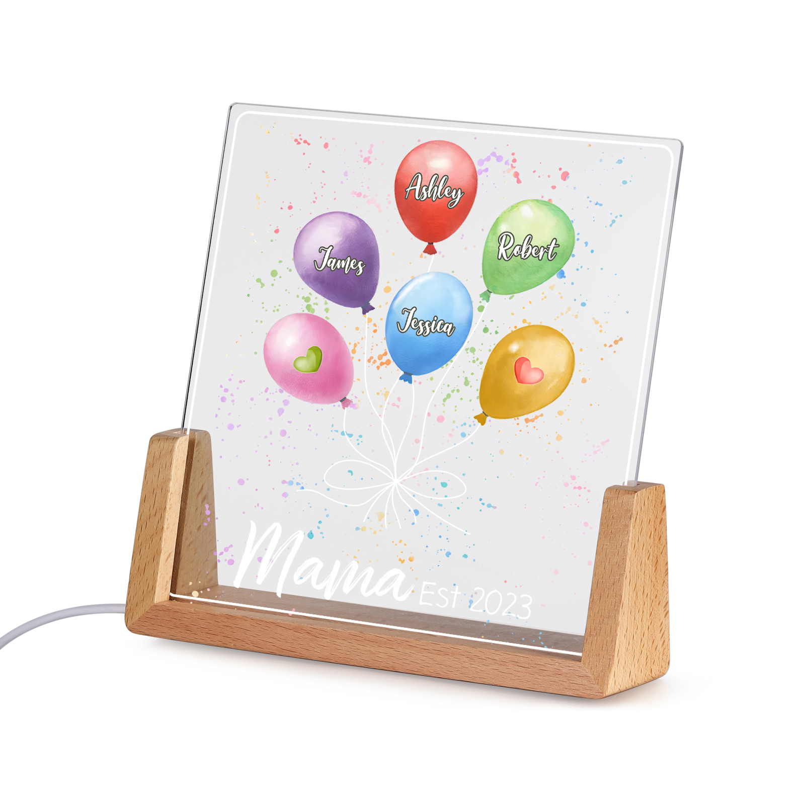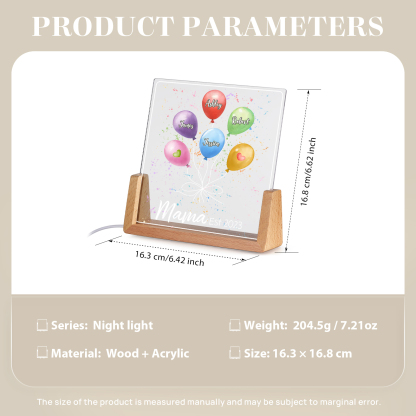Personalisierte 4 Namen & Text & Datum Ballon Nachtlicht Geschenk für Großmutter/Mutter zum Muttertag