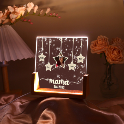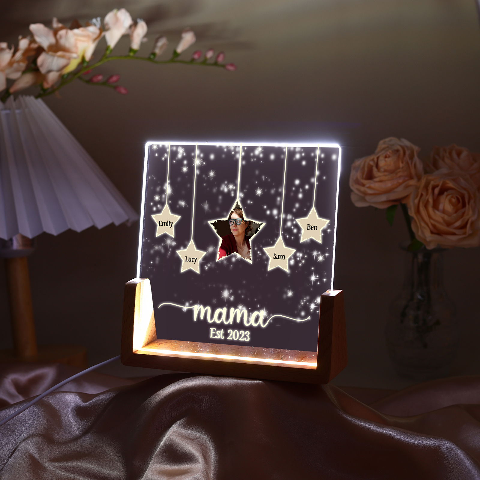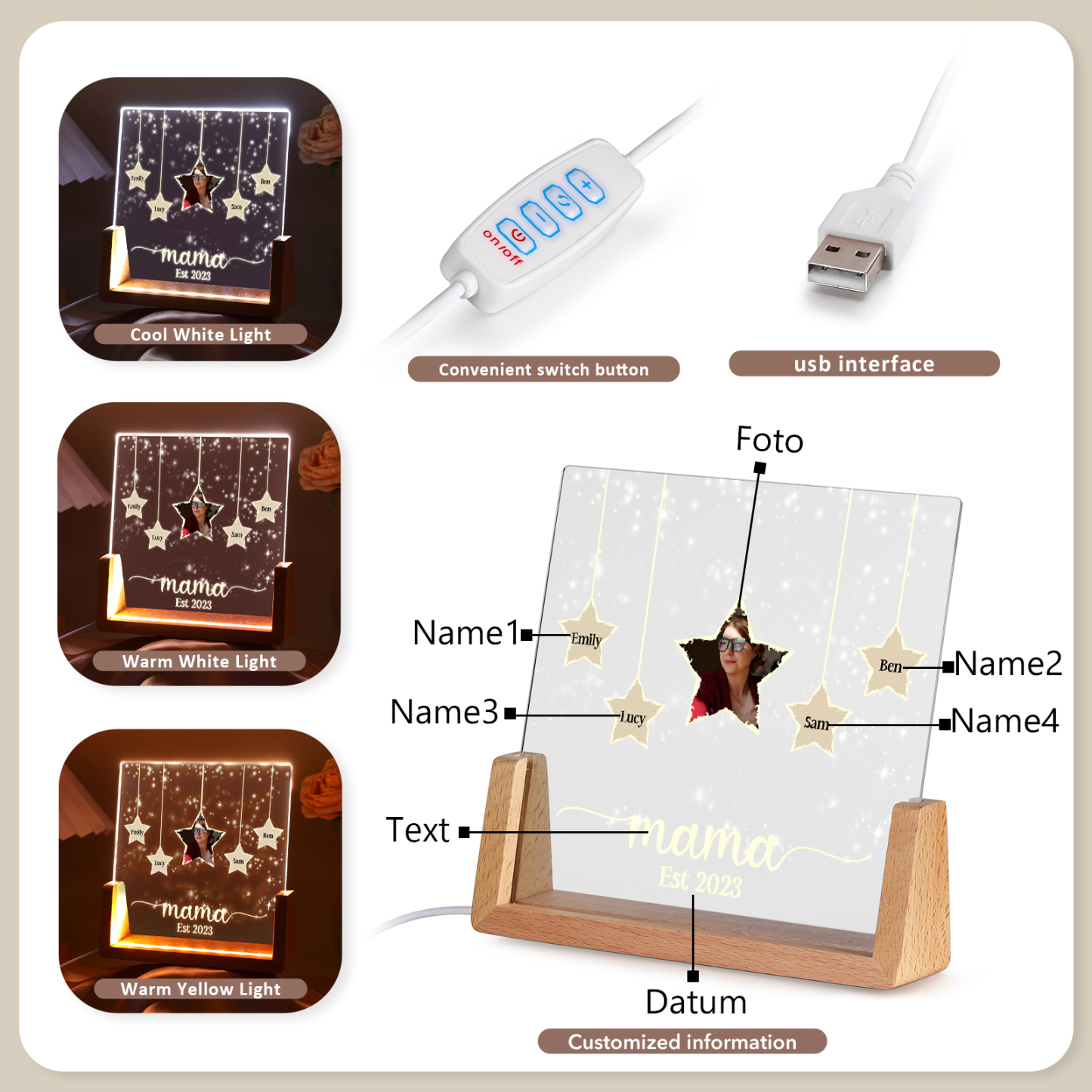 Personalisierte 4 Namen & Text & Datum & Foto Stern Nachtlicht Geschenk für Großmutter/Mutter zum Muttertag