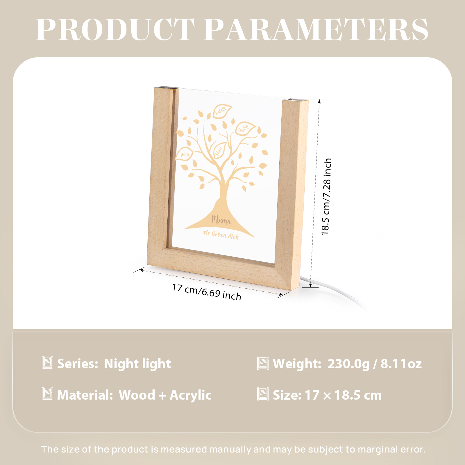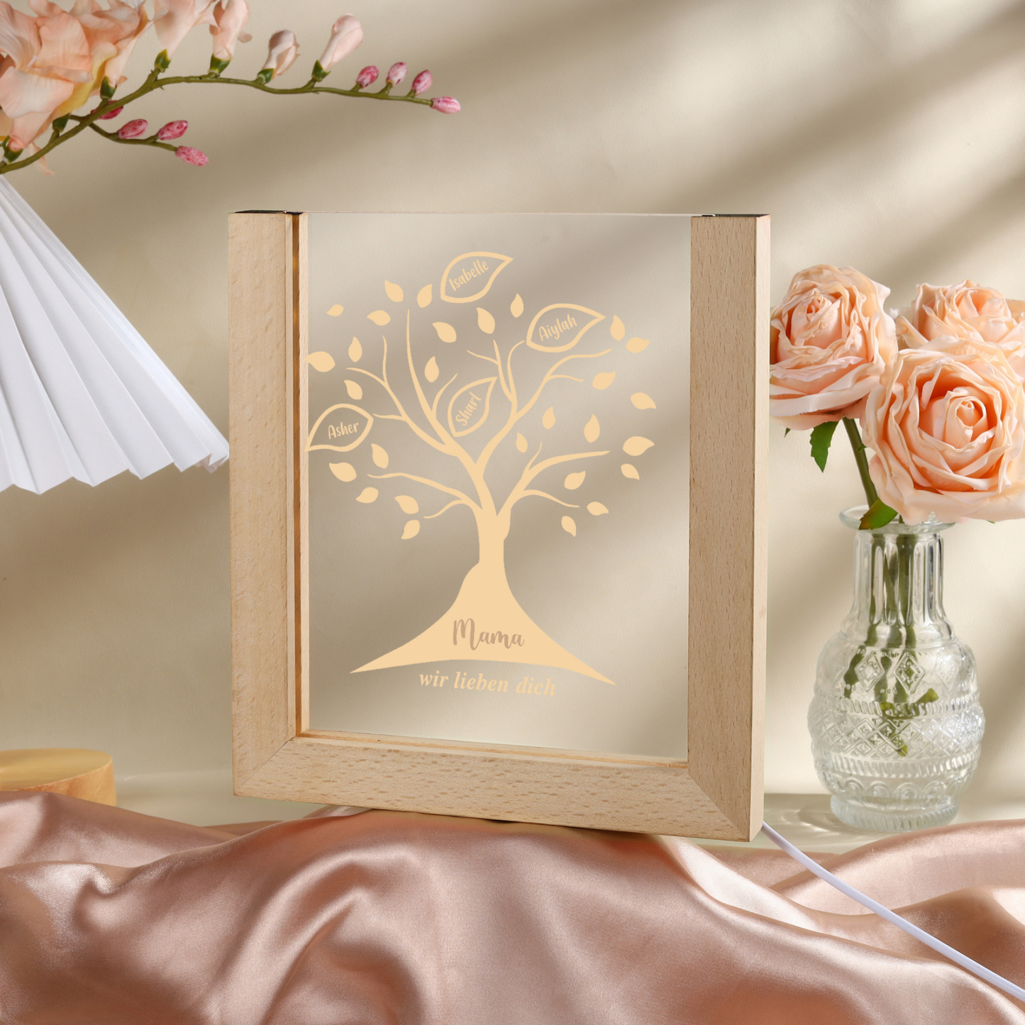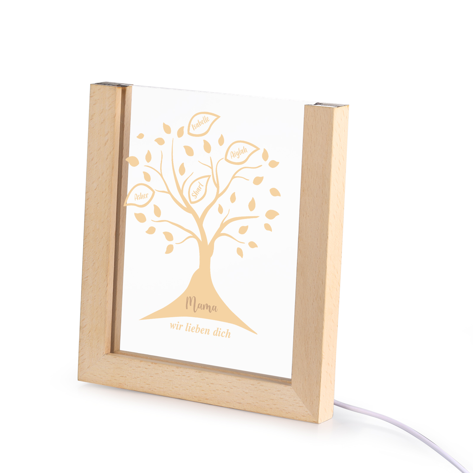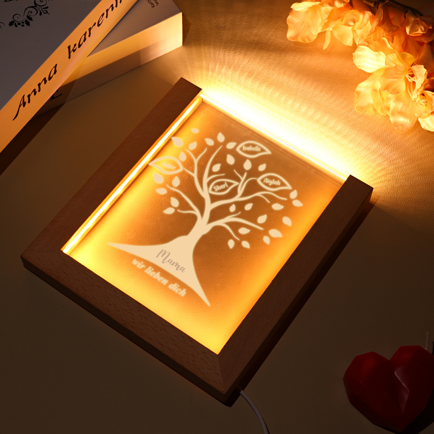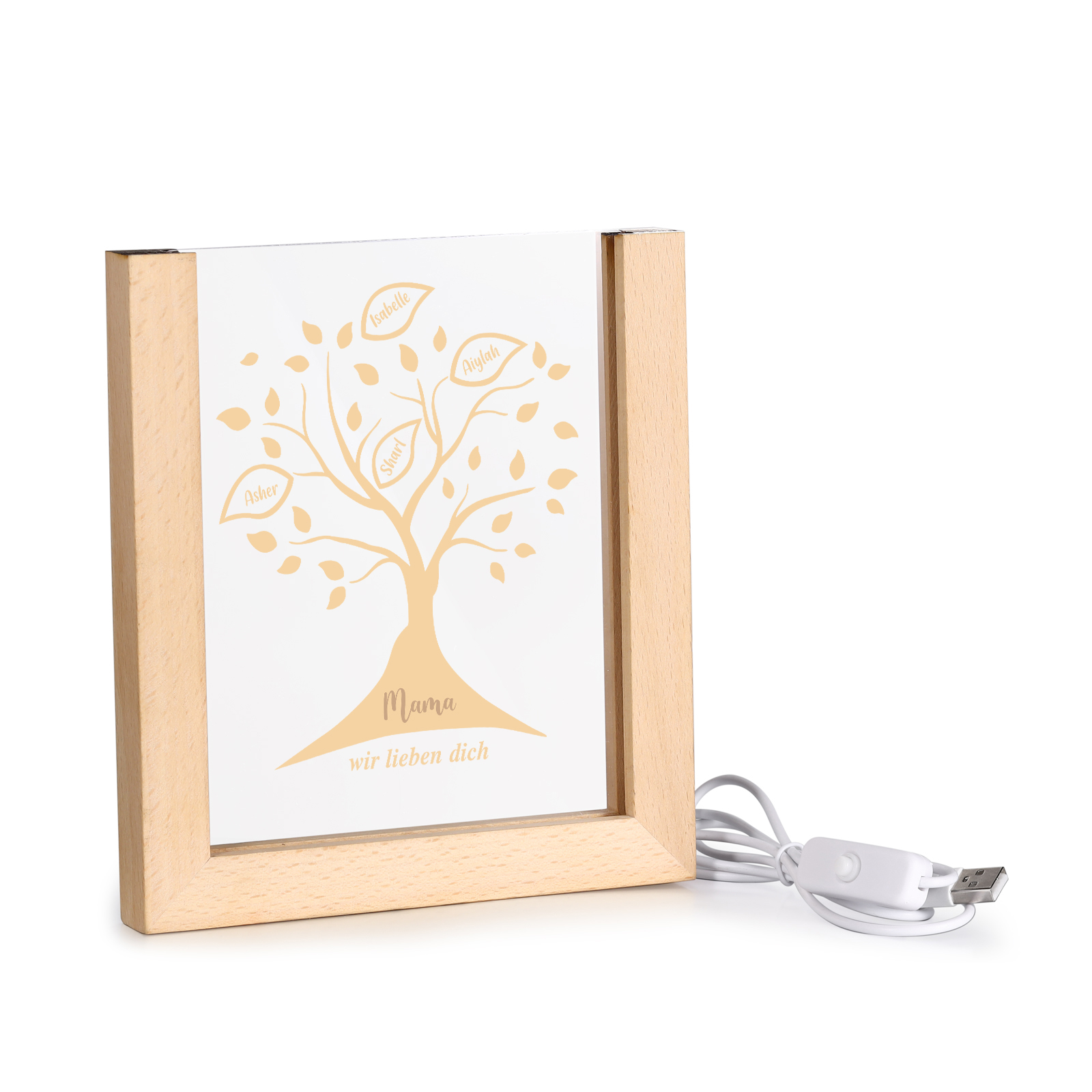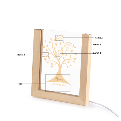 Personalisierte 4 Namen & Text Familienbaum Acryl Rahmen Nachtlicht Geschenk für Großmutter/Mutter zum Muttertag
