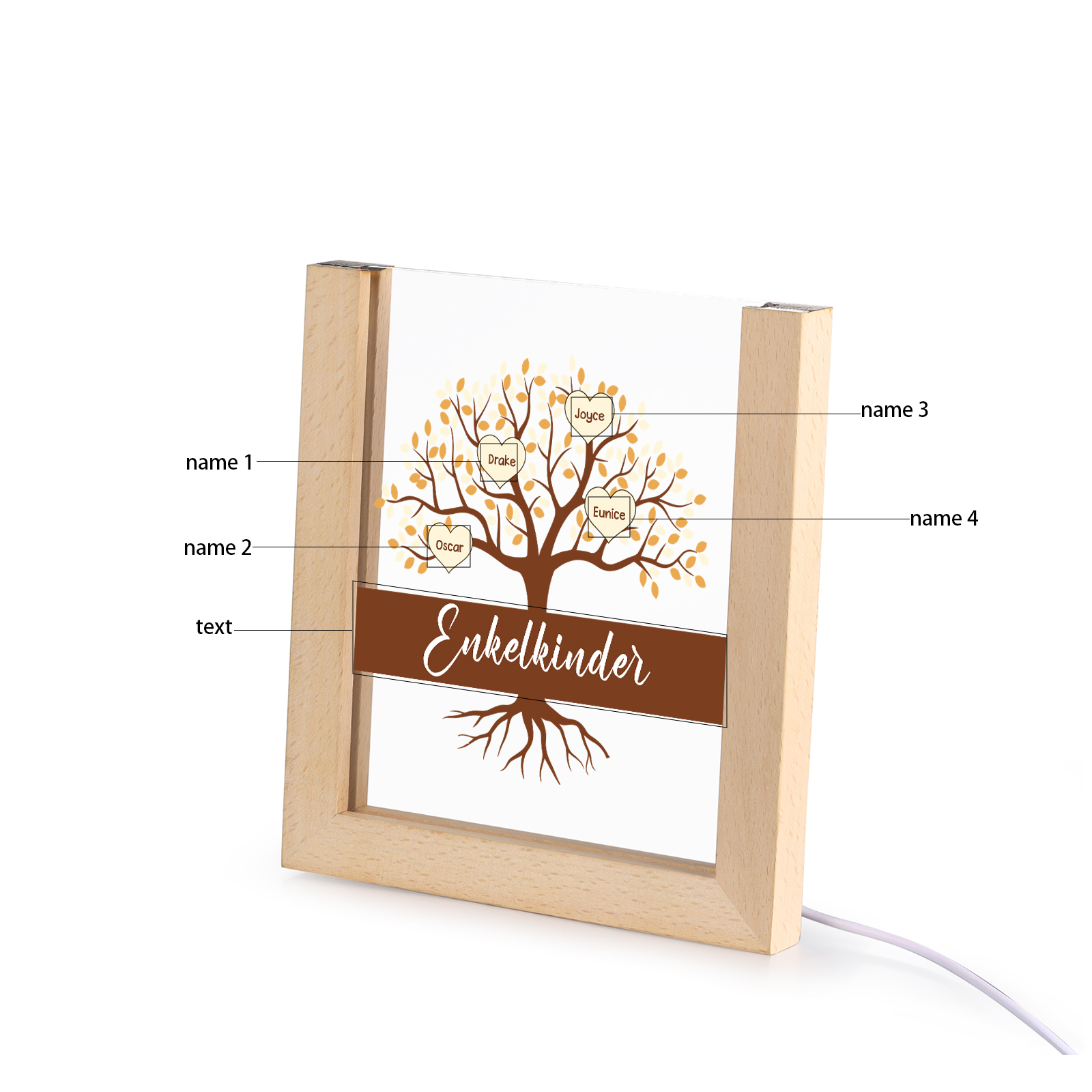 Personalisierte 4 Namen & Text Familienbaum Acryl Rahmen Nachtlicht Geschenk für Großmutter/Mutter zum Muttertag