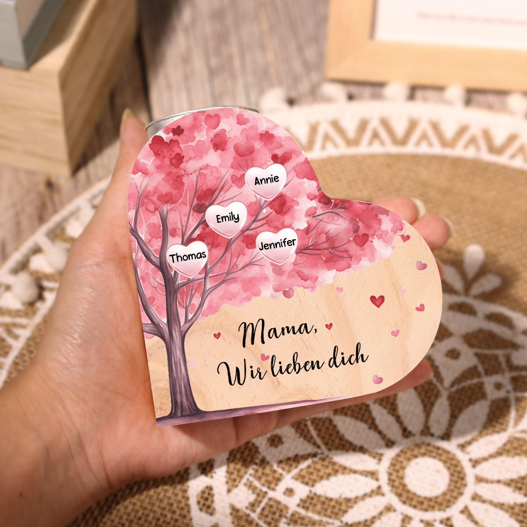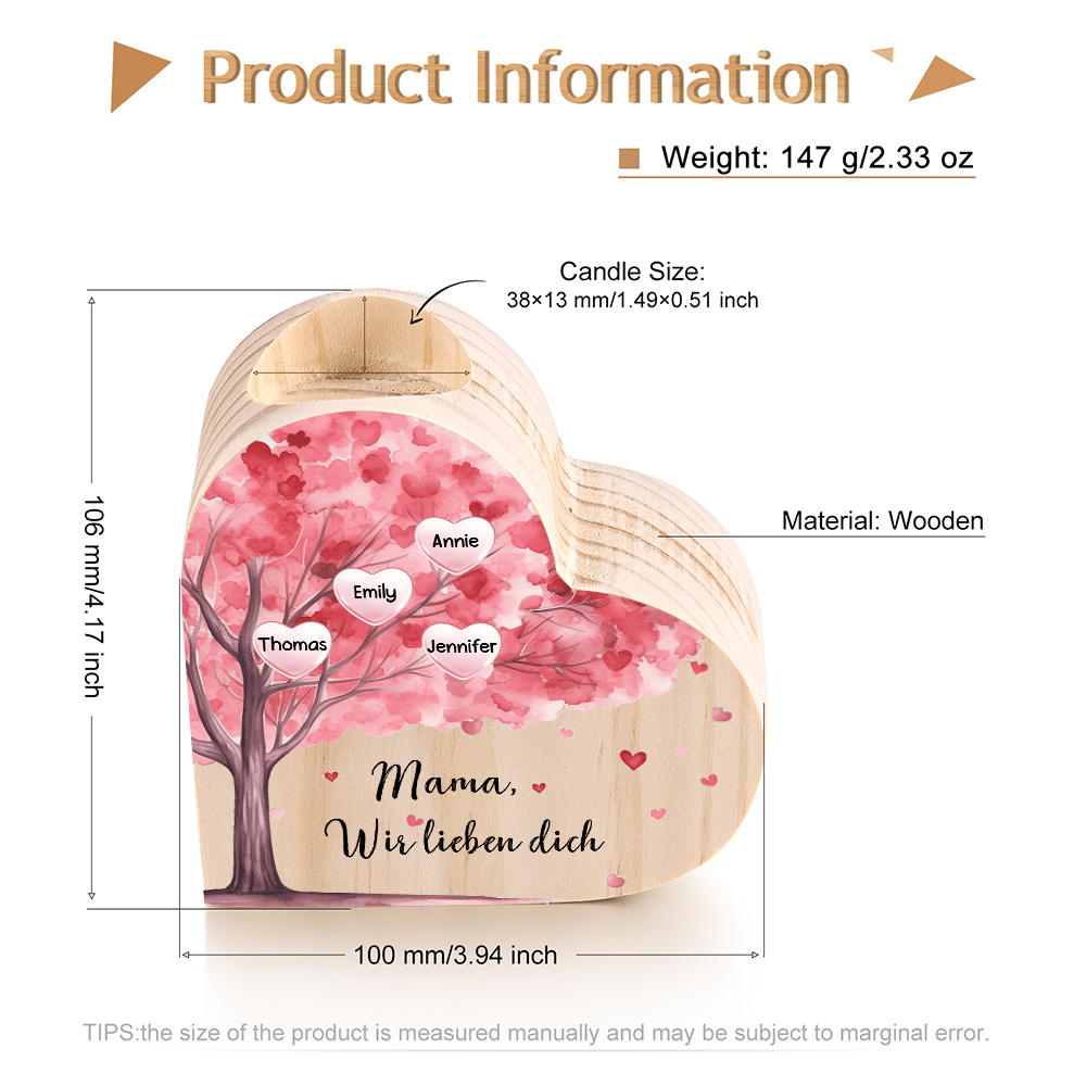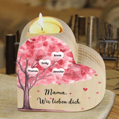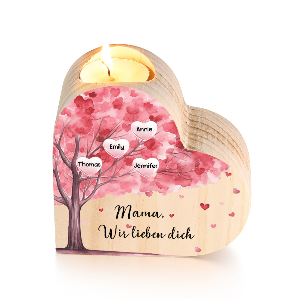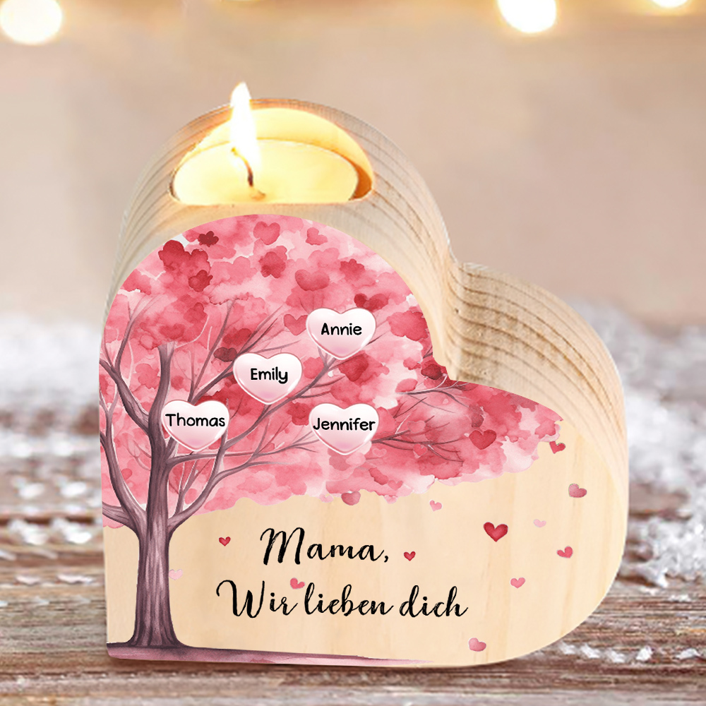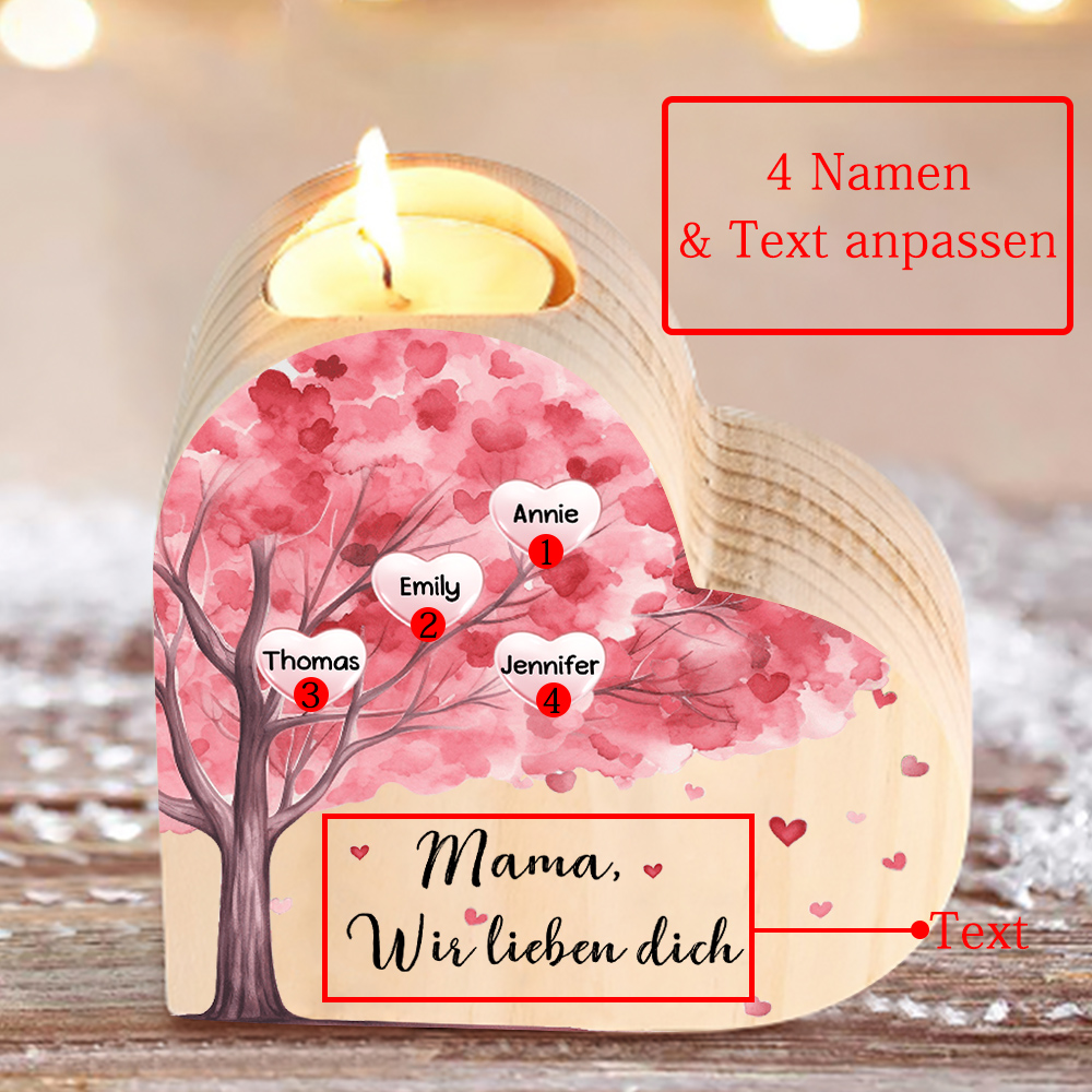 Personalisierte 4 Namen & Text Rosa Baum Herzform Kerzenhalter-Geschenk für Familie