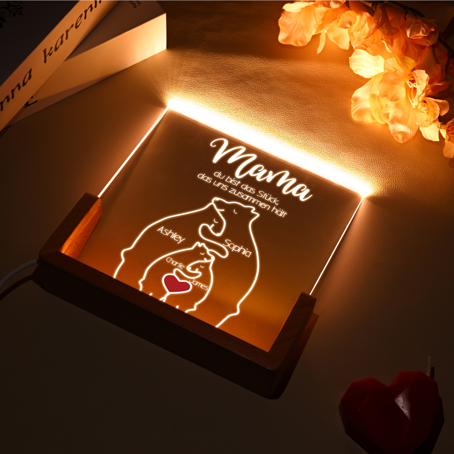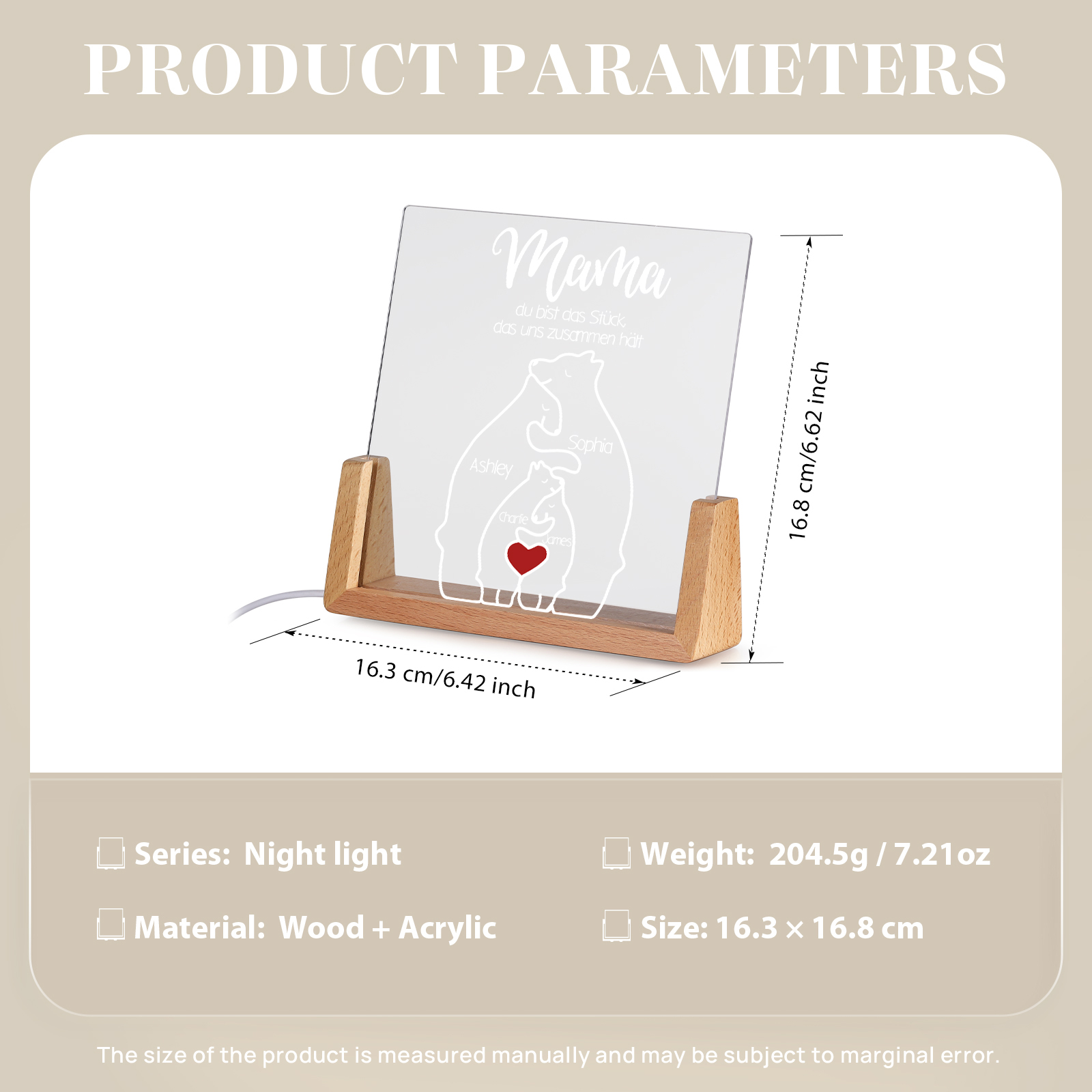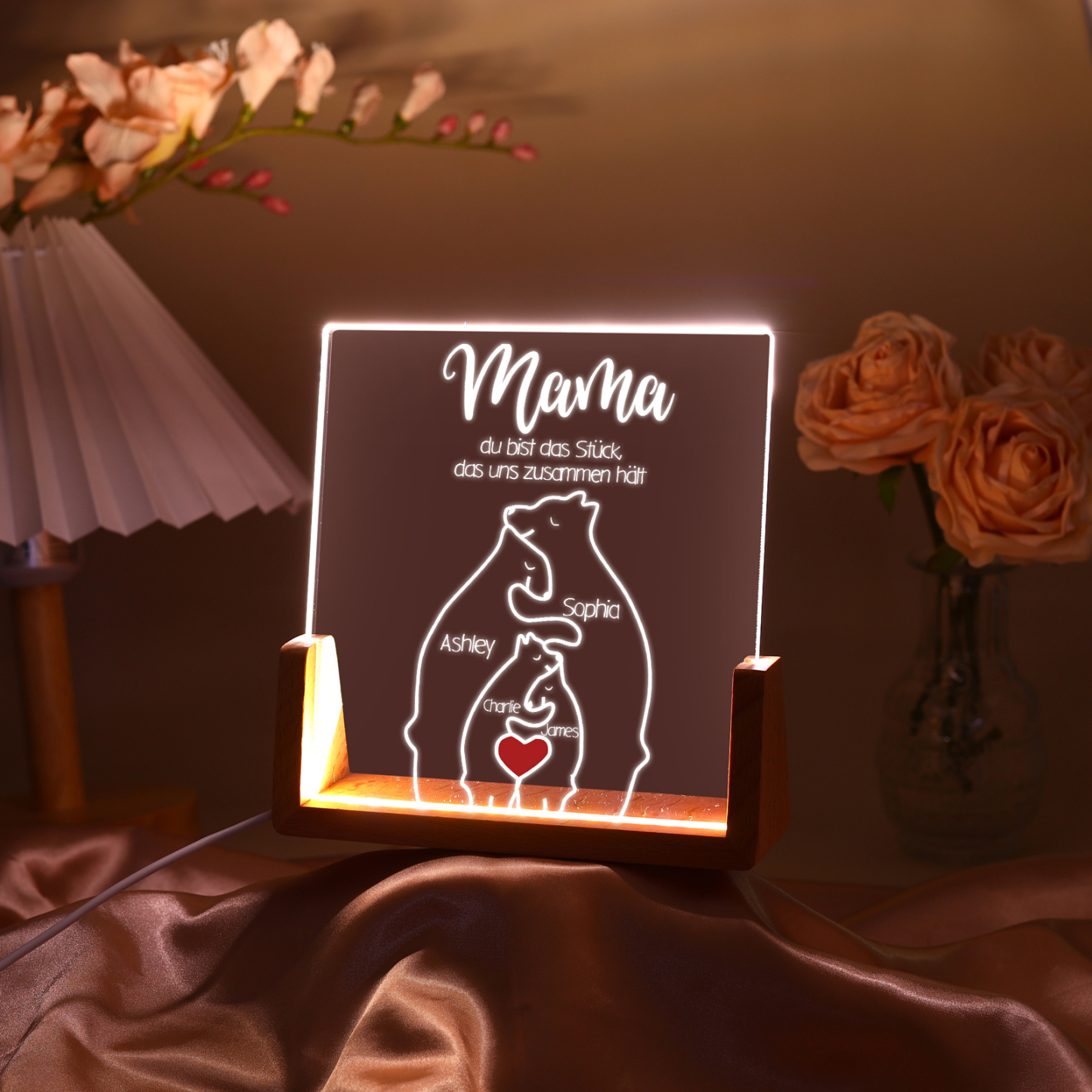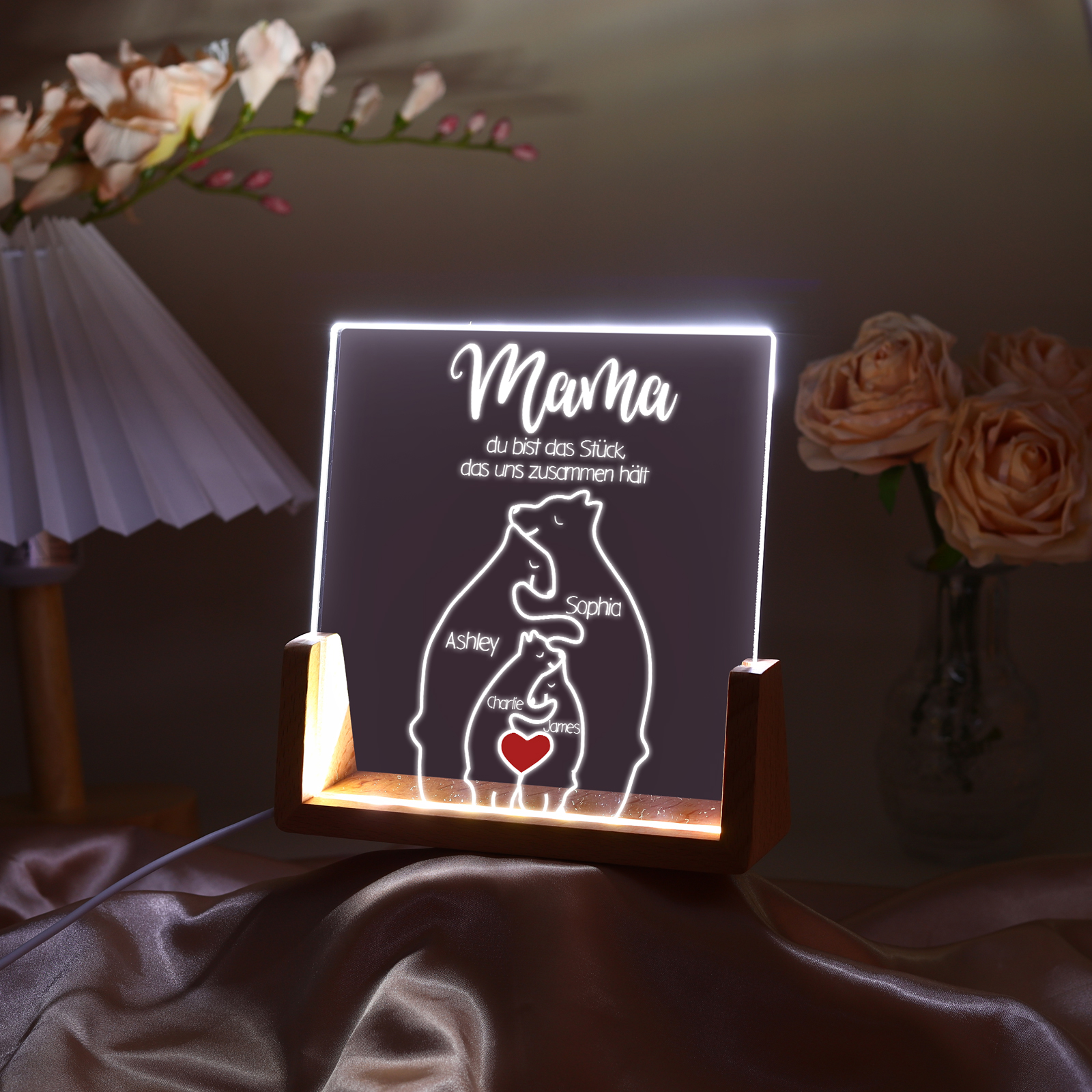 Personalisierte 4 Namen & Texte Bär Familie Nachtlicht Geschenk für Großmutter/Mutter zum Muttertag