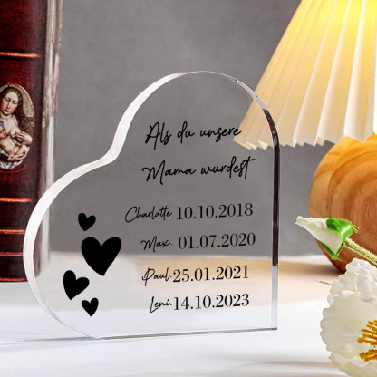 Personalisierte 4 Texte -Als du unsere Mama wurdest- Acryl-Deko Schreibtischdekoration für Mutter